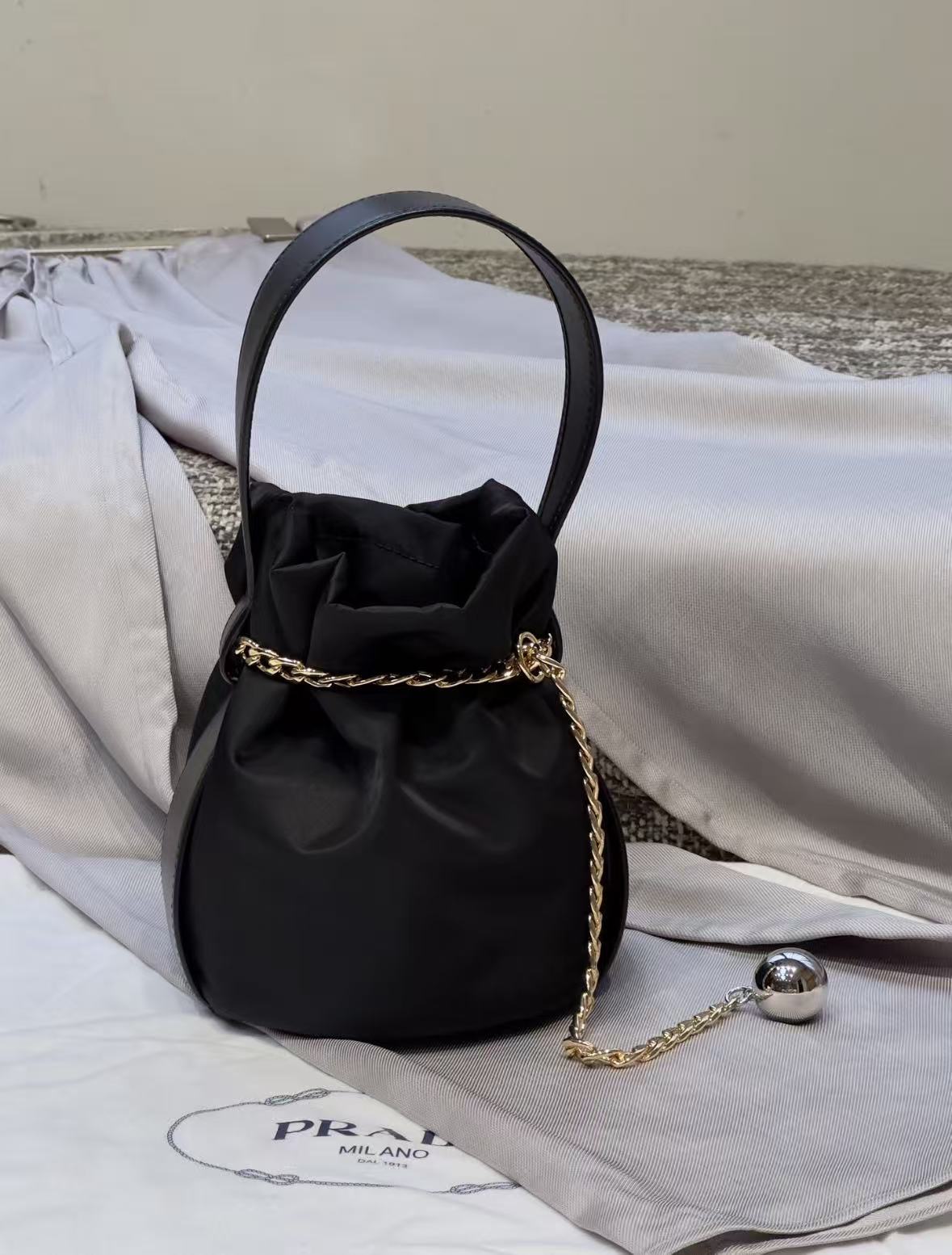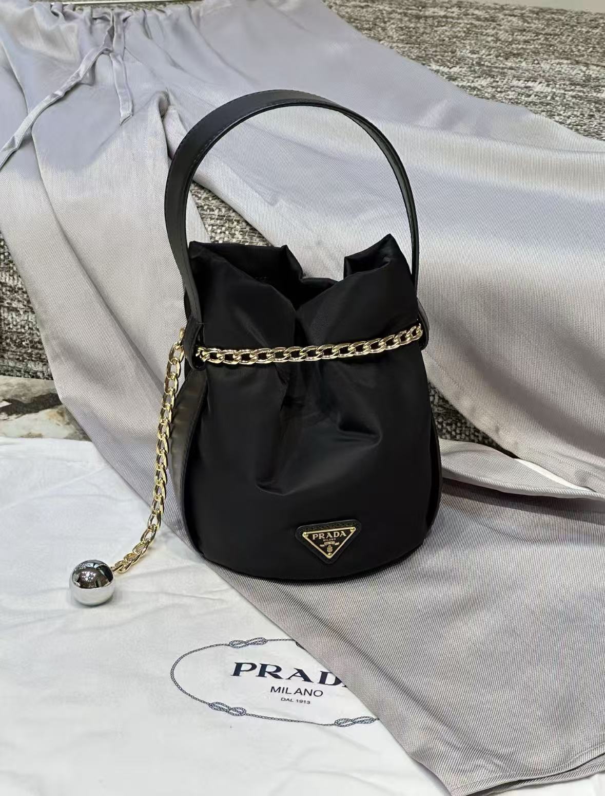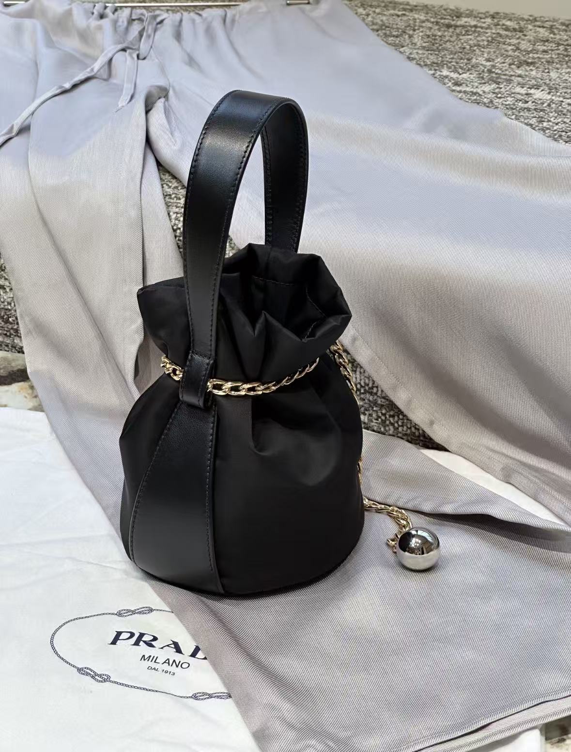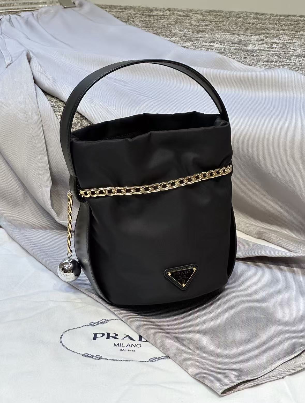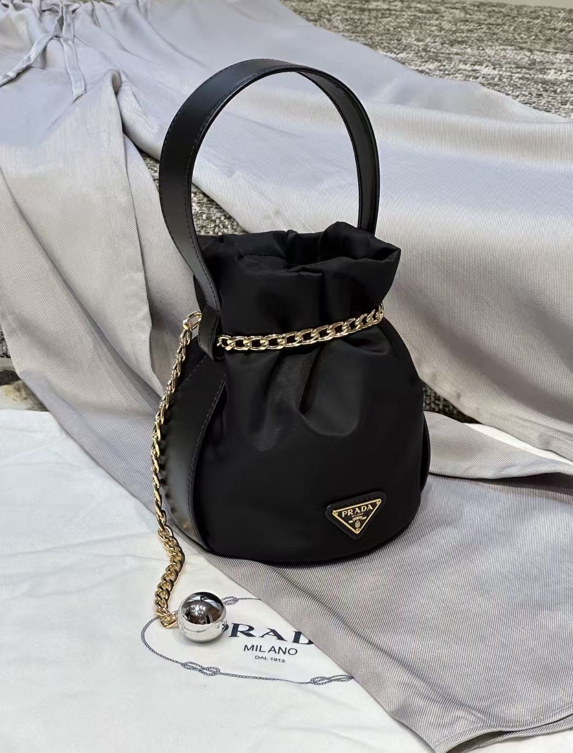 PRADA Re-Nylon triangular metal logo handbag, small size for women, black