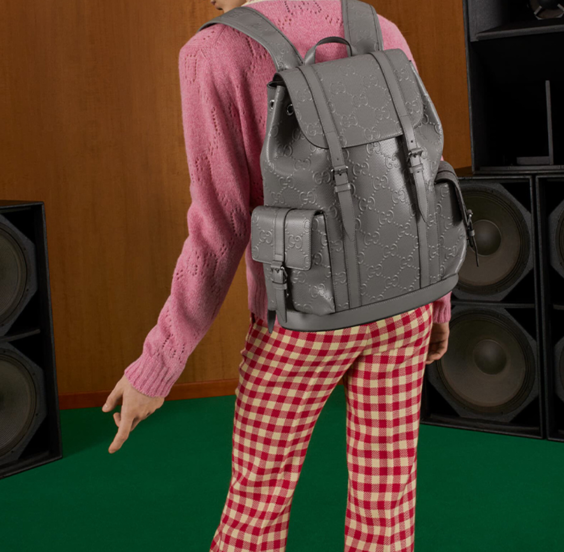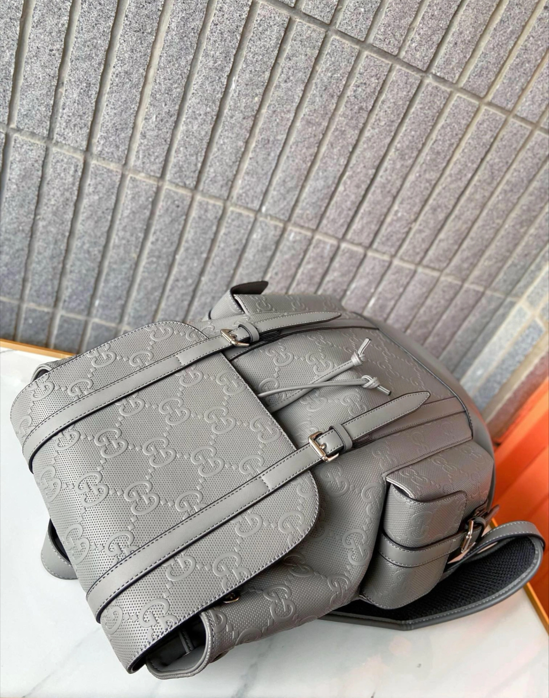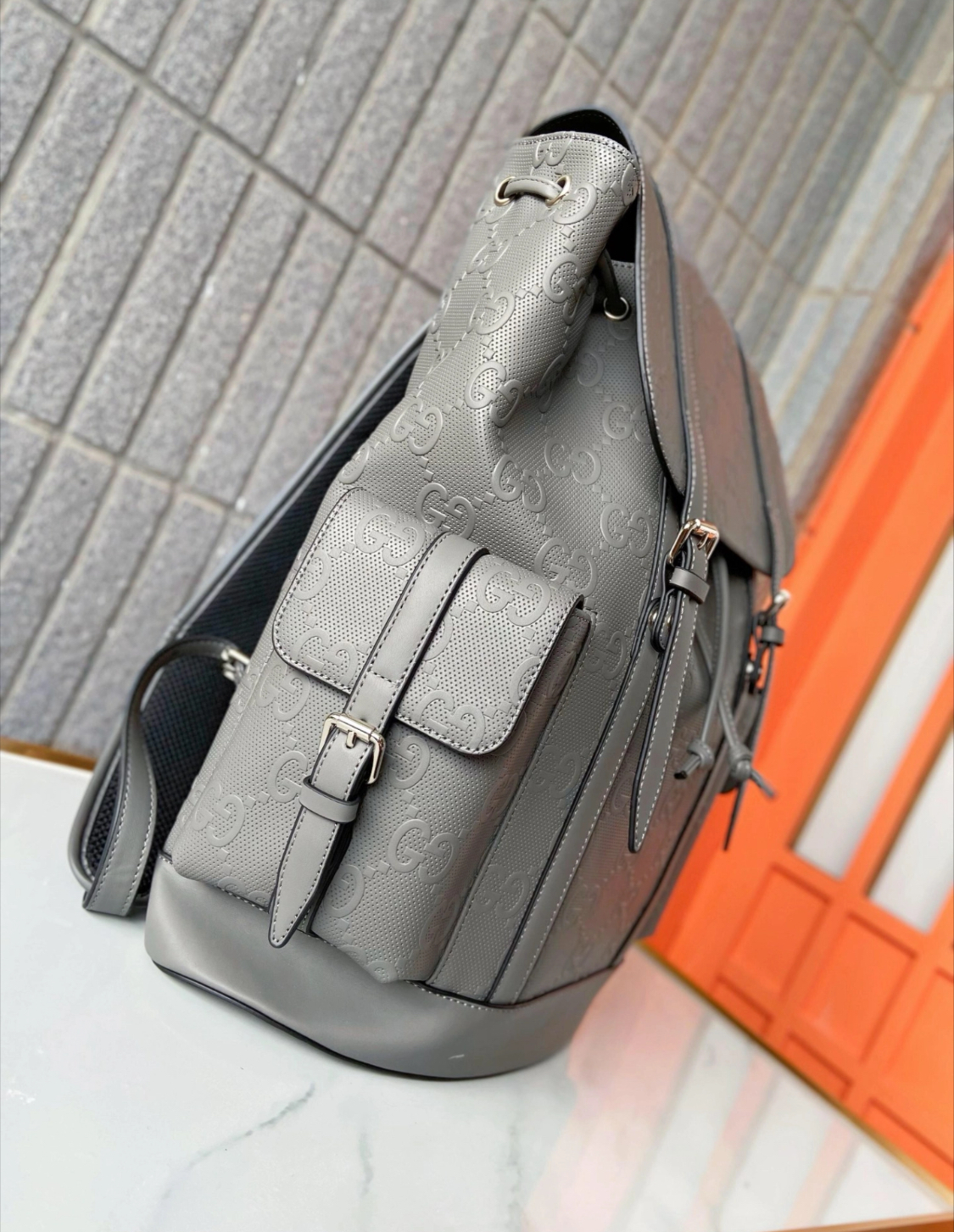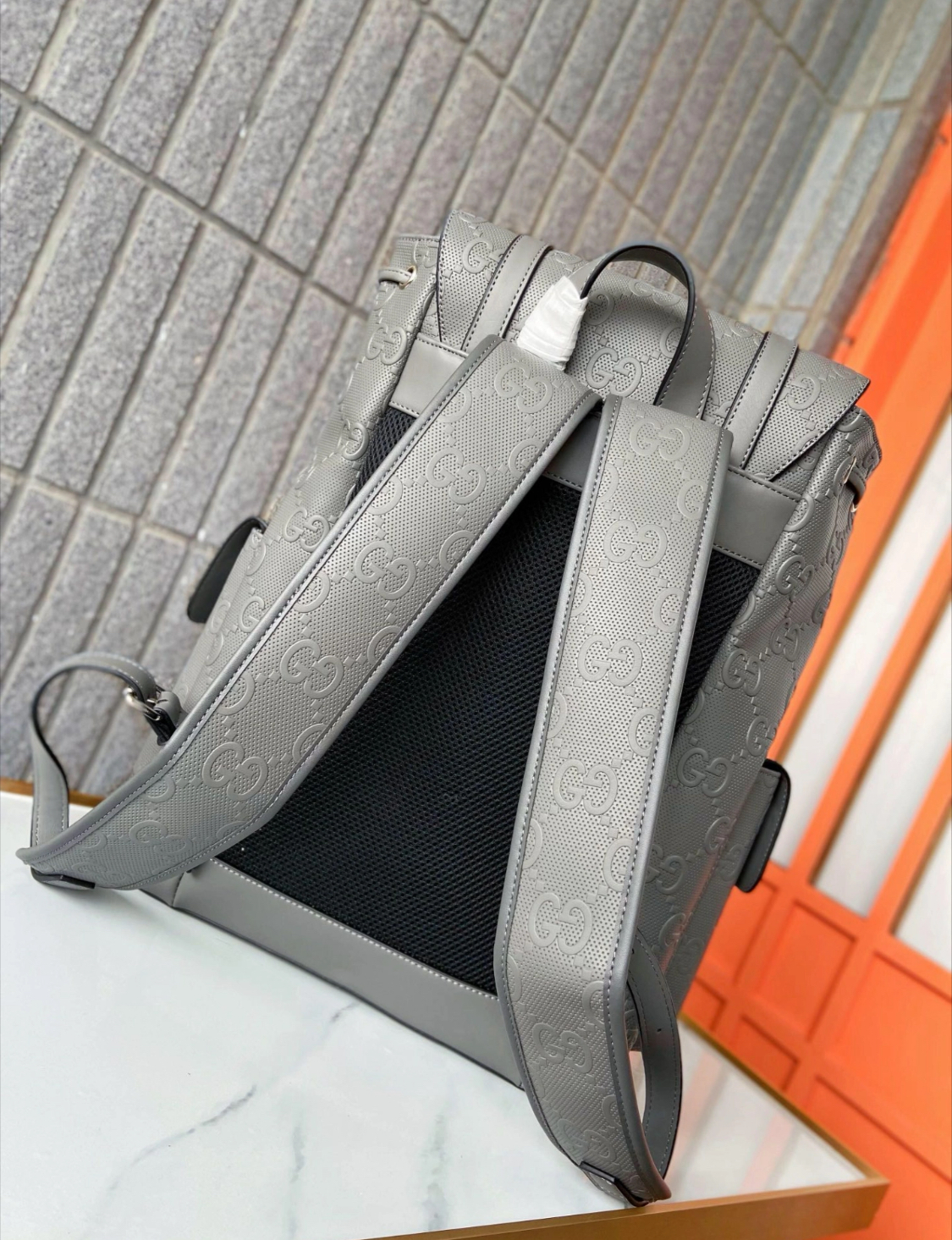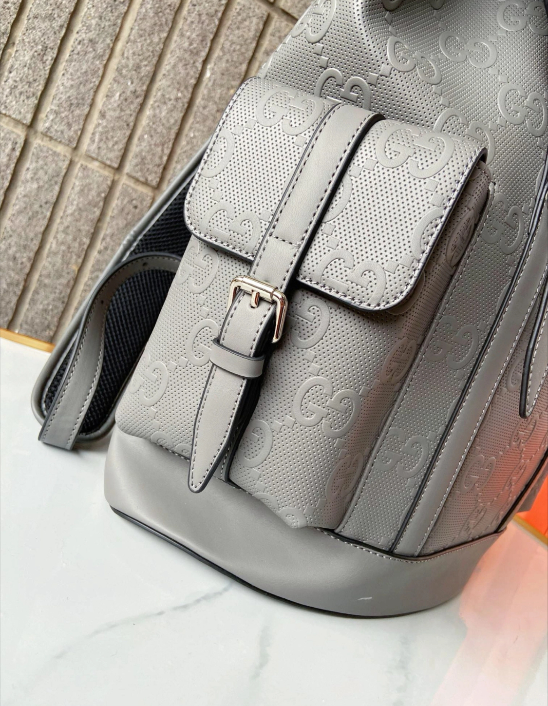 GUCCI vintage Logo embossed large-capacity schoolbag, backpack, backpack, regular men\'s style, gray
