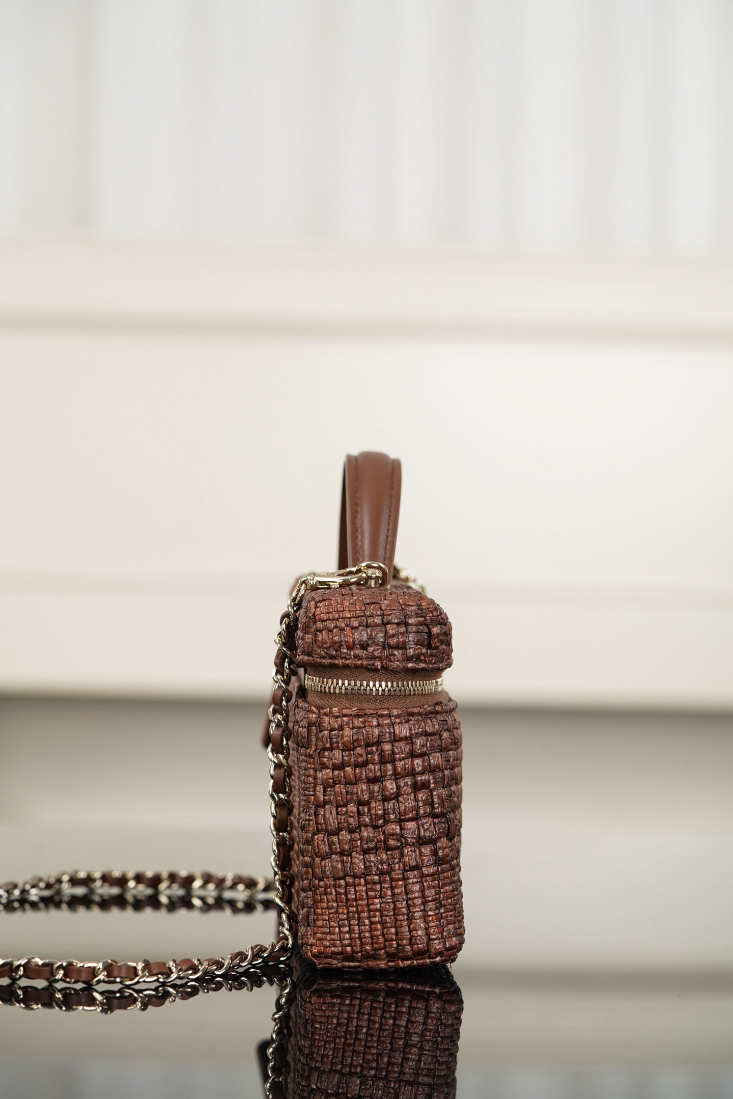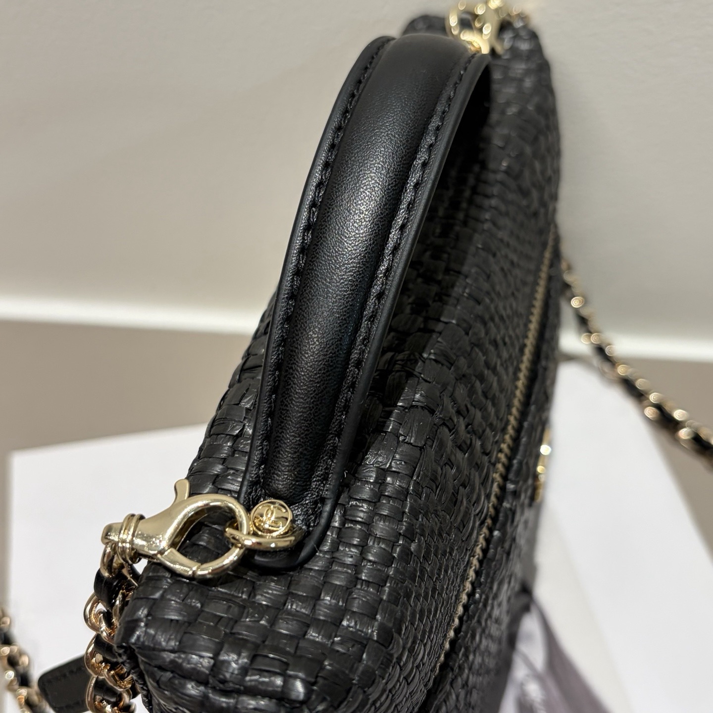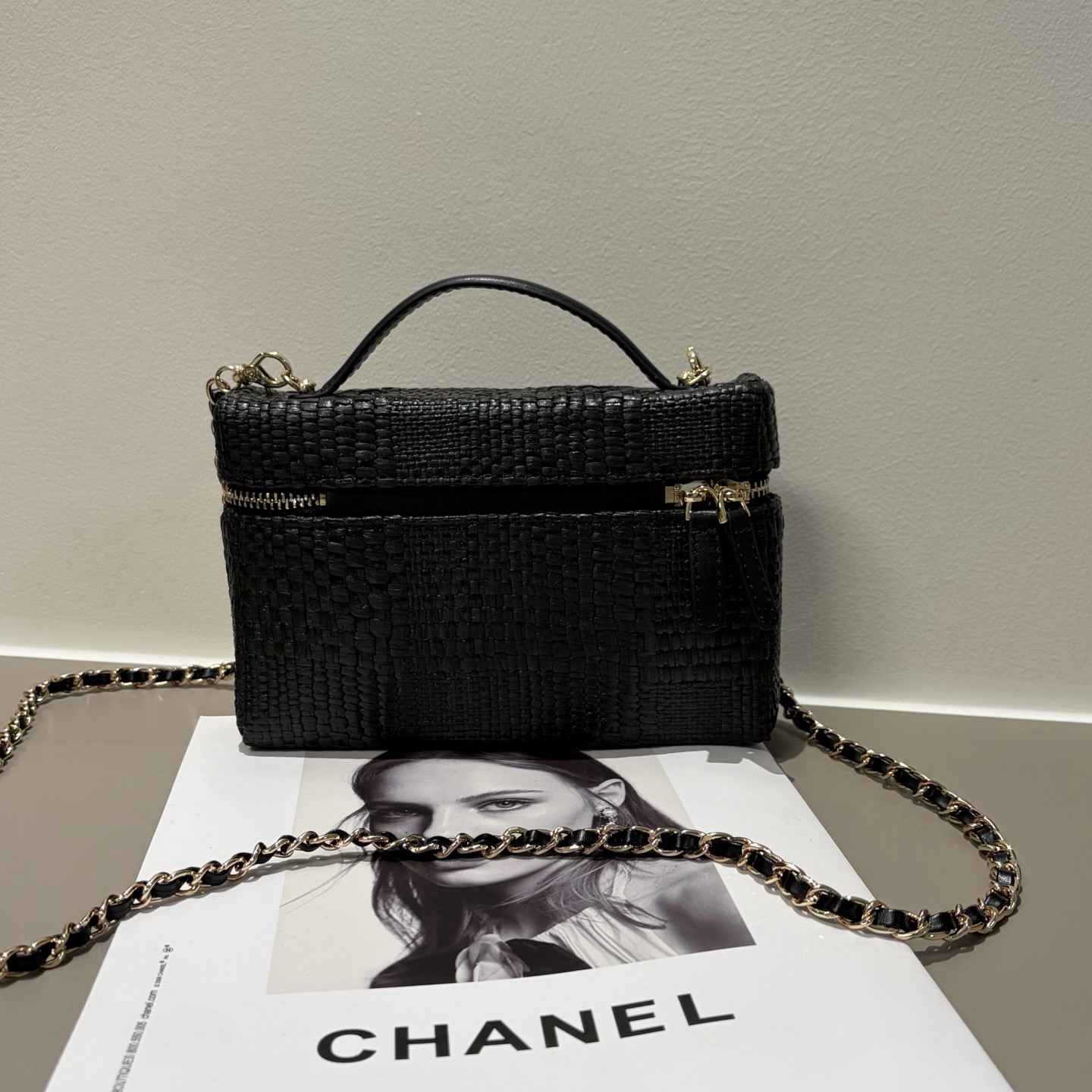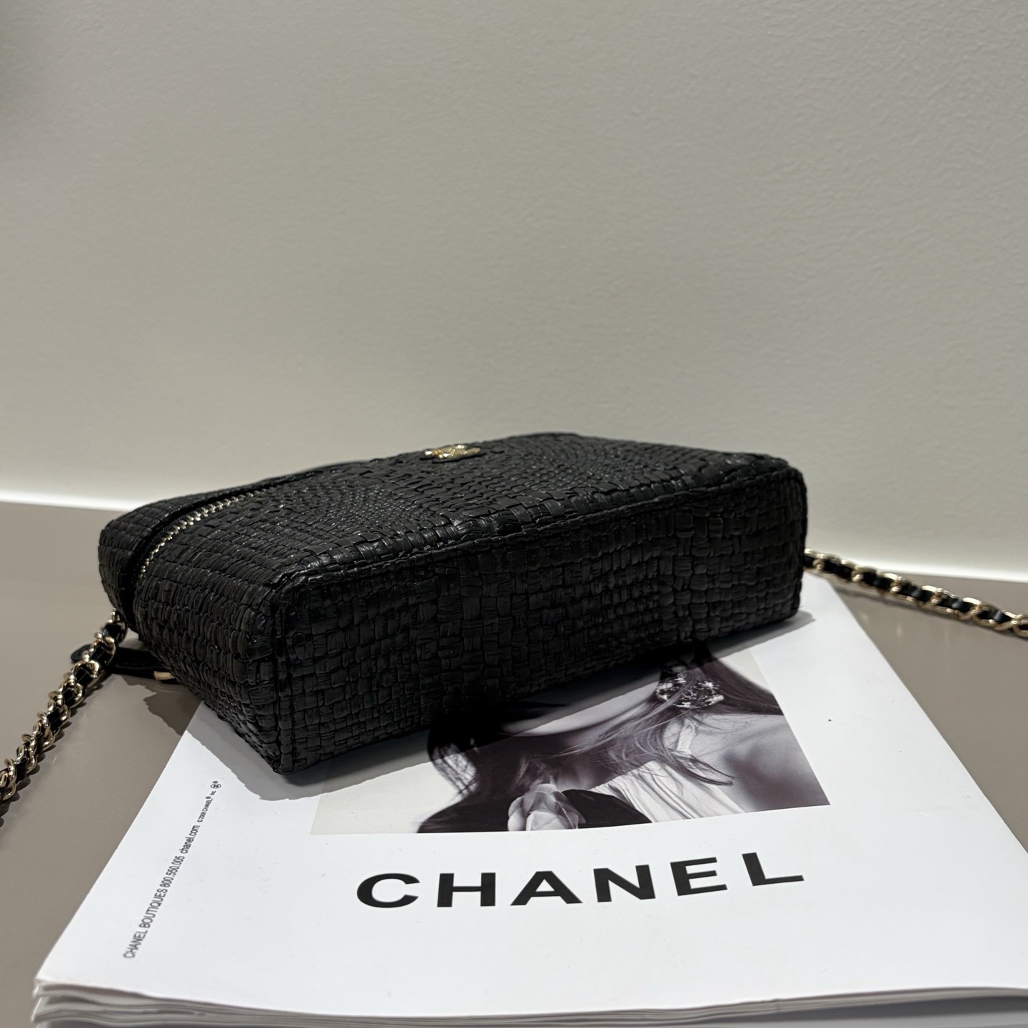 CHANEL 26P classic chain gold label Double C Logo leather chain woven, coconut fiber with gold metal cosmetic bag, single-shoulder handbag for women
