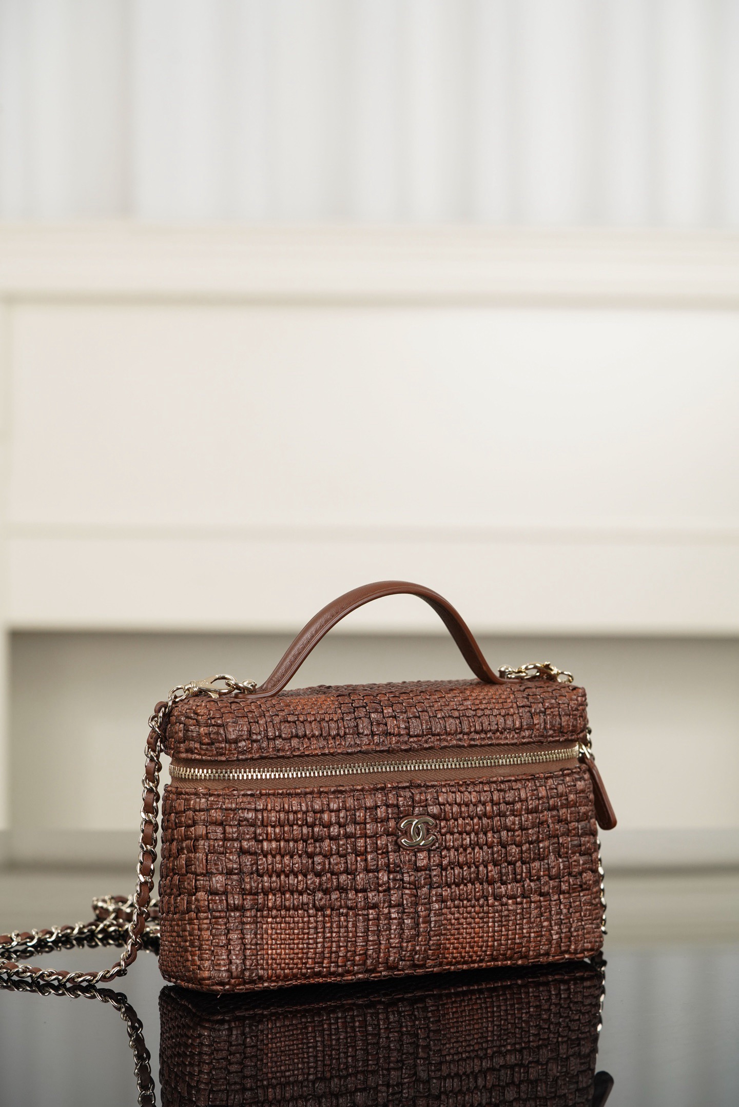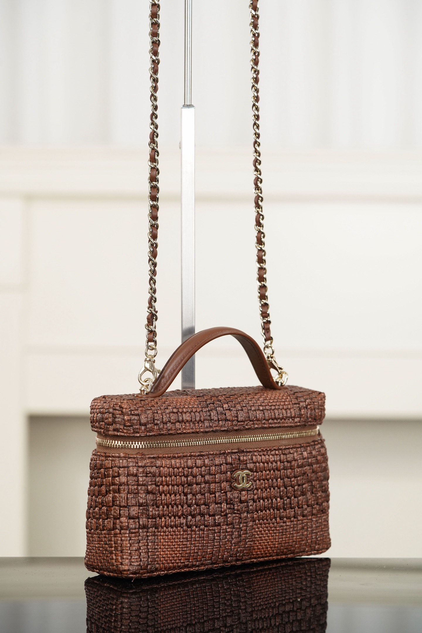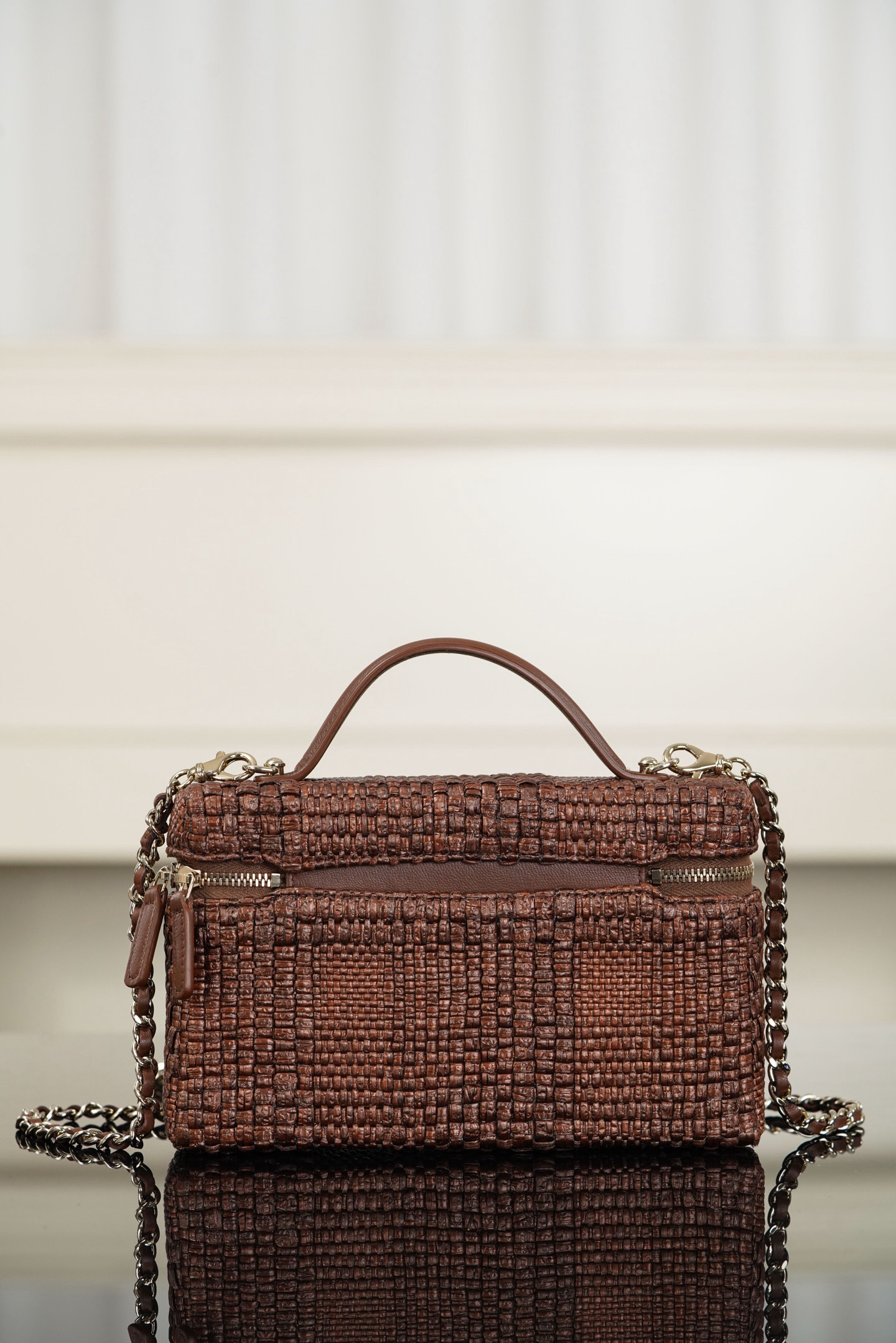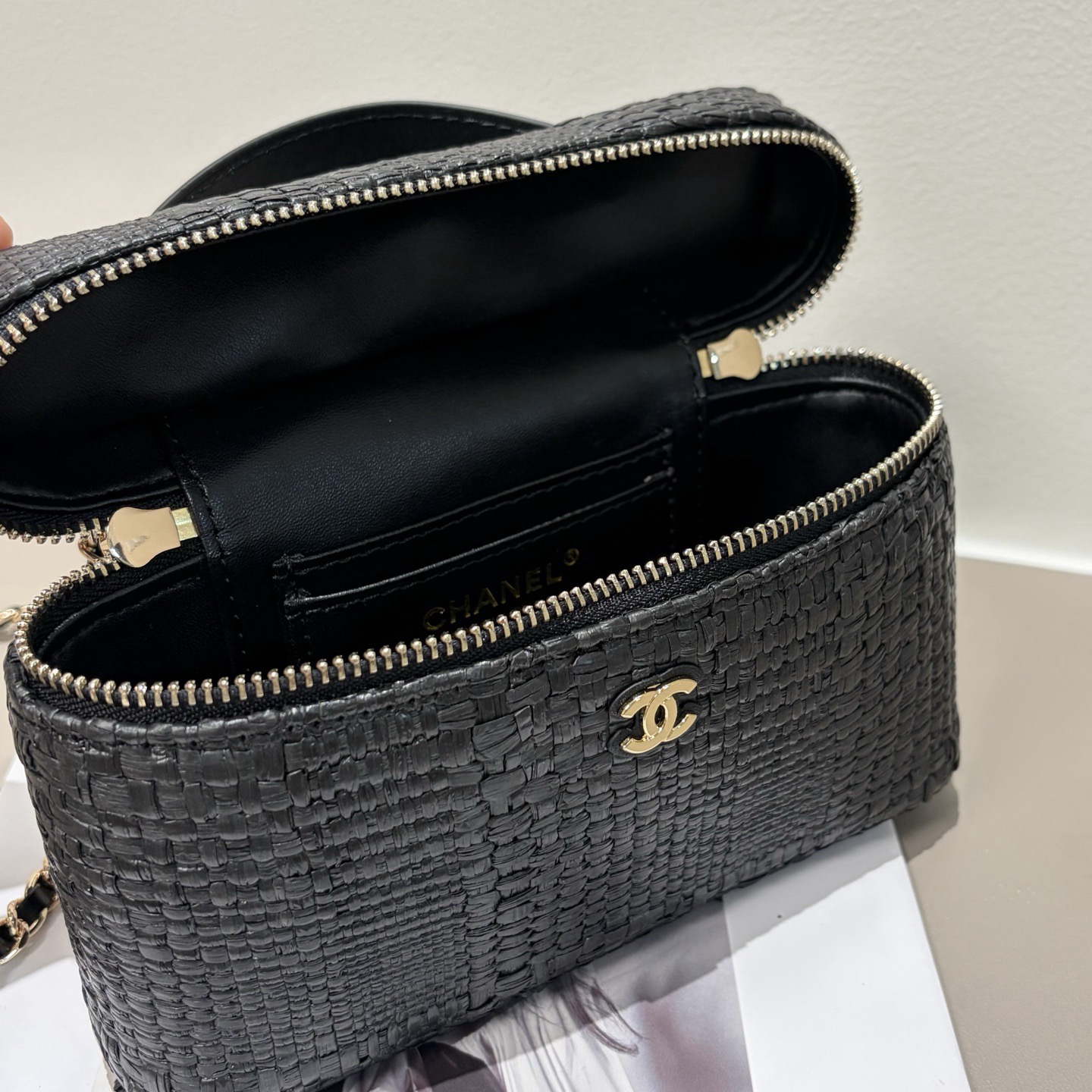 CHANEL 26P classic chain gold label Double C Logo leather chain woven, coconut fiber with gold metal cosmetic bag, single-shoulder handbag for women