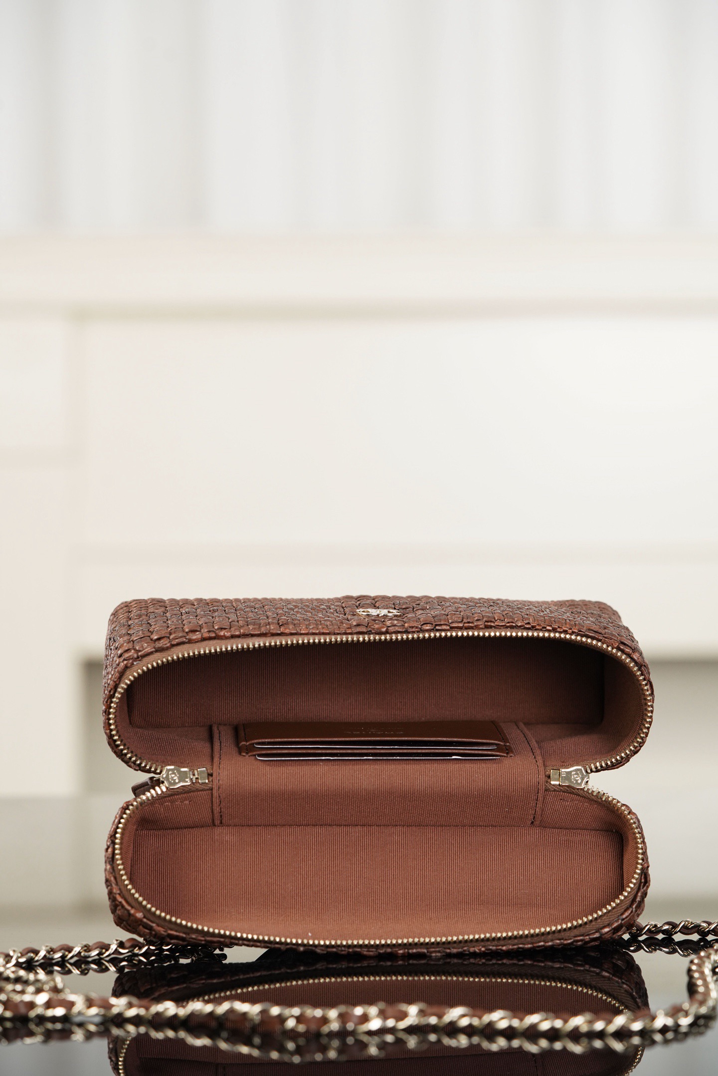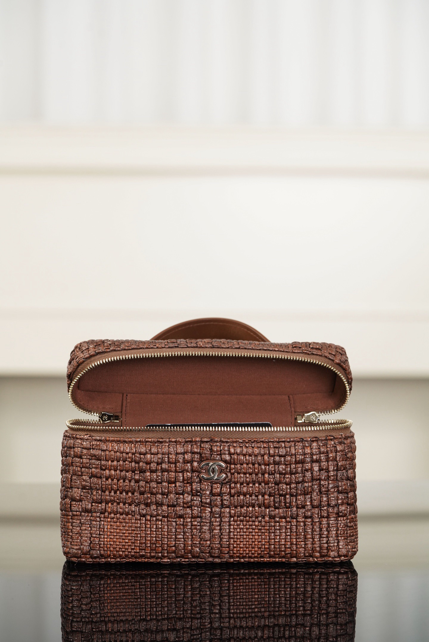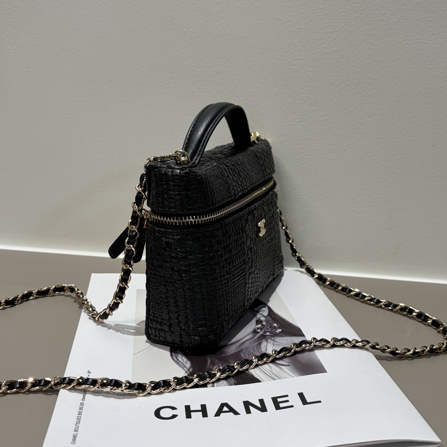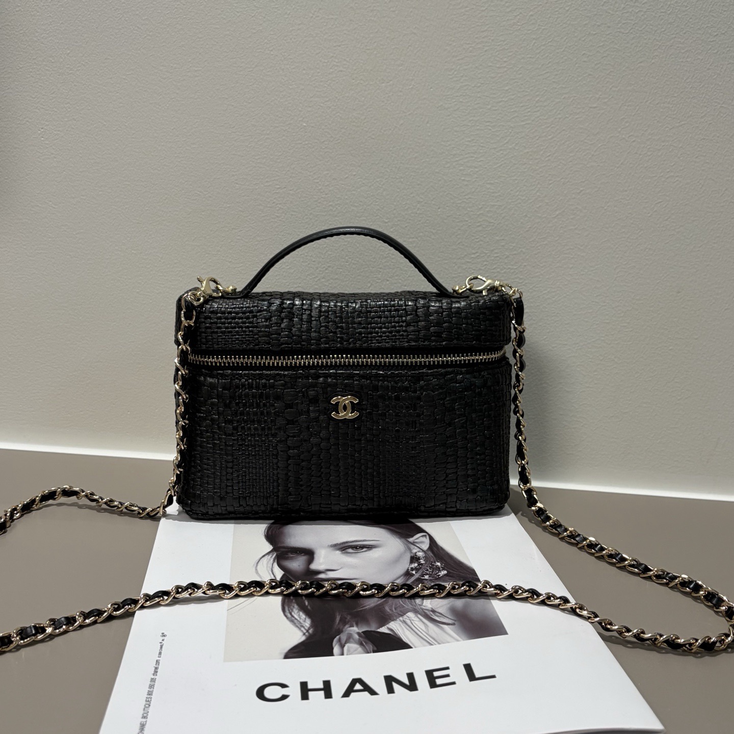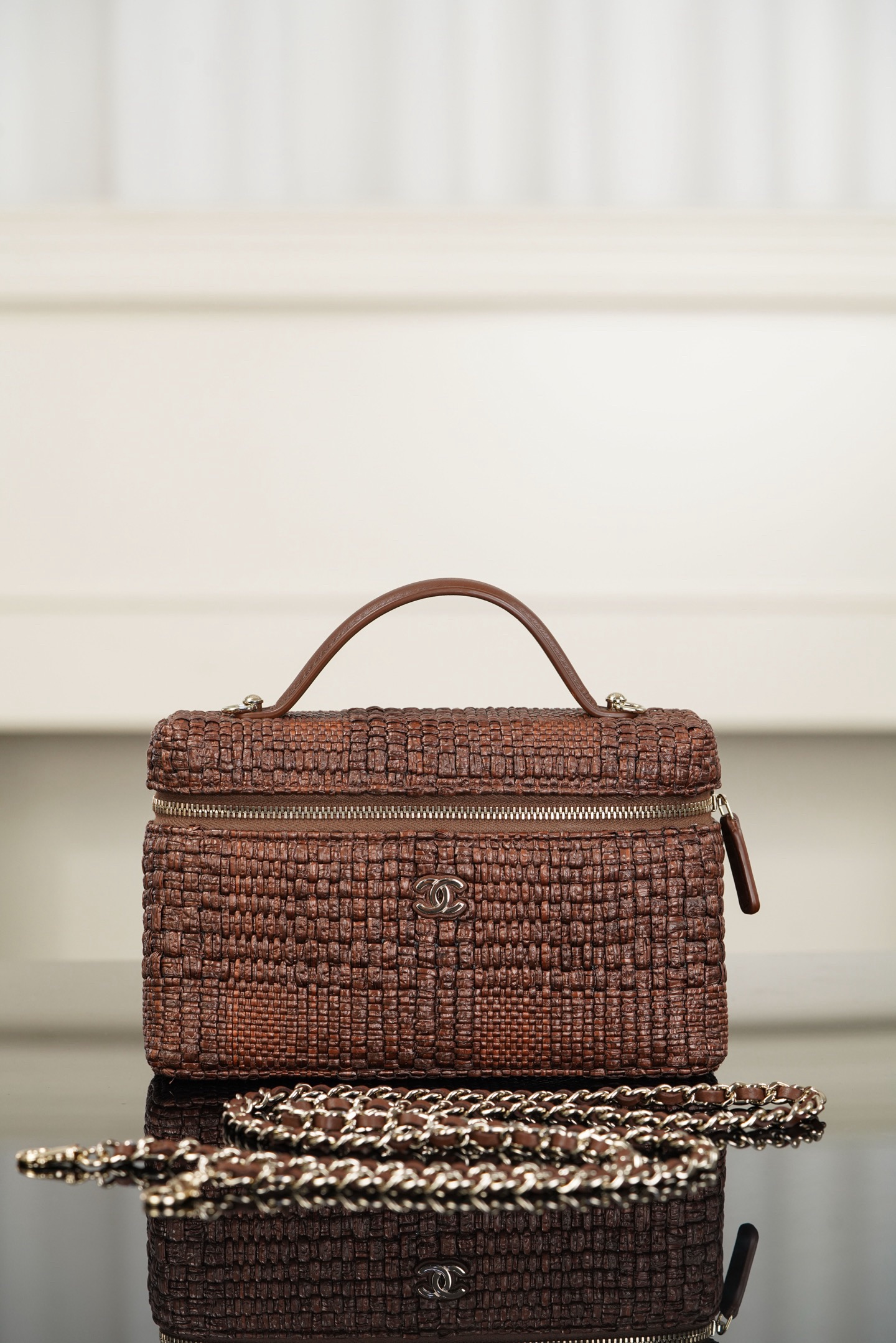CHANEL 26P classic chain gold label Double C Logo leather chain woven, coconut fiber with gold metal cosmetic bag, single-shoulder handbag for women