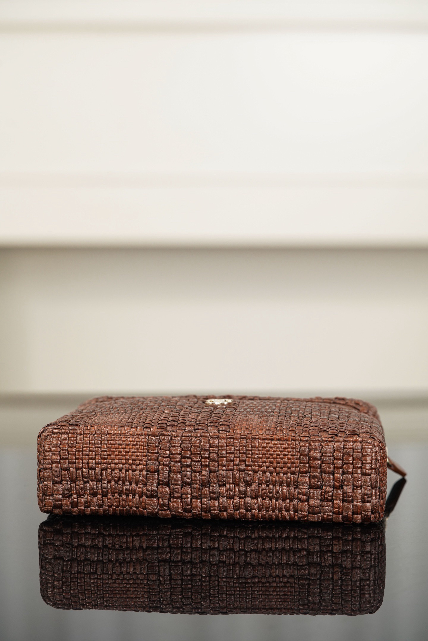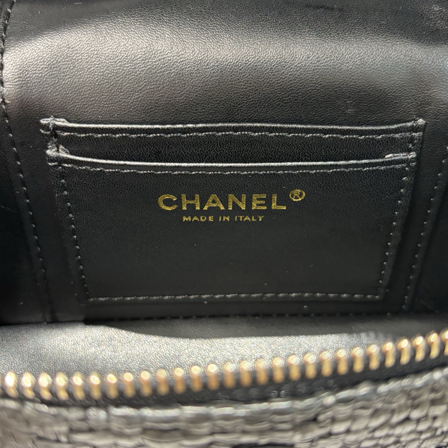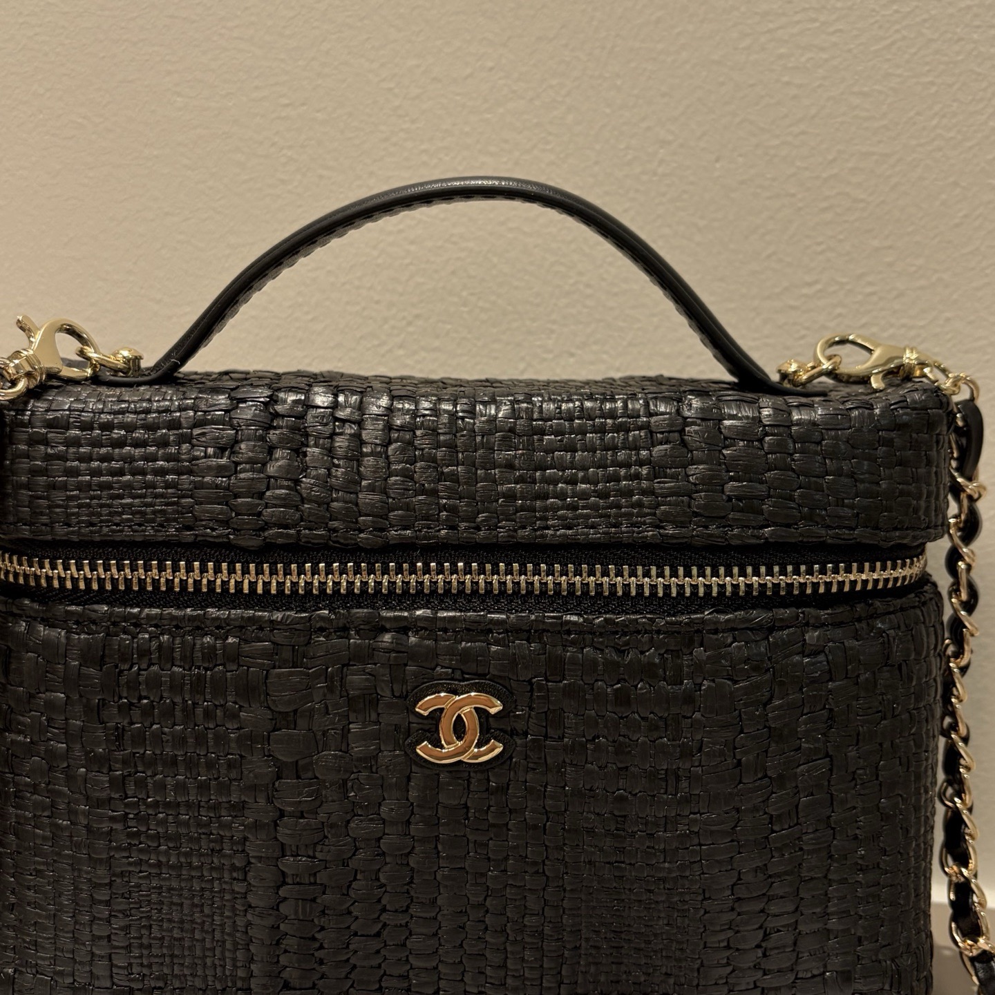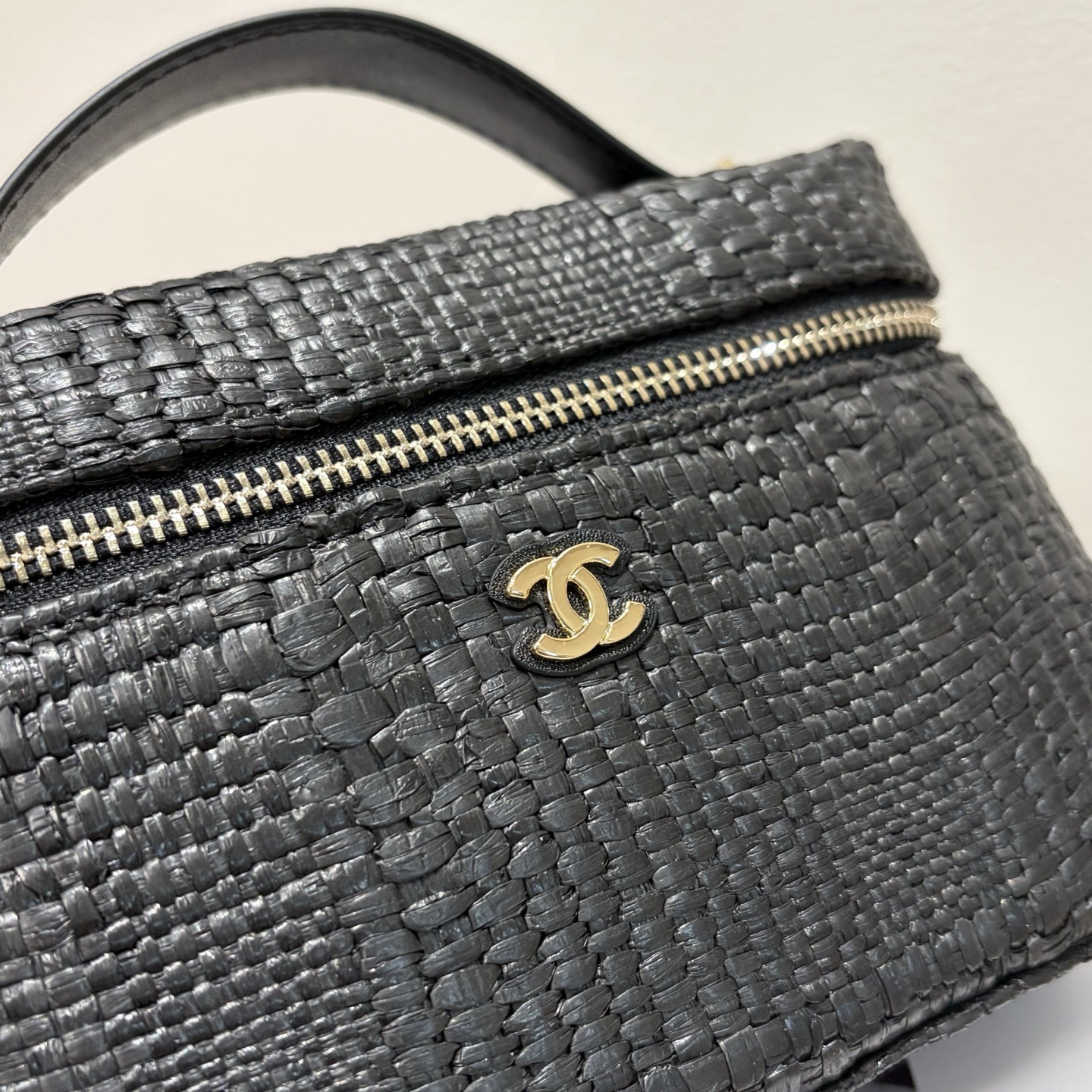 CHANEL 26P classic chain gold label Double C Logo leather chain woven, coconut fiber with gold metal cosmetic bag, single-shoulder handbag for women