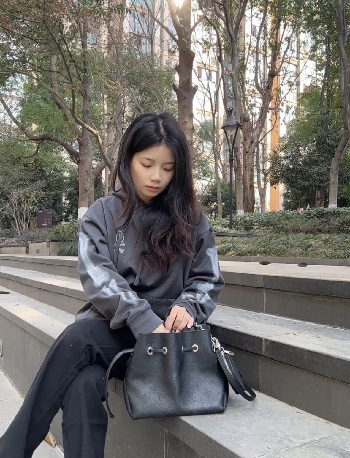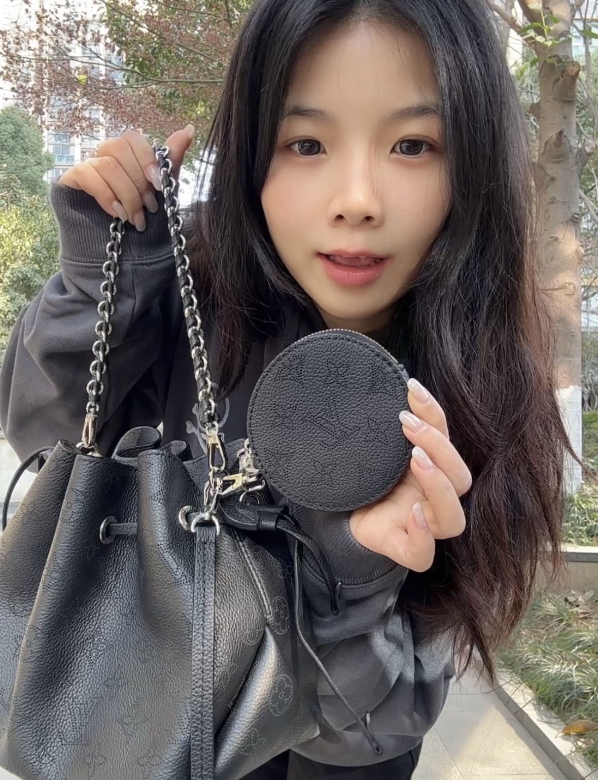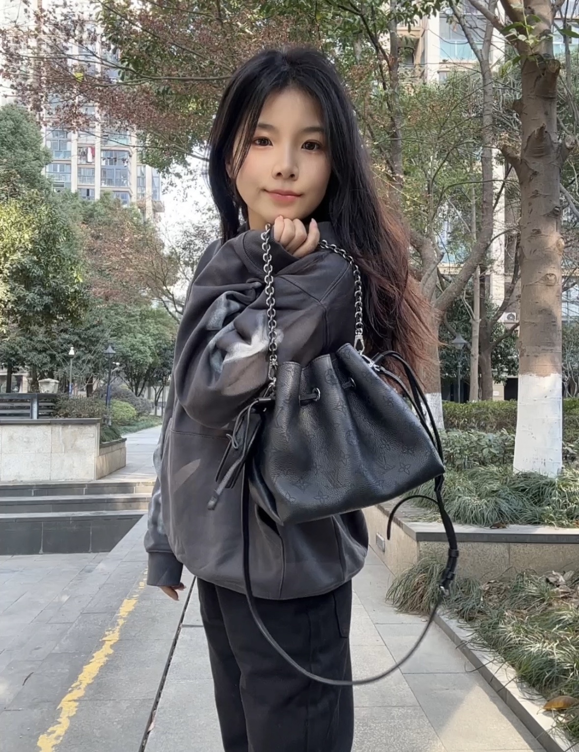 LOUIS VUITTON Bella drawstring opening and closing detachable and adjustable shoulder strap, embroidered cowhide Moonlight Goddess bucket bag, hand and shoulder crossbody bag, regular black