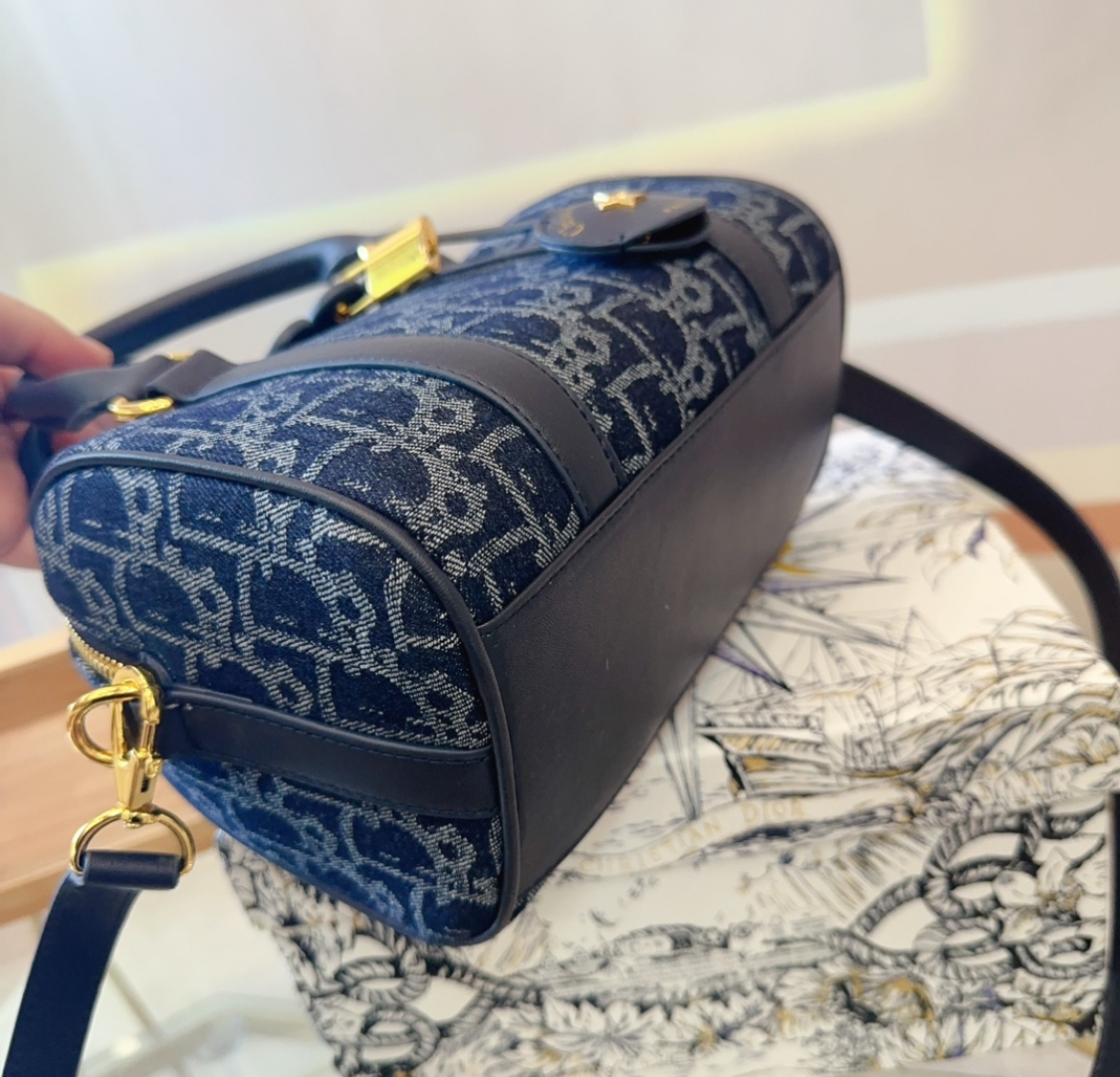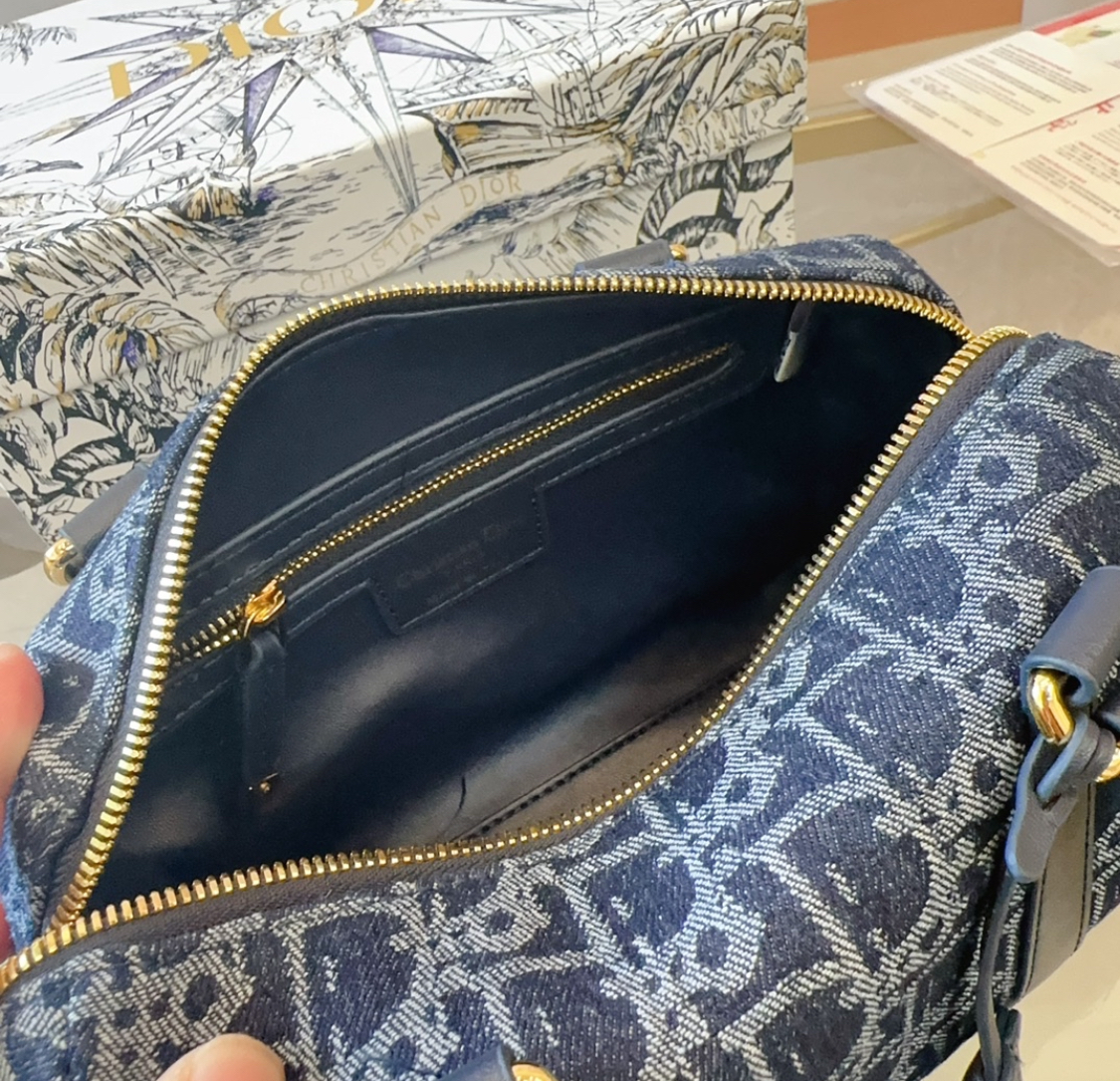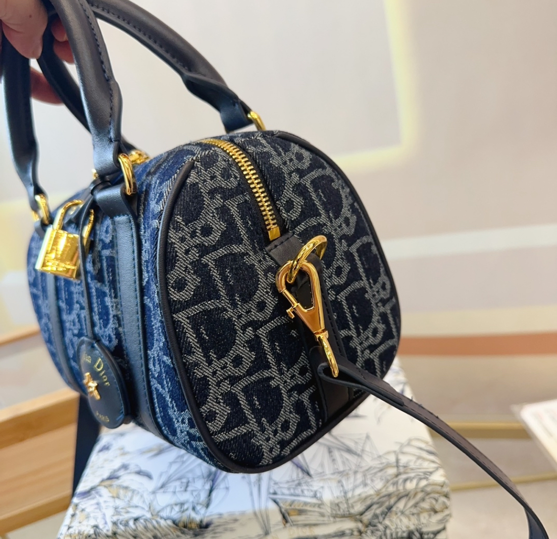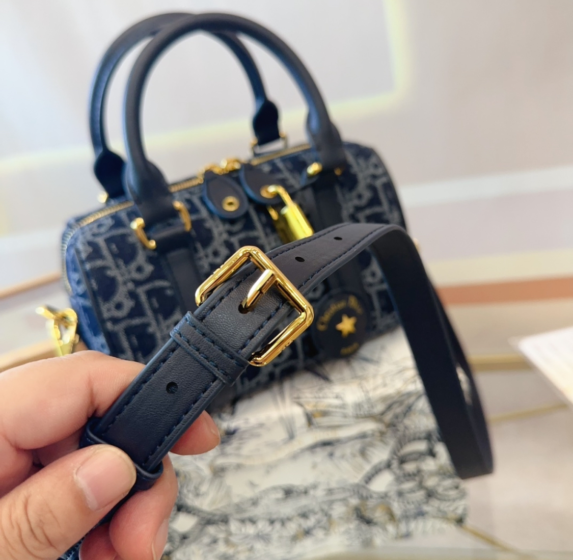 DIOR Groove 16 Adjustable and detachable shoulder strap zipper opening and closing single-shoulder crossbody handbag, mini women\'s blue