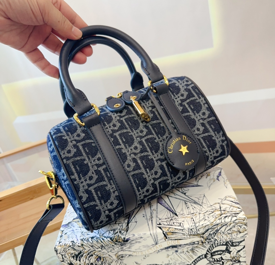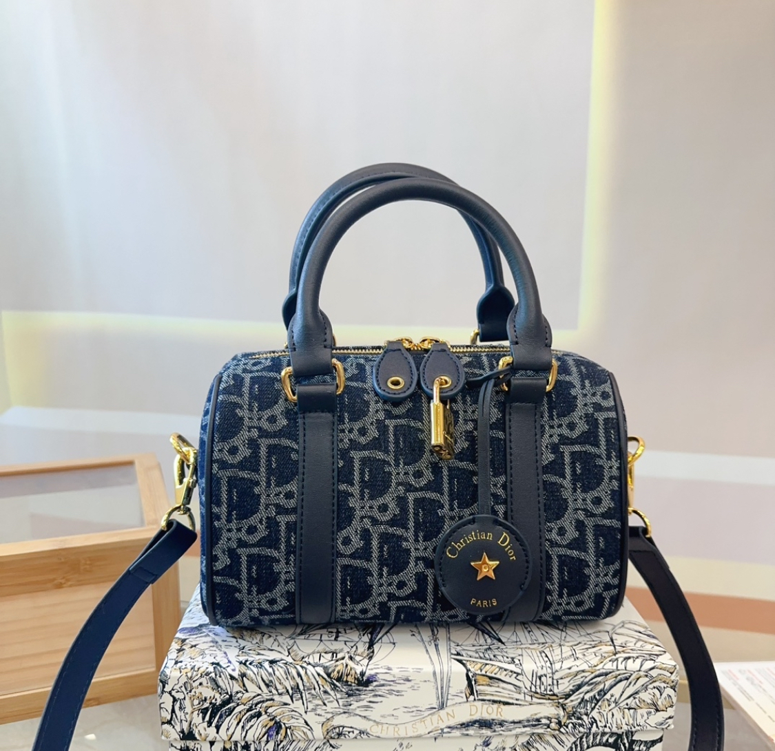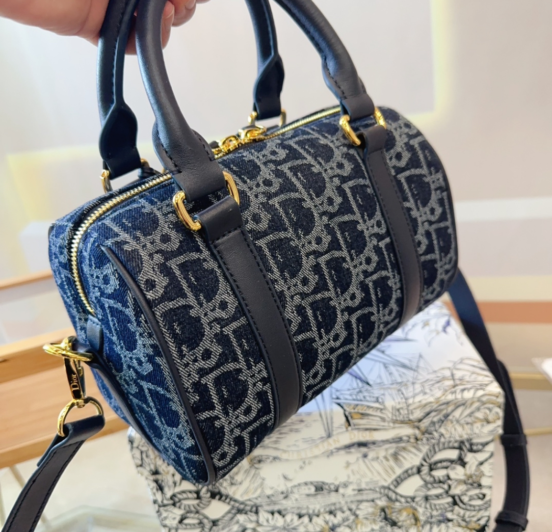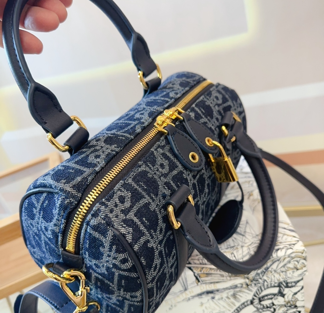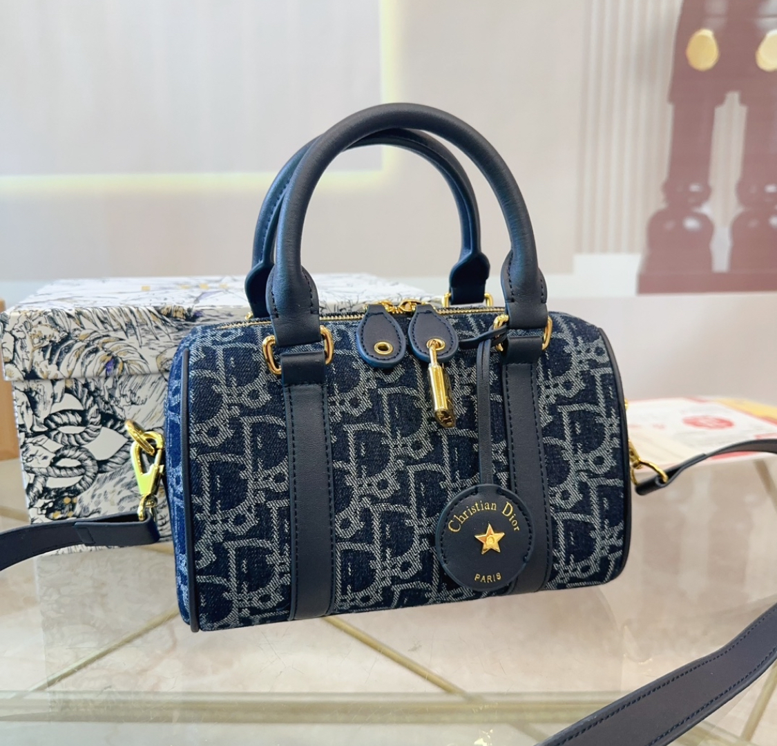 DIOR Groove 16 Adjustable and detachable shoulder strap zipper opening and closing single-shoulder crossbody handbag, mini women\'s blue