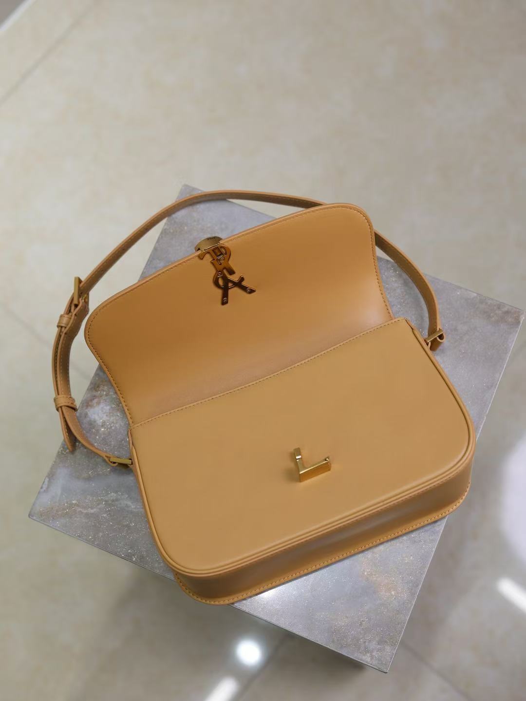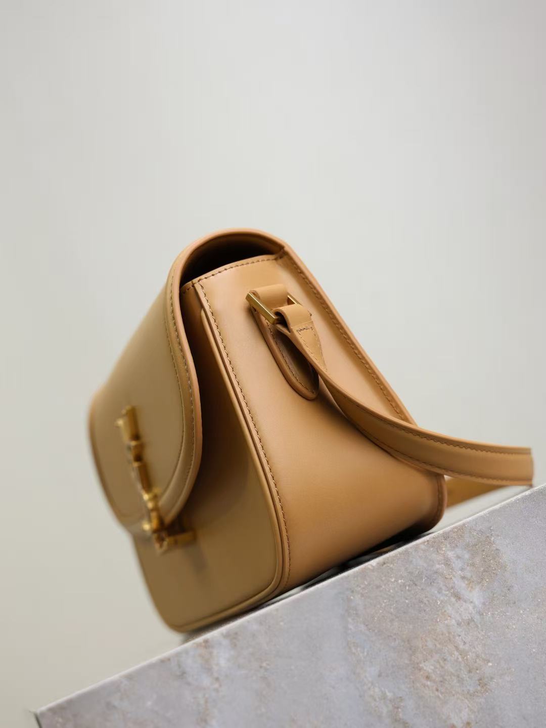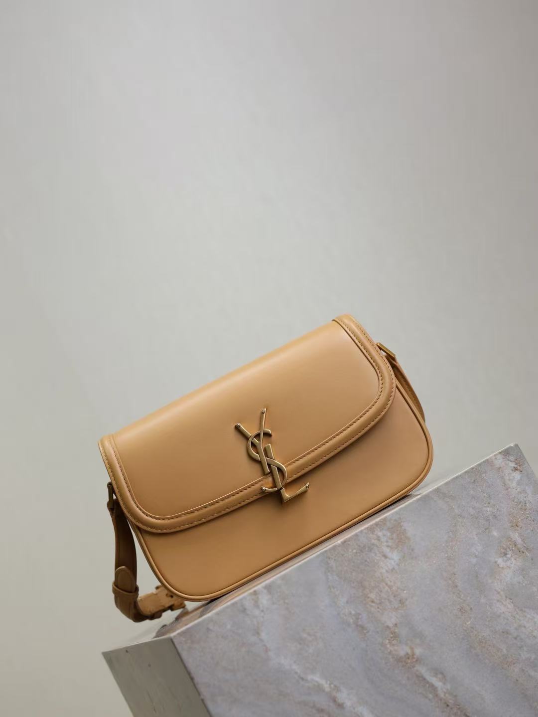 SAINT LAURENT SOLFERINO brand logo single-shoulder bag, medium-sized for women, light hazel color
