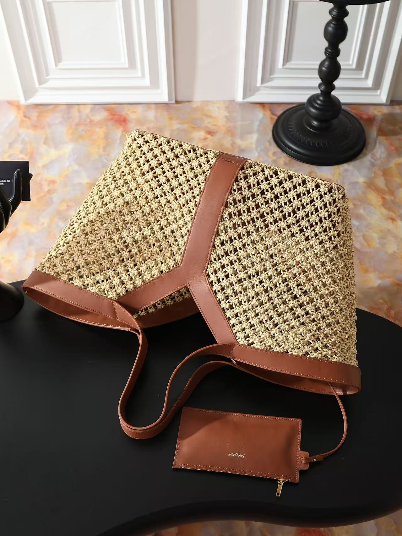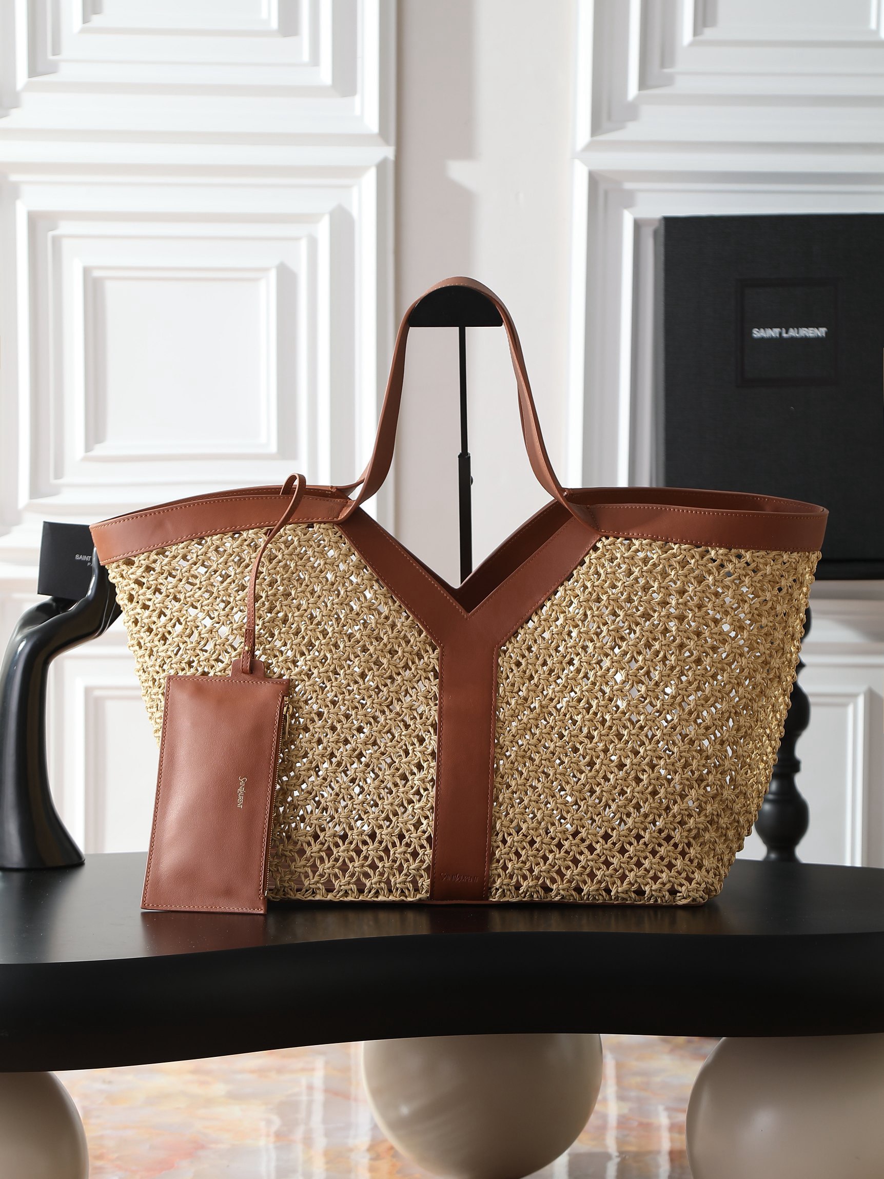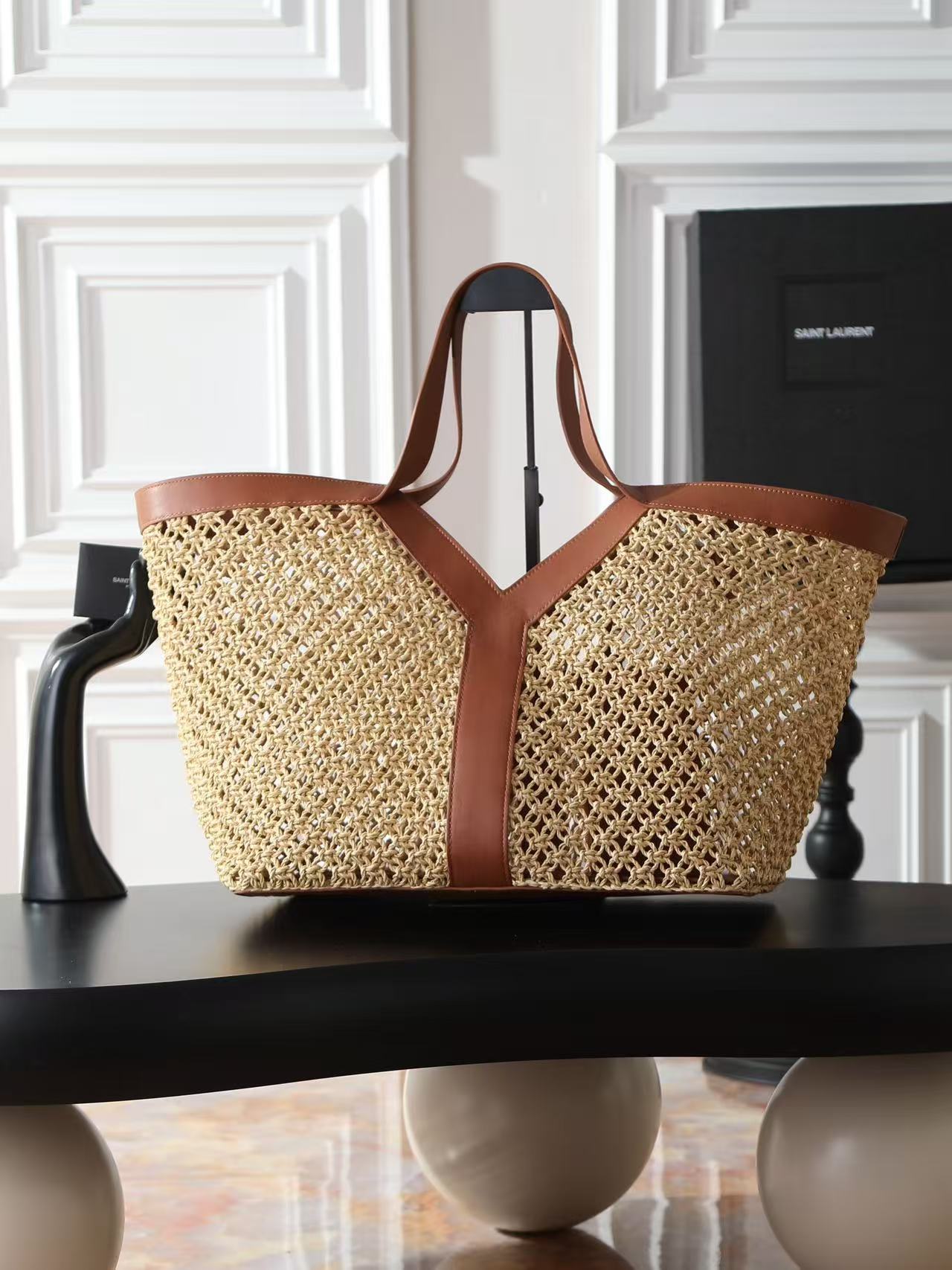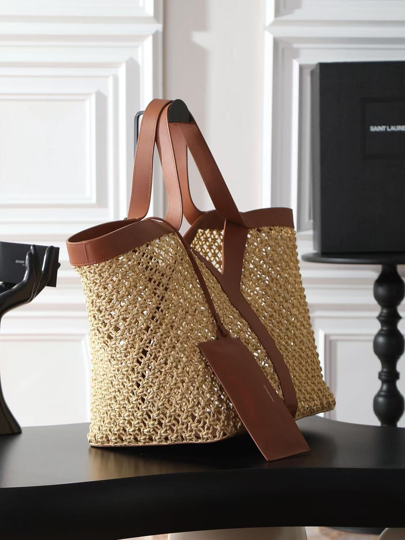 SAINT LAURENT YSL Y logo Bronze hardware basket, Tote bag, shopping bag, handbag women\'s style beige