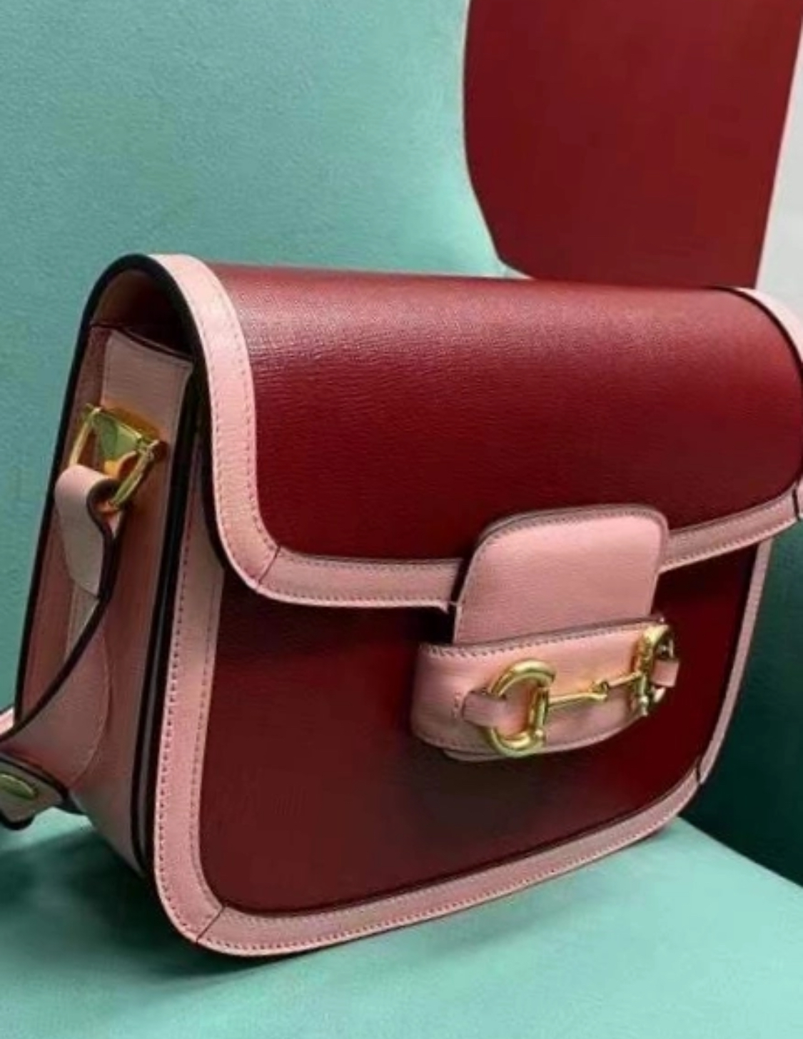 GUCCI 1955 vintage gold buckle with color trim saddle bag, crossbody single-shoulder bag, small size for women, red and pink
