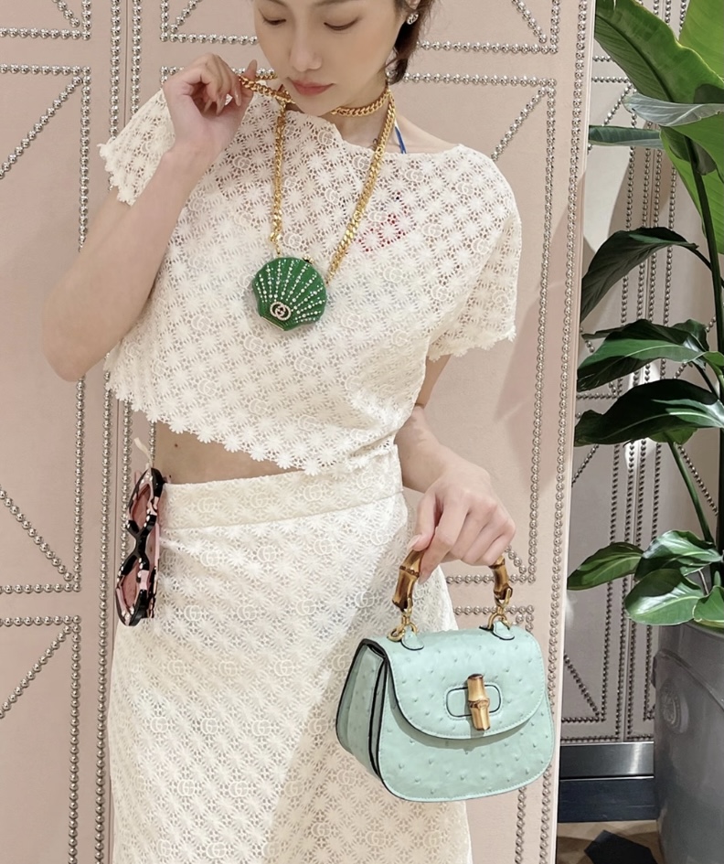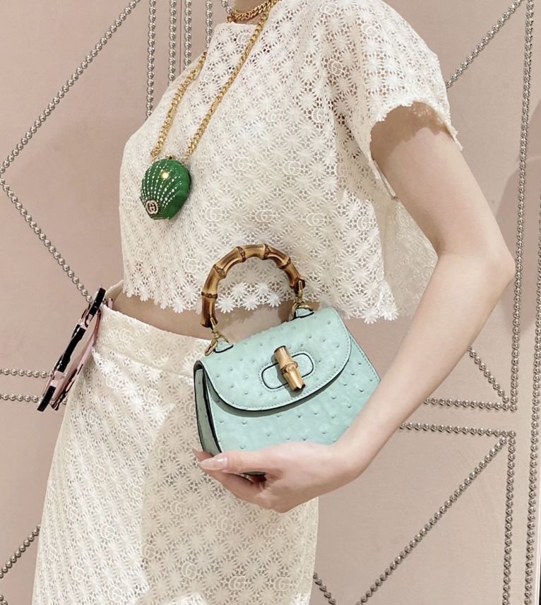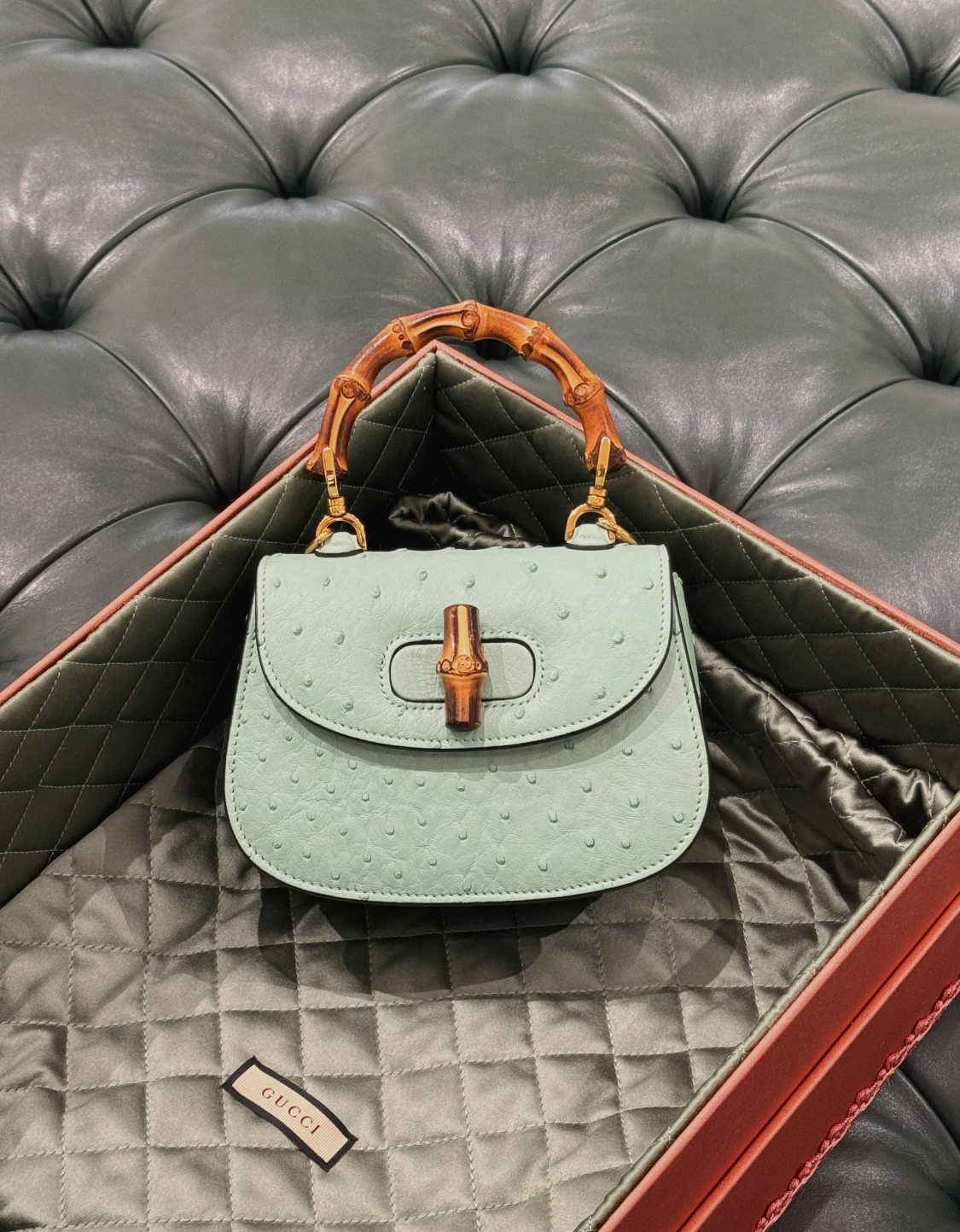 GUCCI Bamboo 1947 Bamboo handle lock Bamboo joint bag, mini women\'s handbag, light green