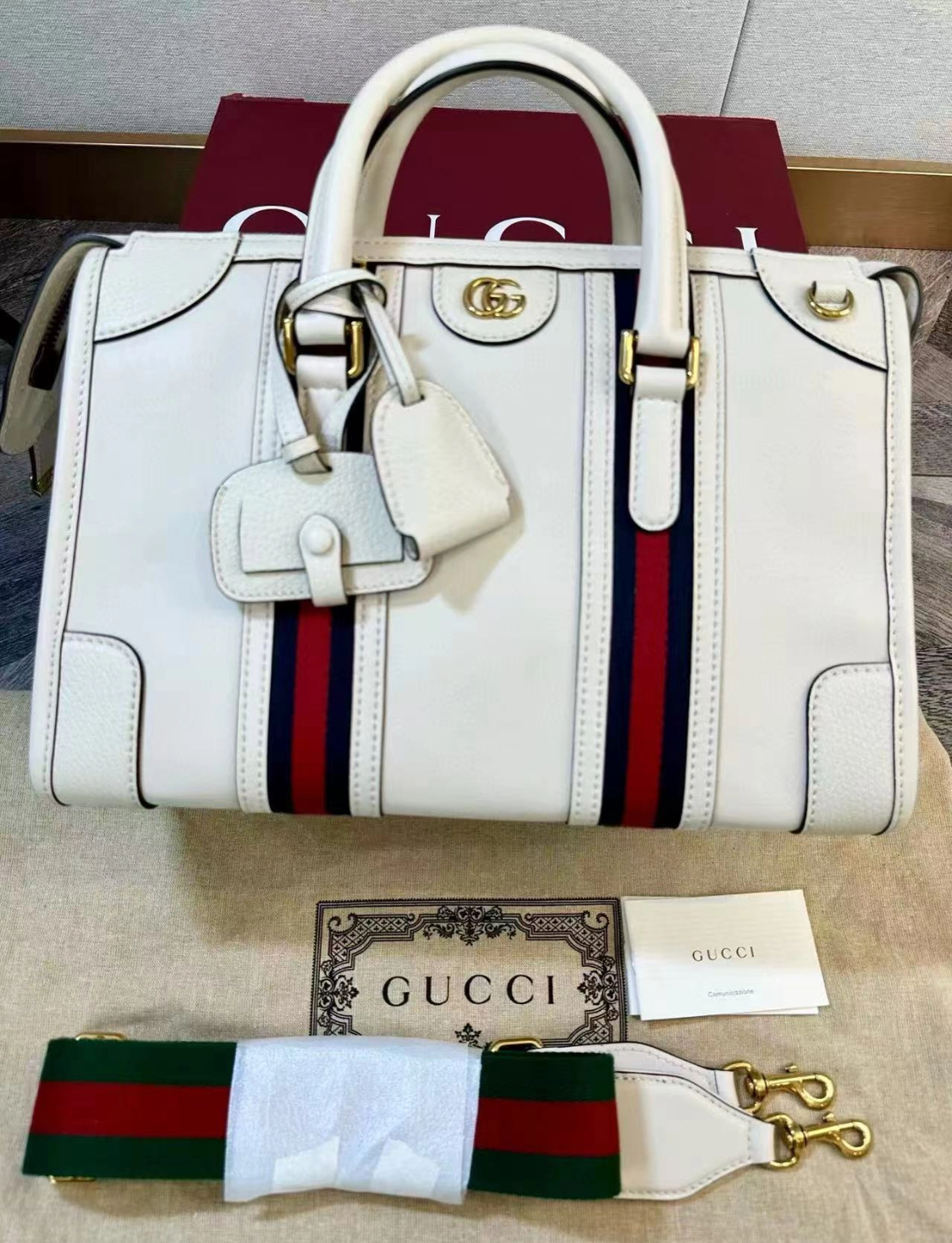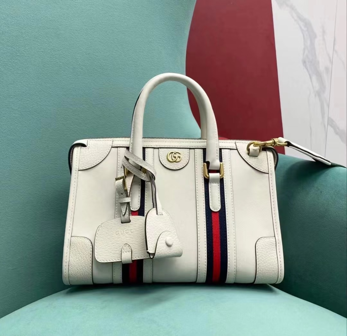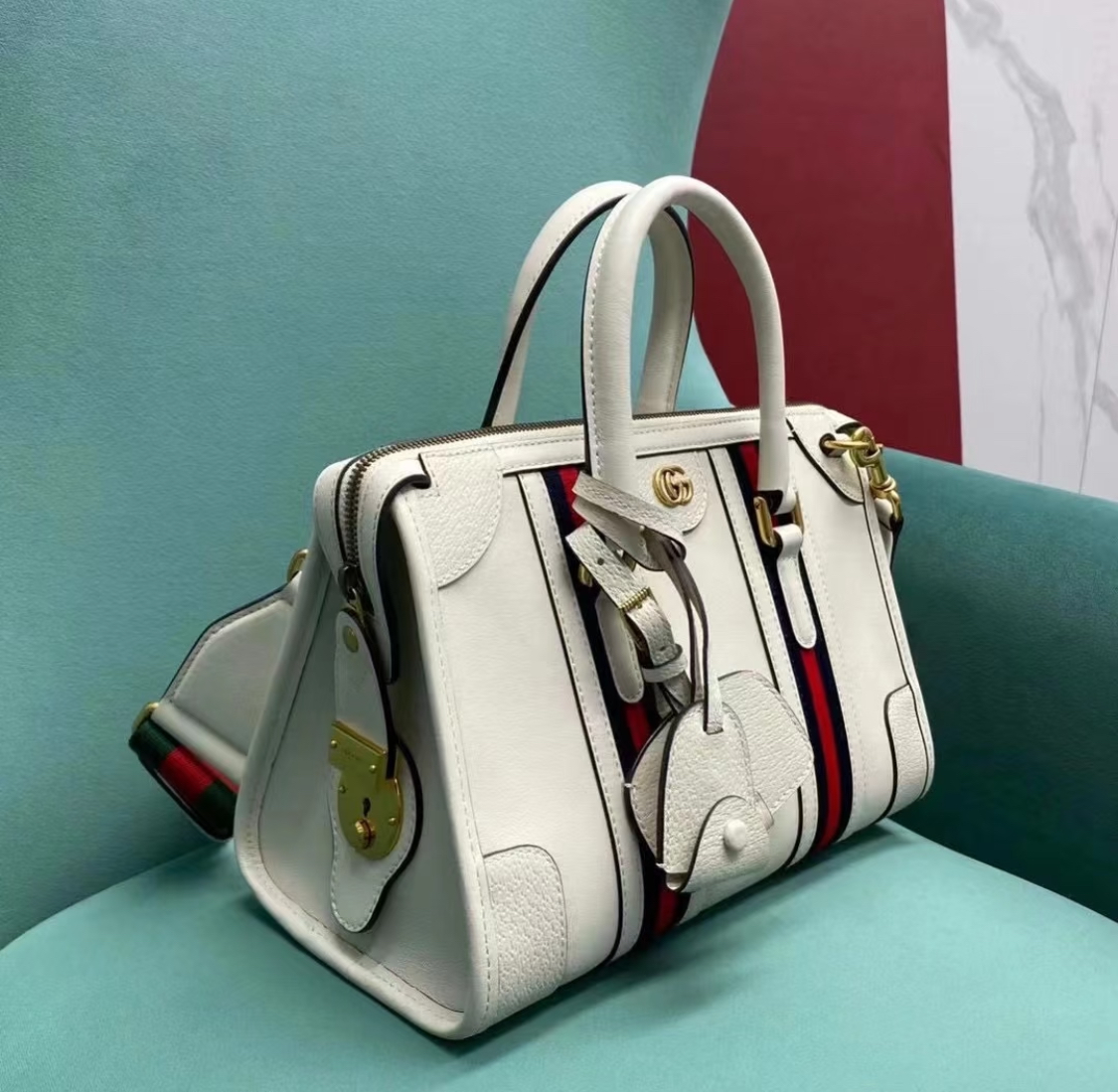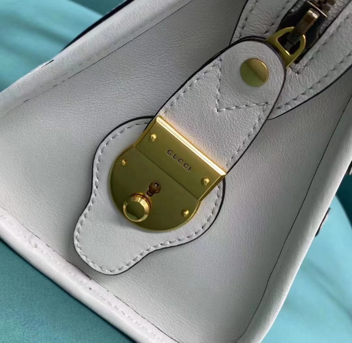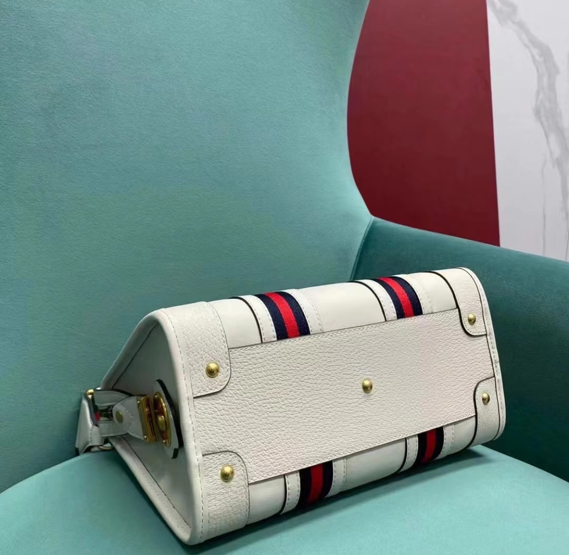 GUCCI Exquisite - Gucci Gold Logo, metal protective foot studs, travel bag, single-shoulder crossbody handbag, mini women\'s white