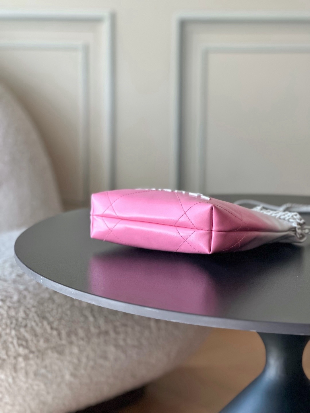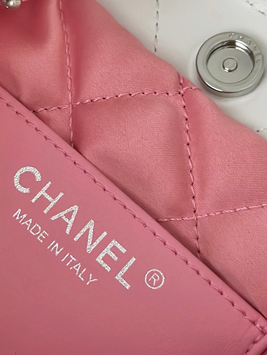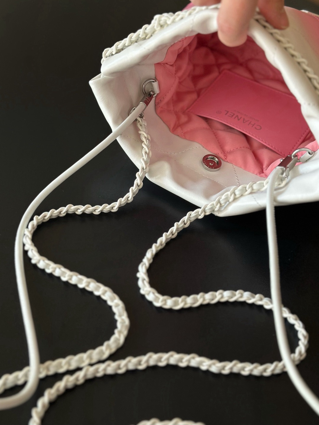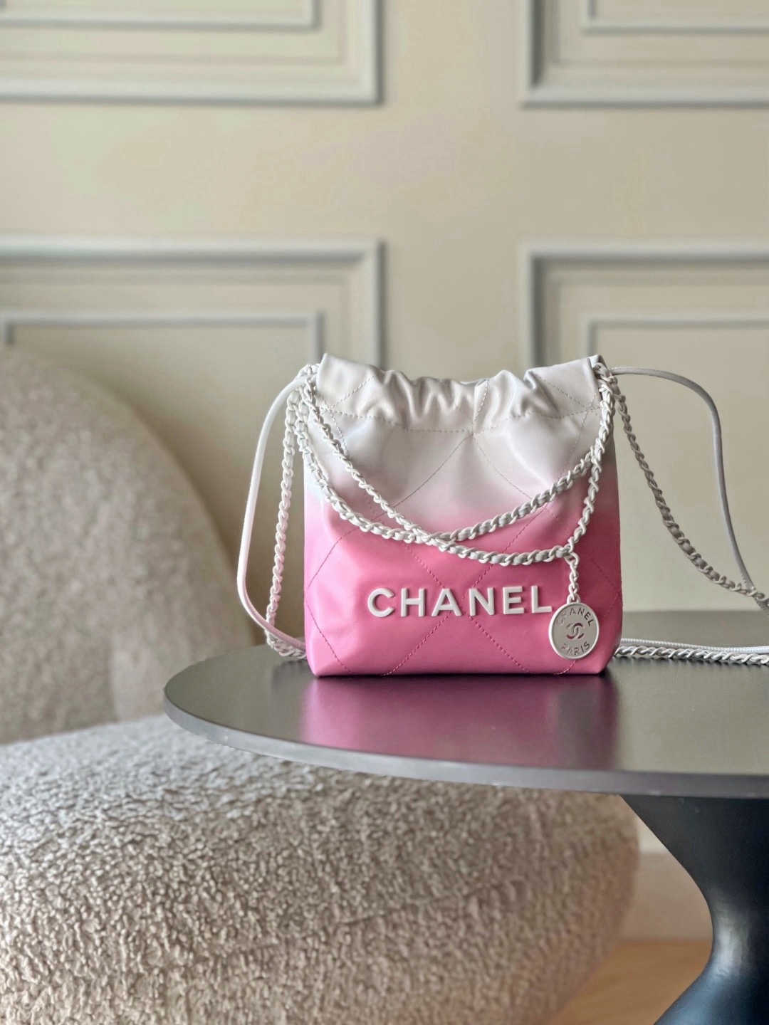 CHANEL 22Bag 24S Logo drawstring opening, diamond-shaped leather chain, lacquered gradient crossbody bag, mini white with pink