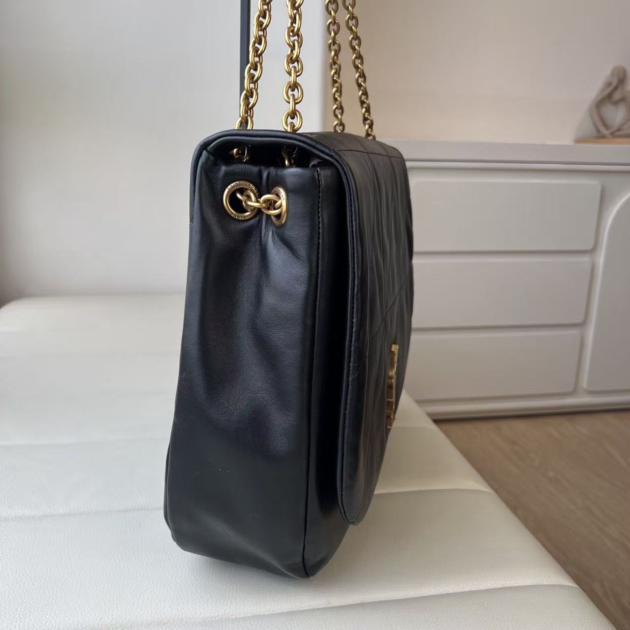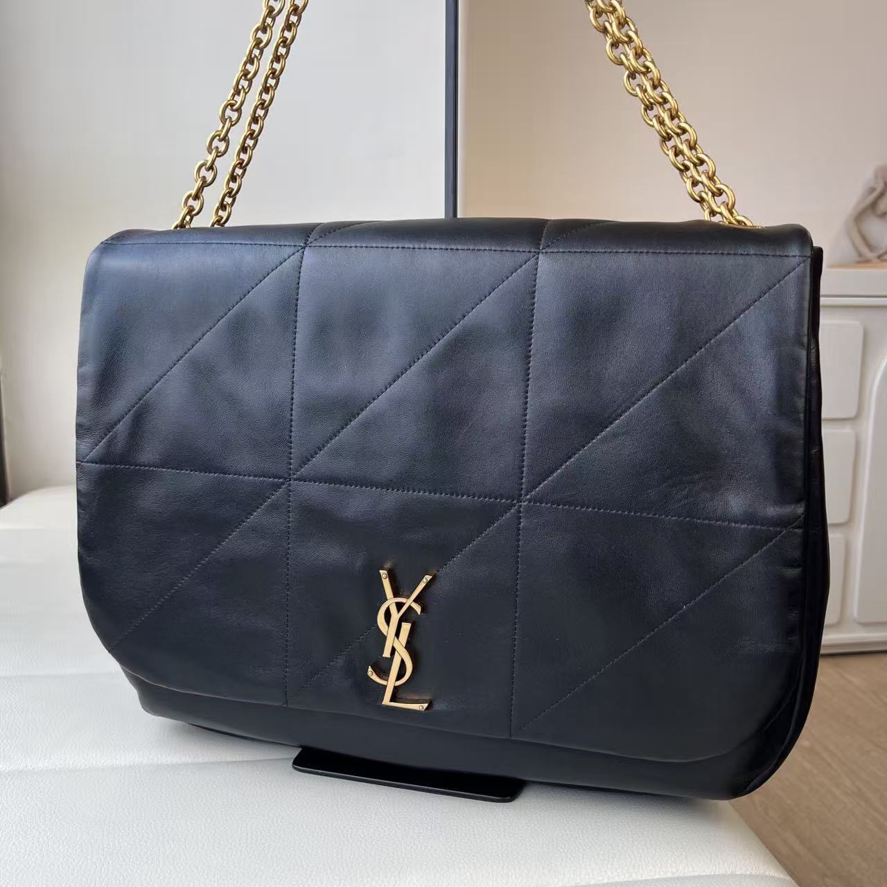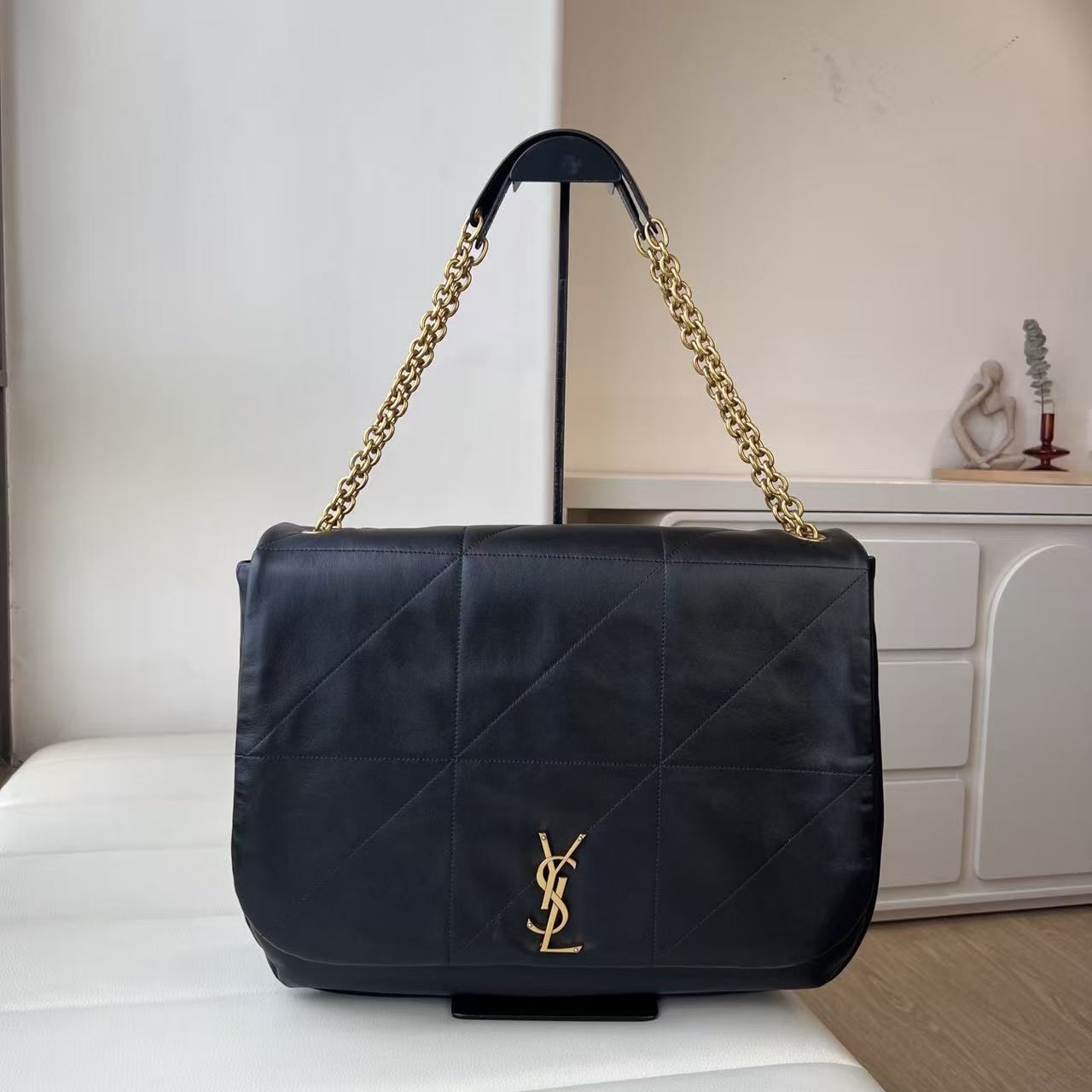 SAINT LAURENT YSL JAMIE 4.3 Distressed Logo Chain Hand bill Shoulder bag for women, black