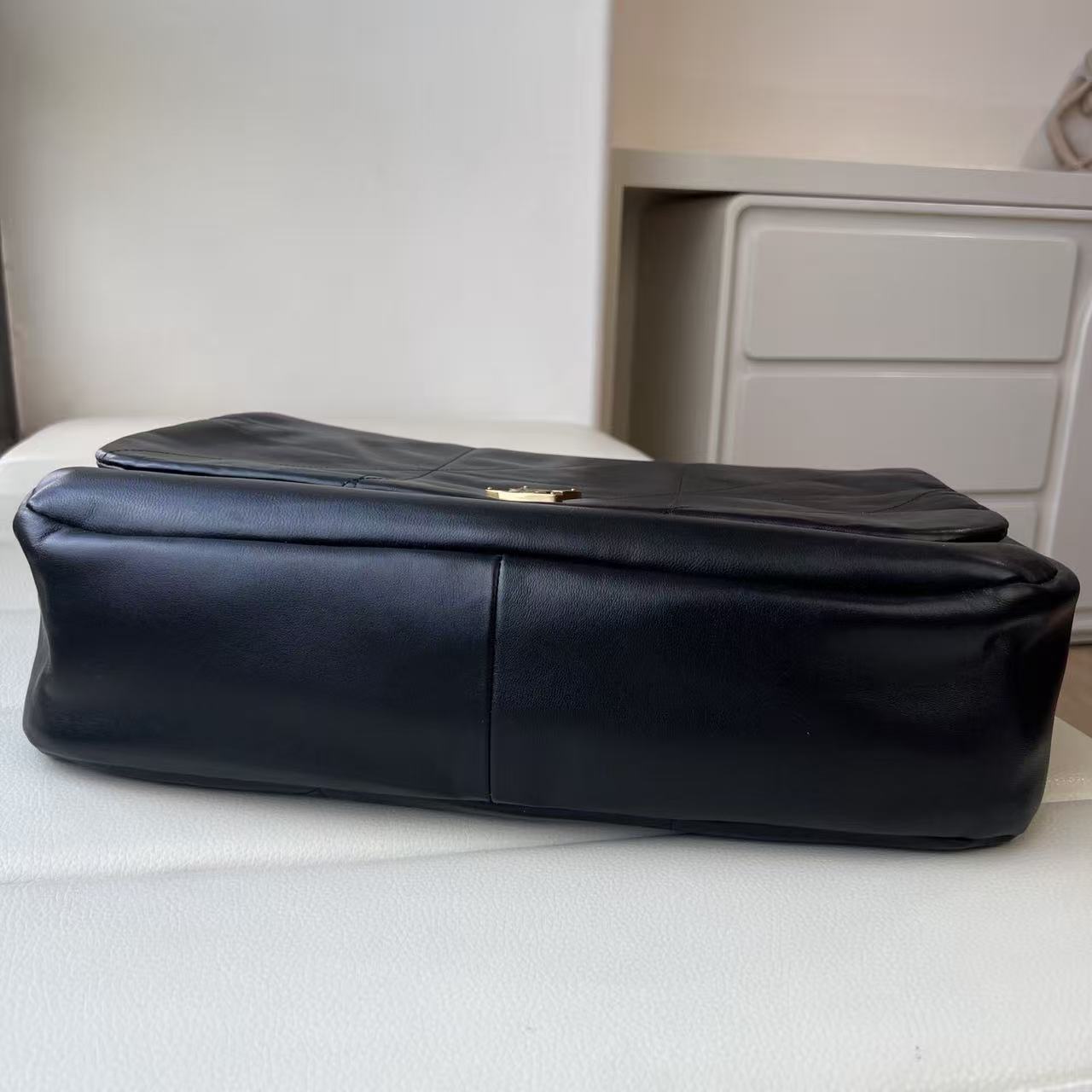 CHANEL Classic Flap CF chain leather interlocking diamond grainy calfskin crossbody shoulder bag medium size apricot color