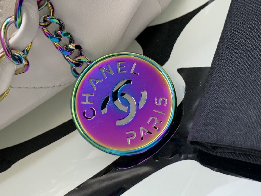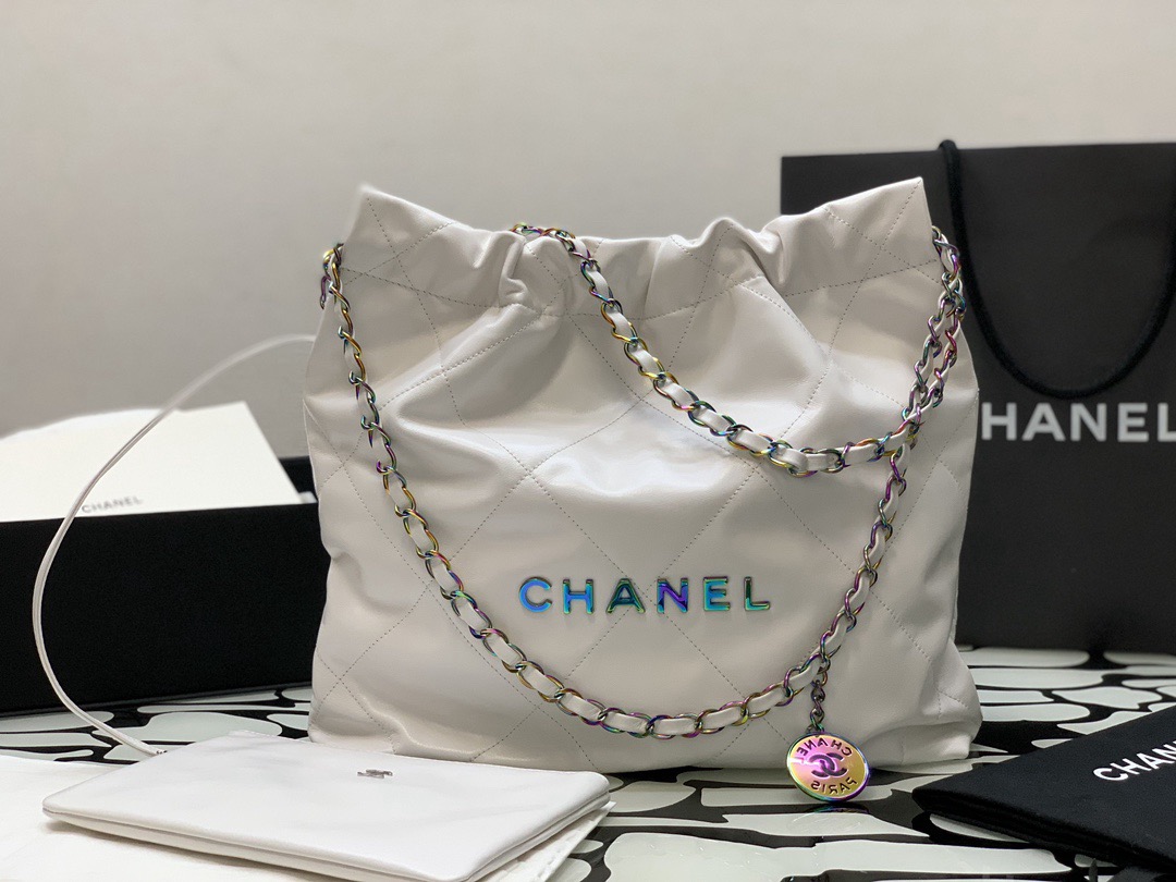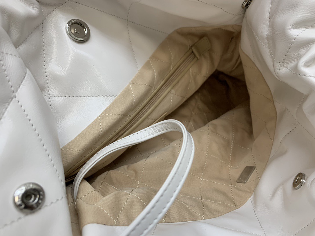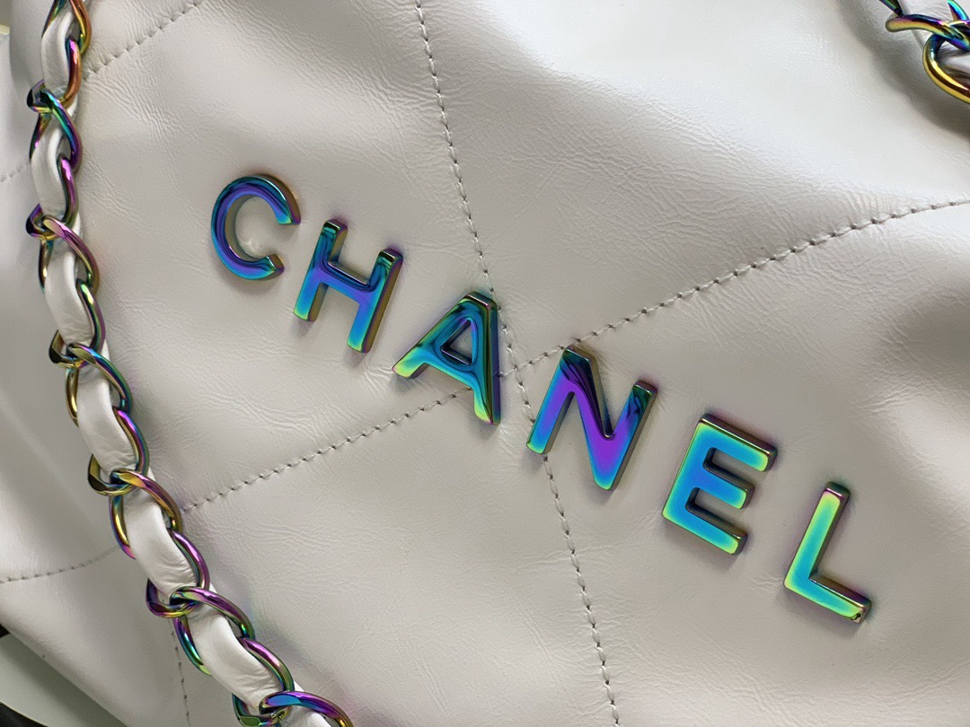CHANEL 22Bag 24C Early Spring Resort Collection, letter Logo diamond-patterned leather chain strap, bill of lading shoulder bag, small size, regular white