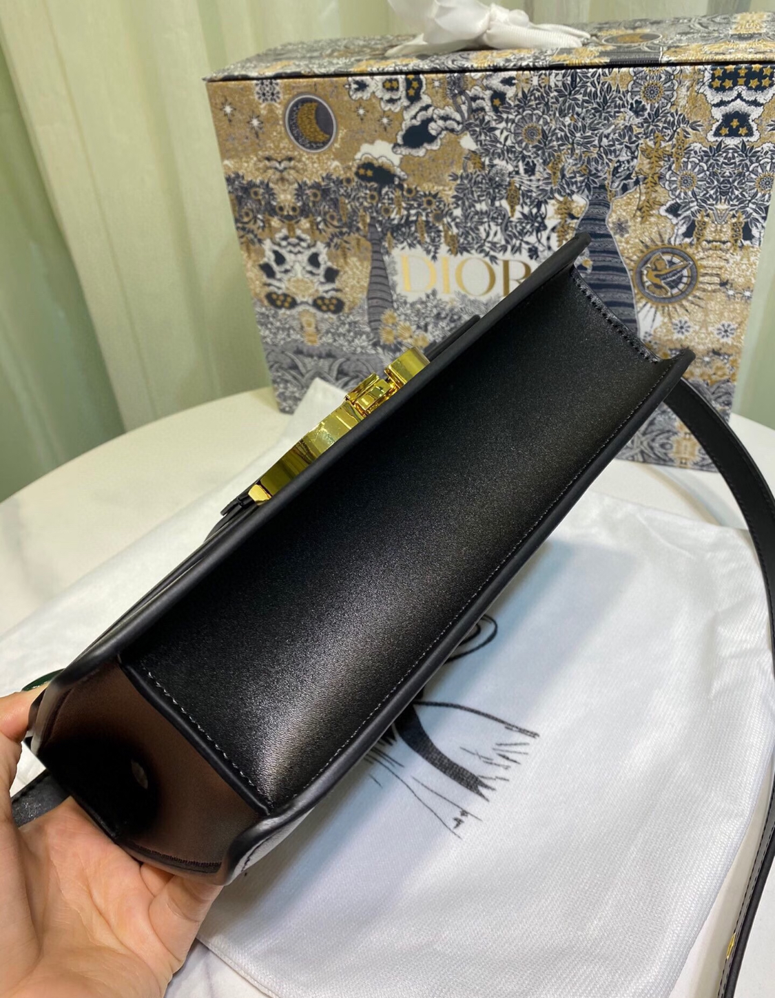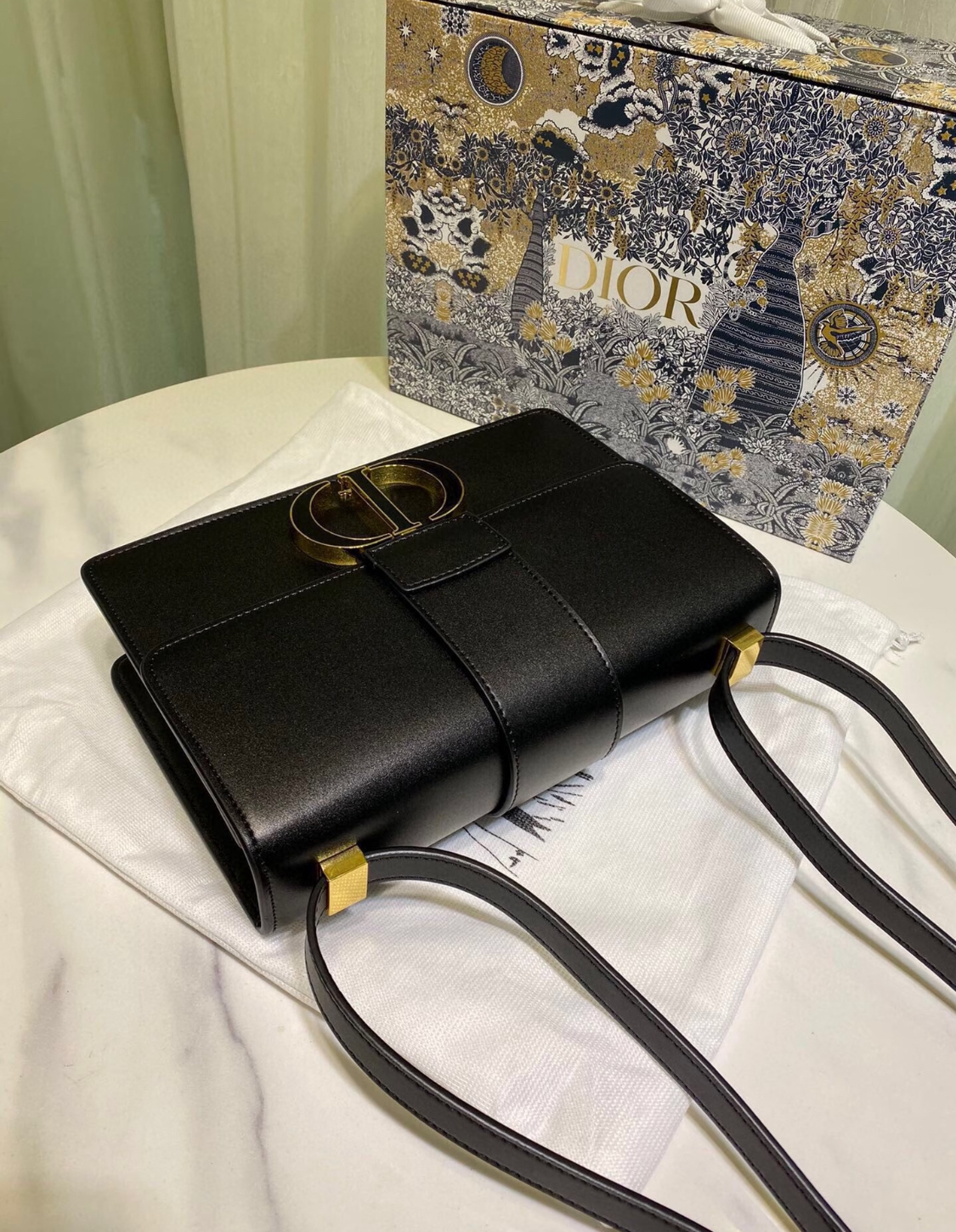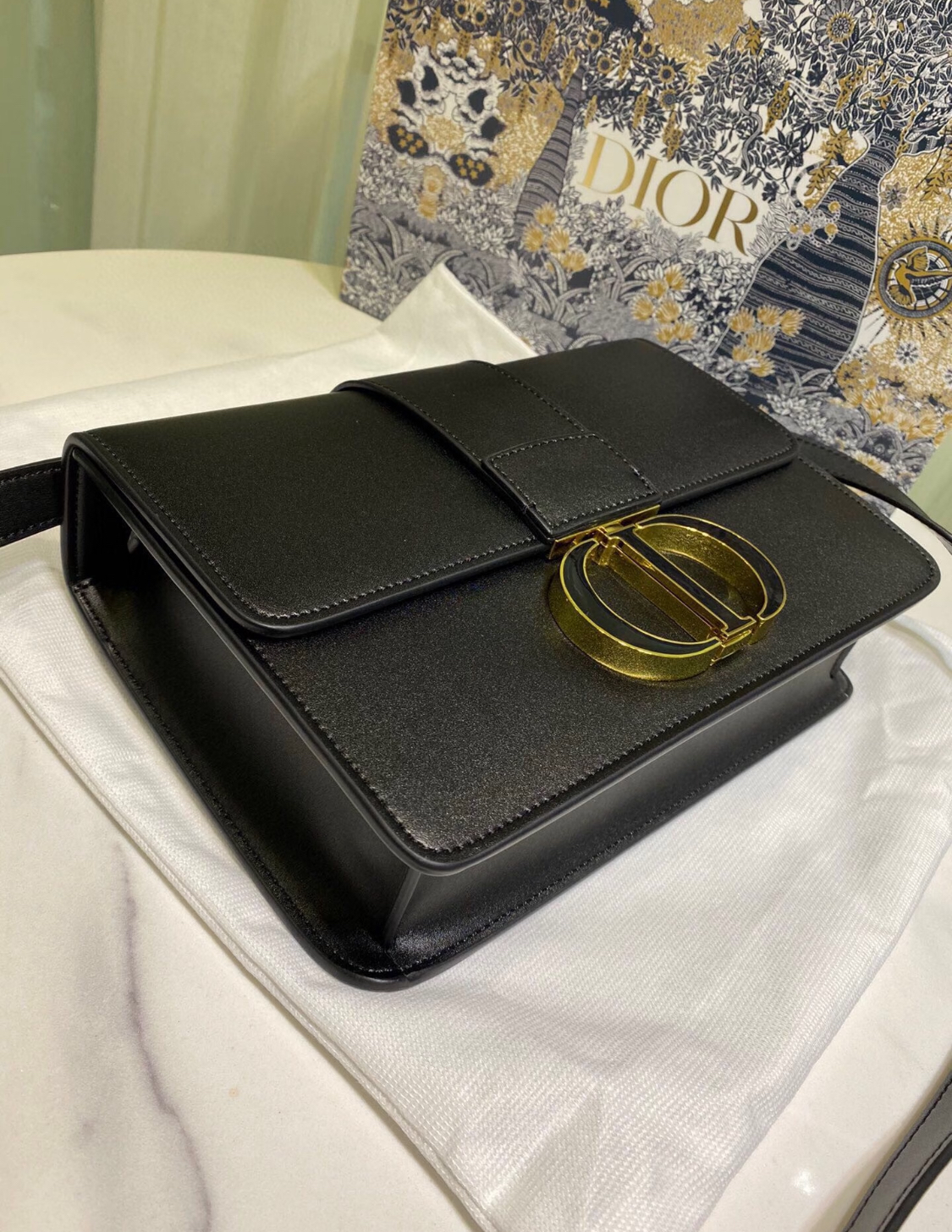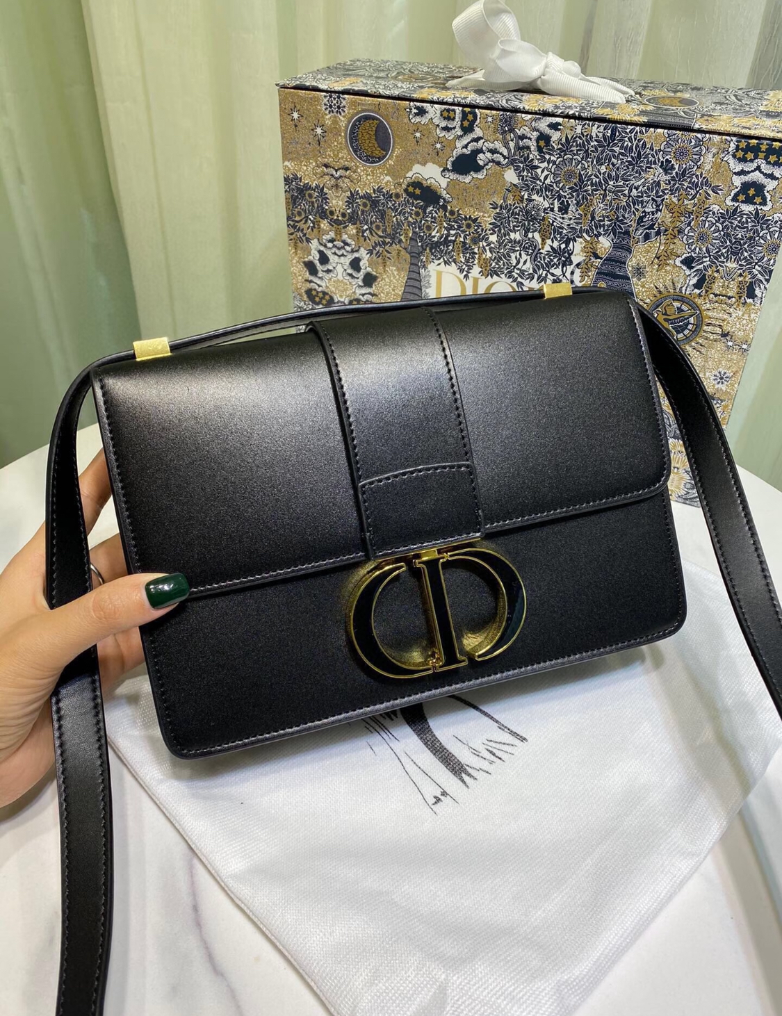 DIOR 30 Montaigne Montaigne series letter Logo bag, lid-opening box bag, single-shoulder crossbody bag for women, black
