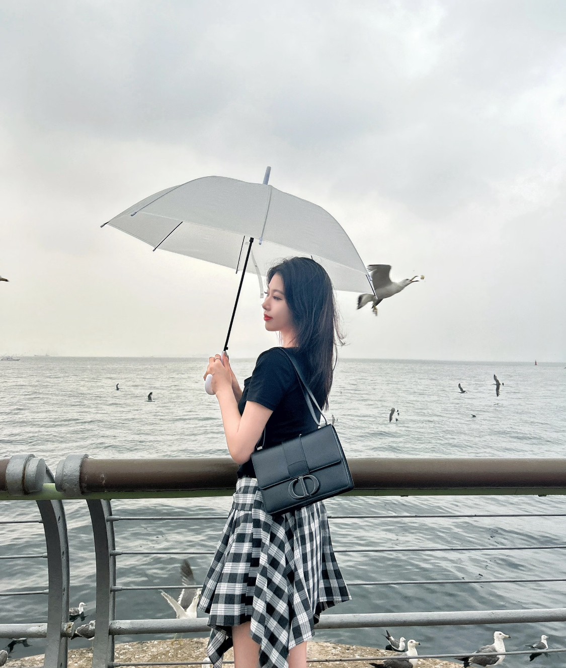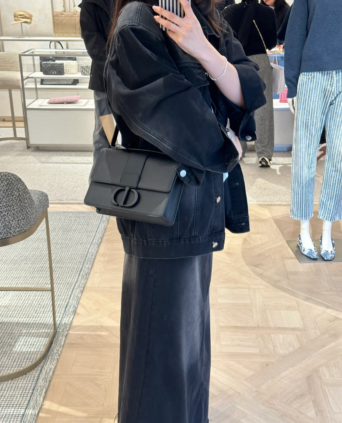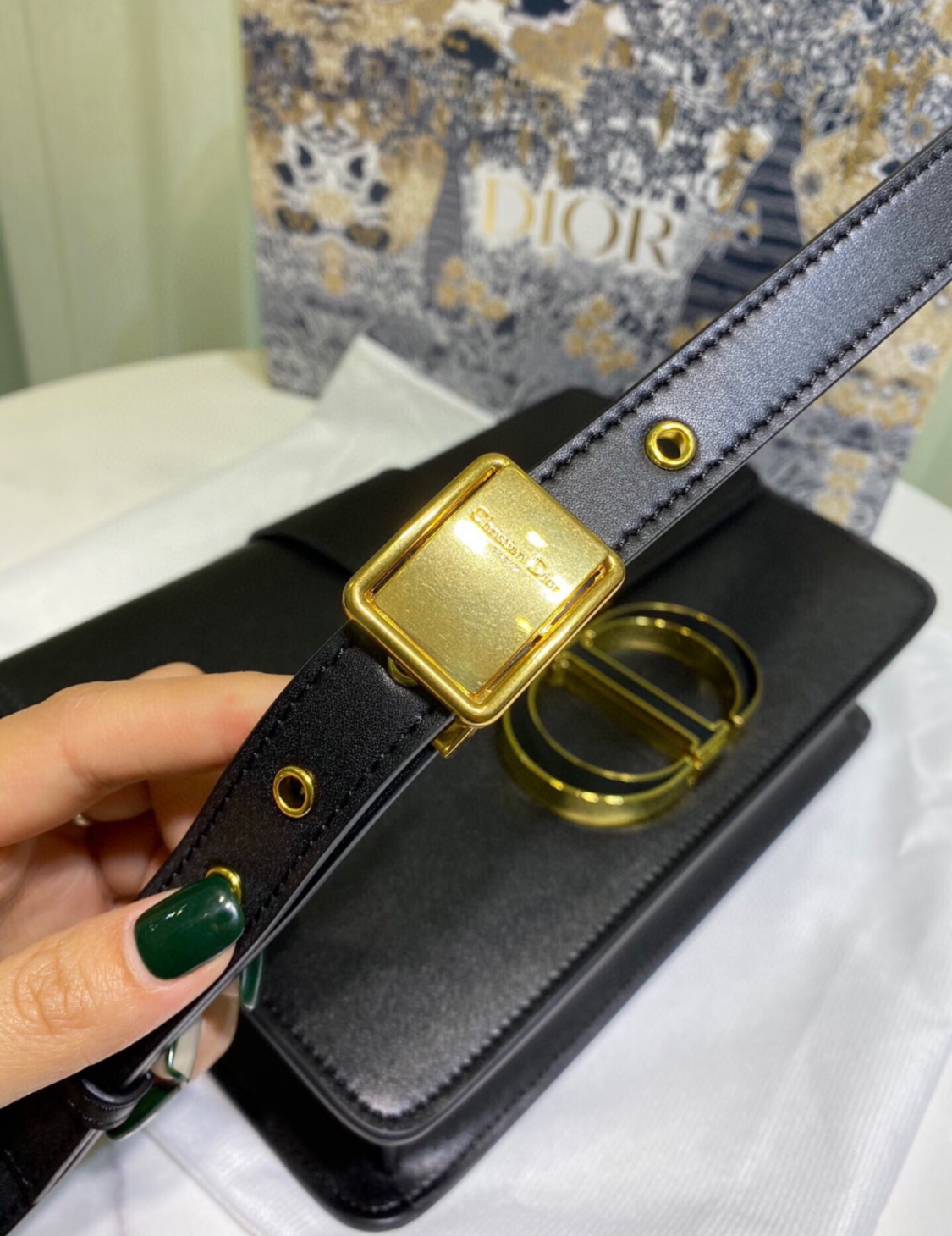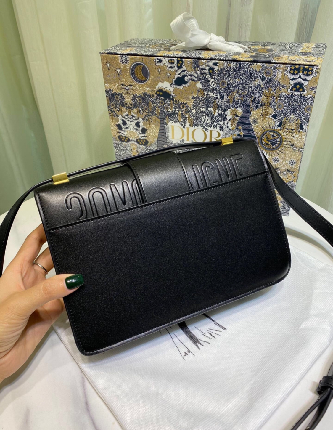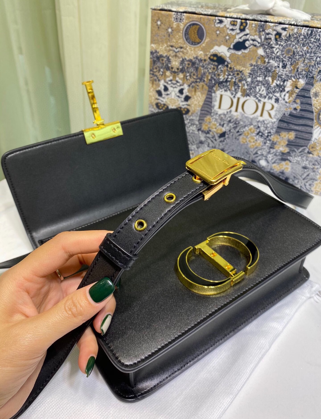 DIOR 30 Montaigne Montaigne series letter Logo bag, lid-opening box bag, single-shoulder crossbody bag for women, black