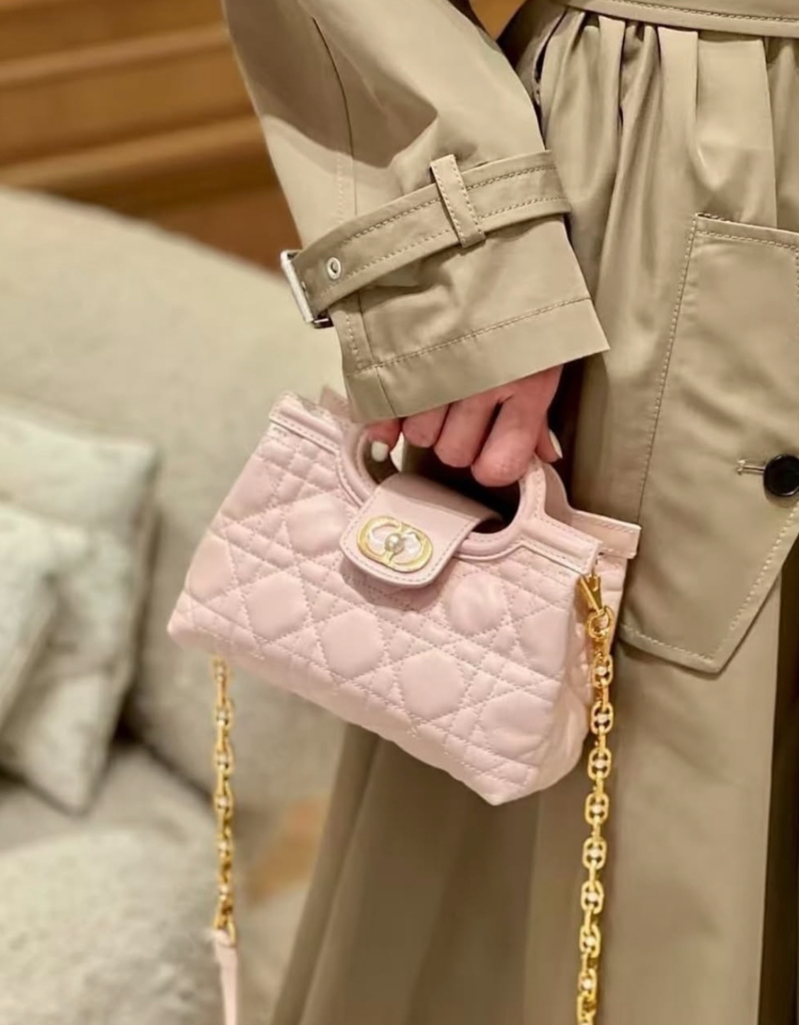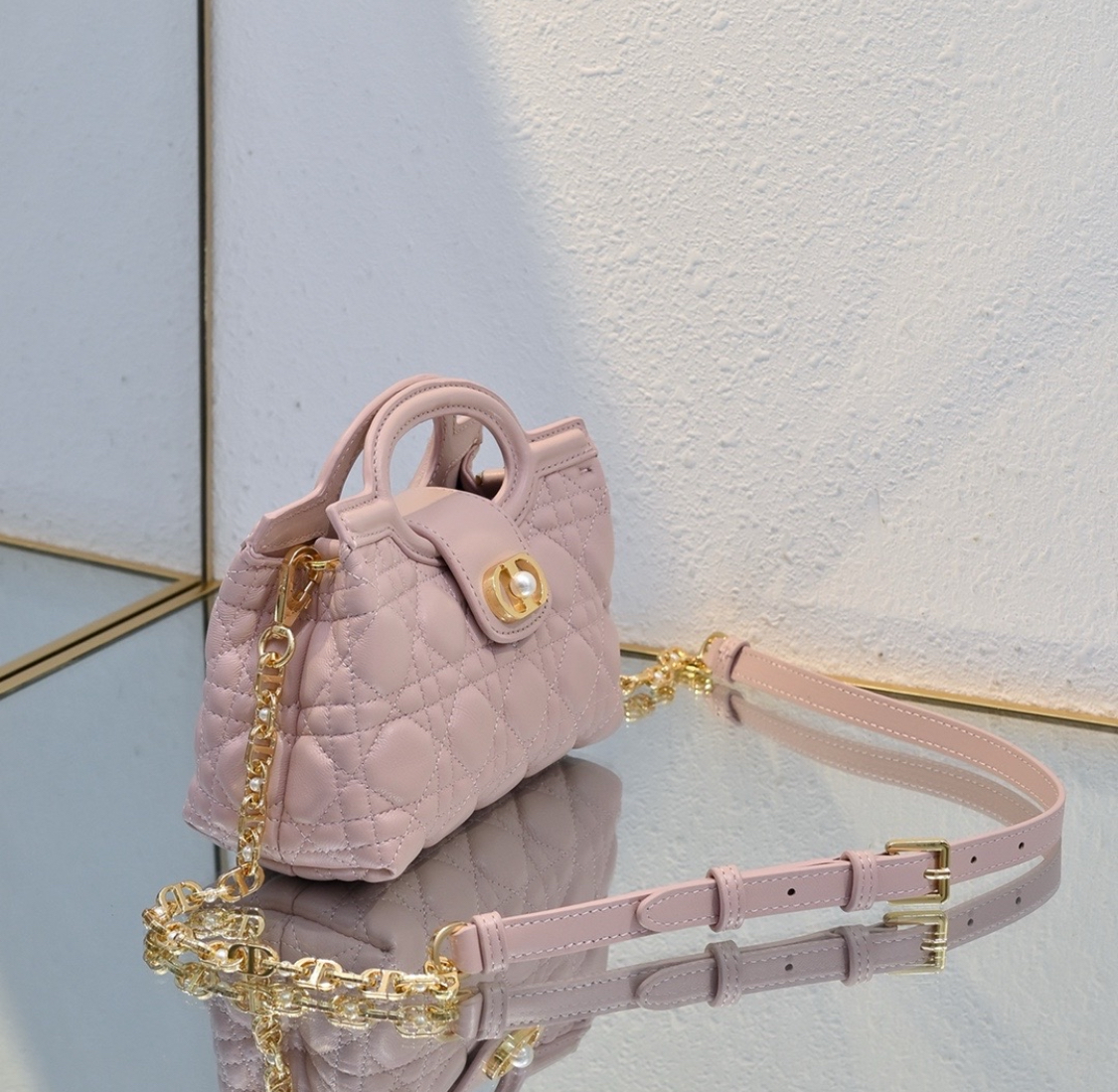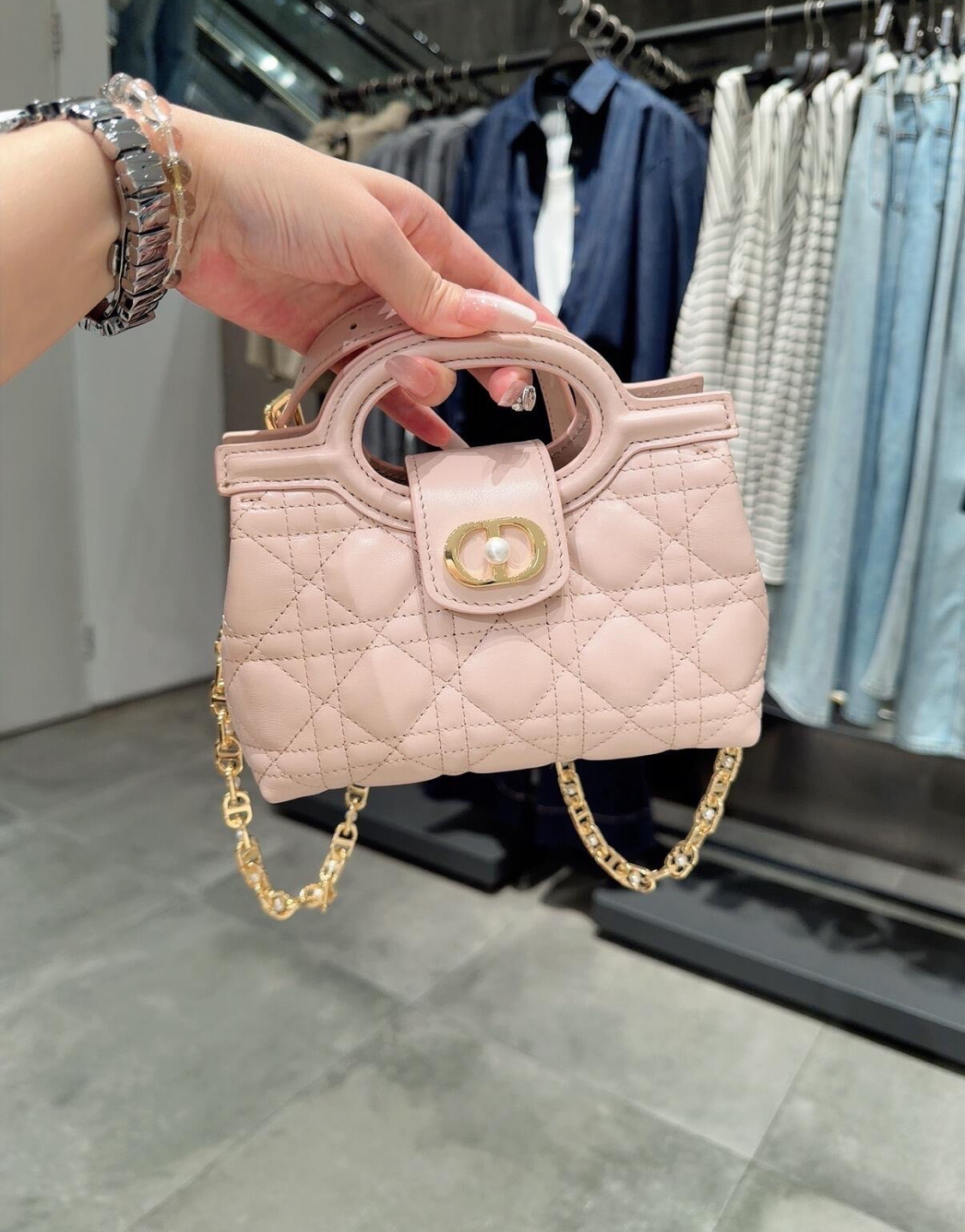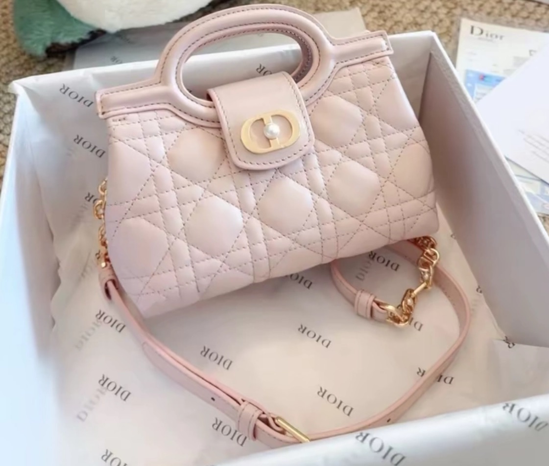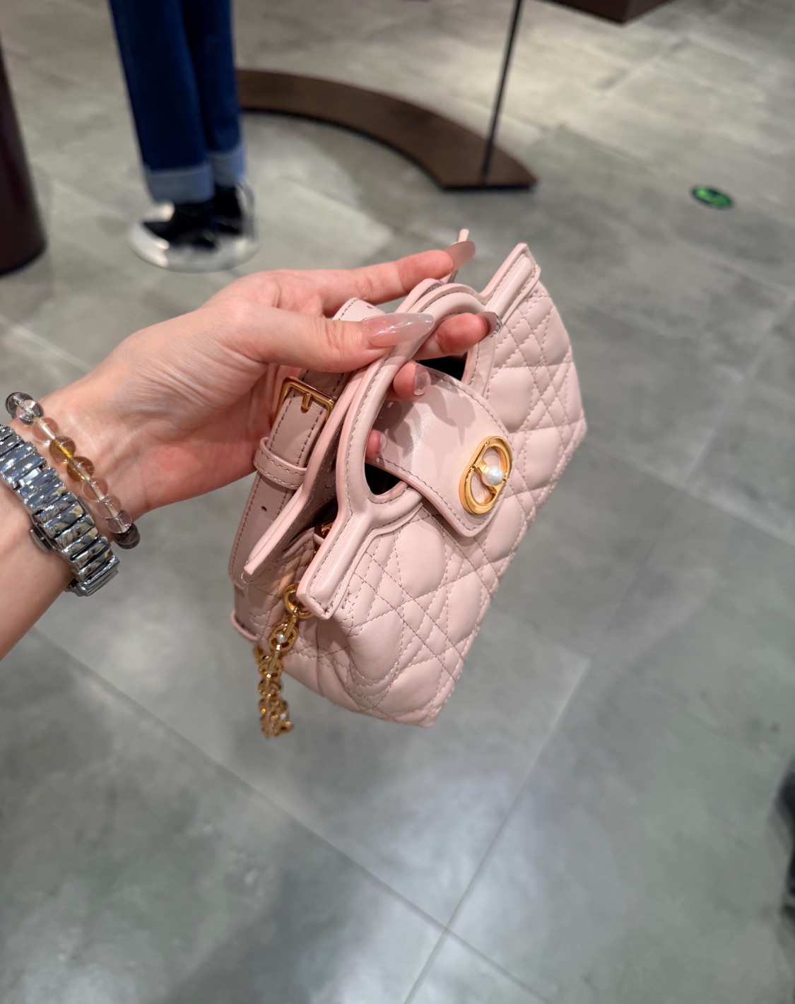 DIOR Jolie Top Handle CD clasp resin bead crossbody handbag mini for women, carmine pink