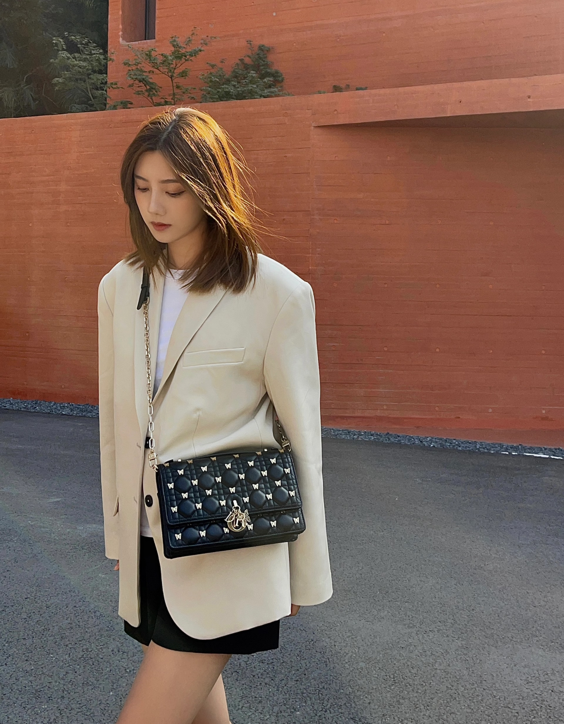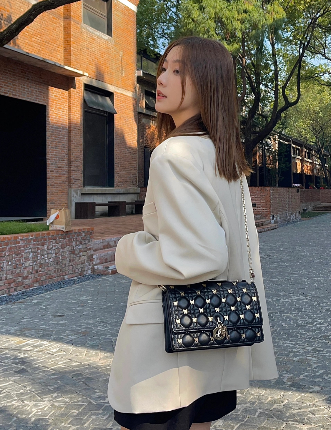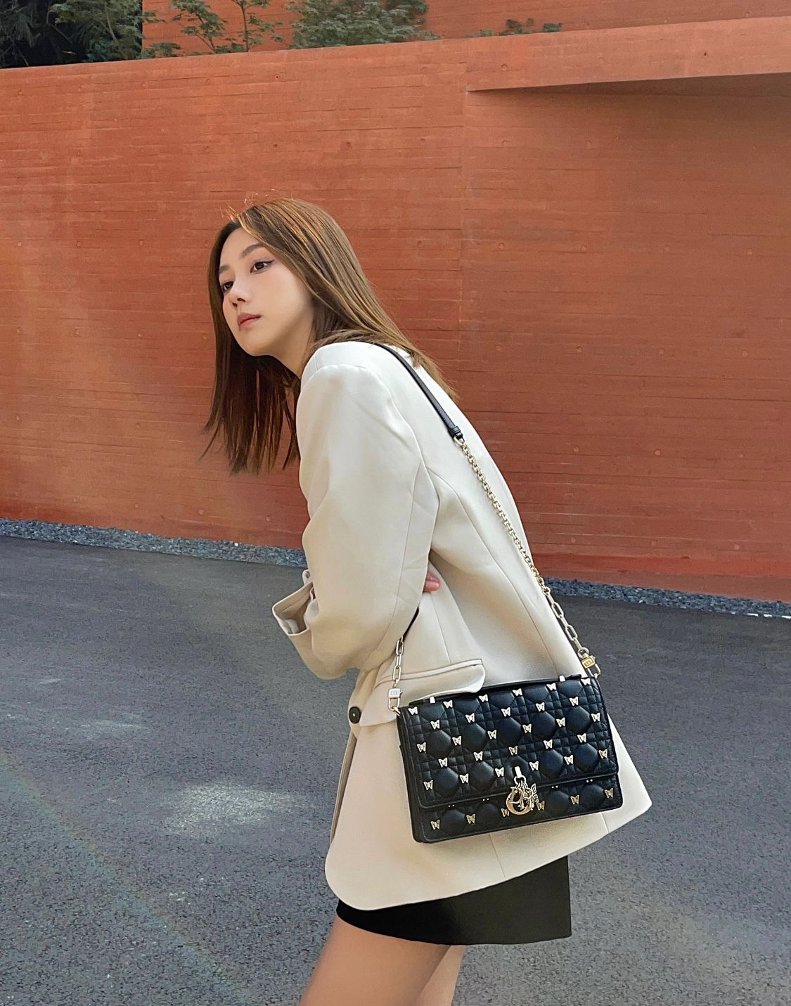 DIOR Miss Dior lettered pendant, detachable and adjustable shoulder strap, butterfly rivet decoration, single-shoulder crossbody handbag, women\'s black style