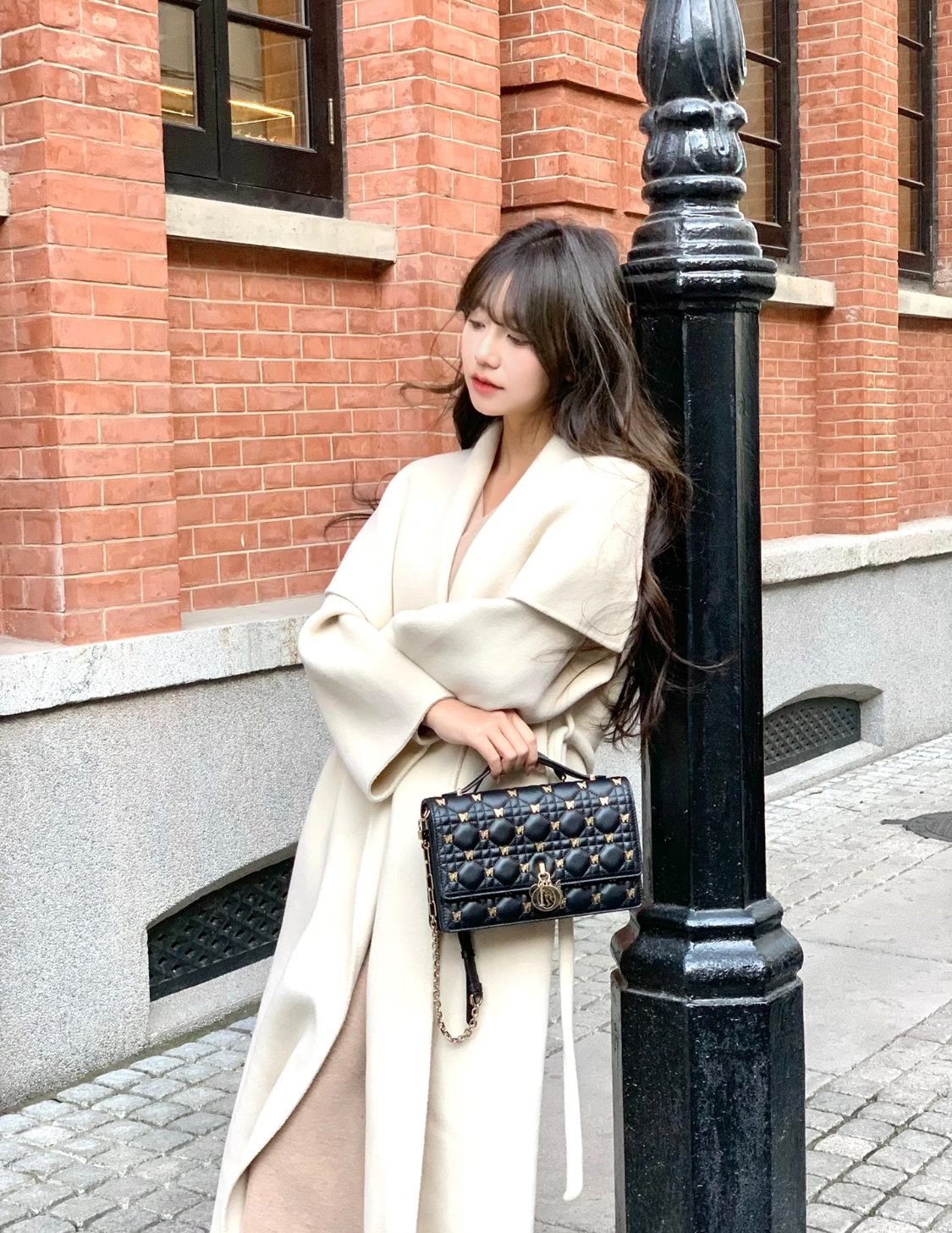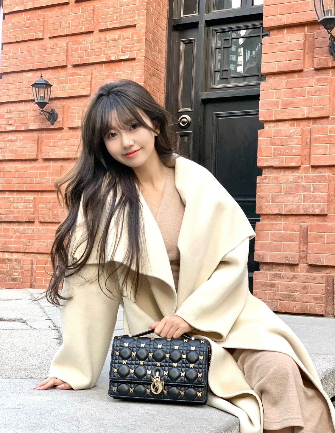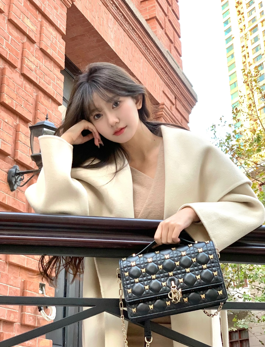 DIOR Miss Dior lettered pendant, detachable and adjustable shoulder strap, butterfly rivet decoration, single-shoulder crossbody handbag, women\'s black style