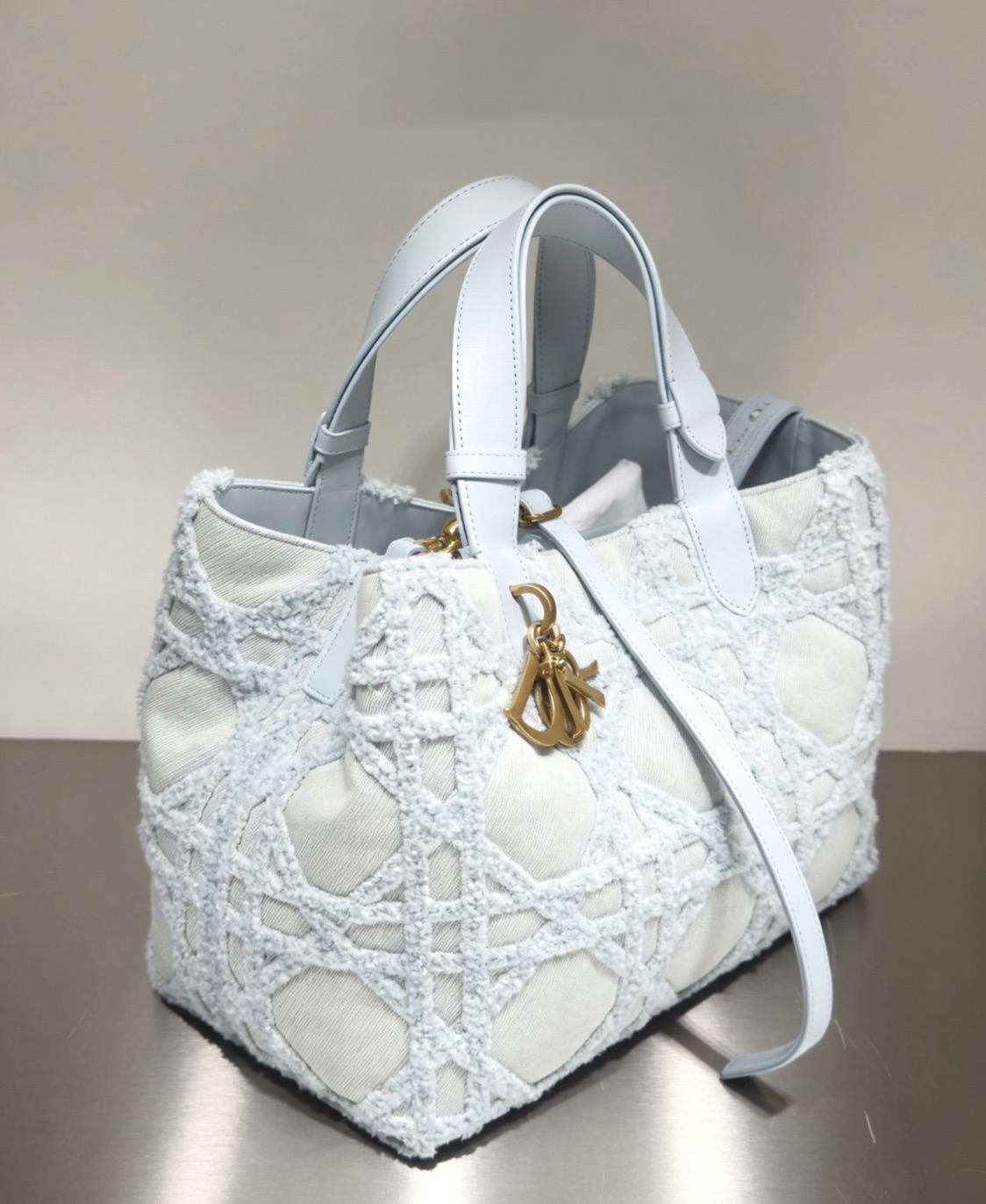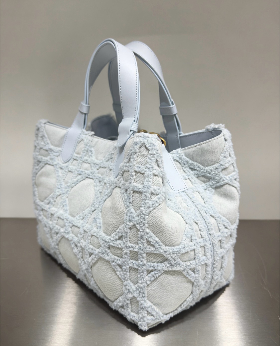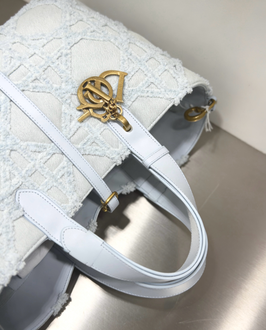 DIOR Toujours three-check rattan embroidery design handbag, medium-sized for women in blue