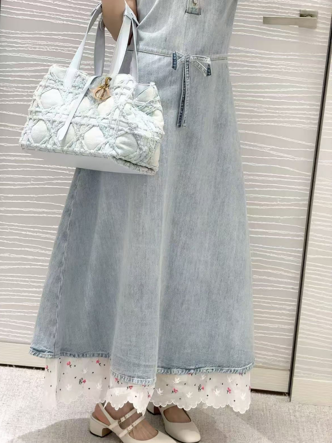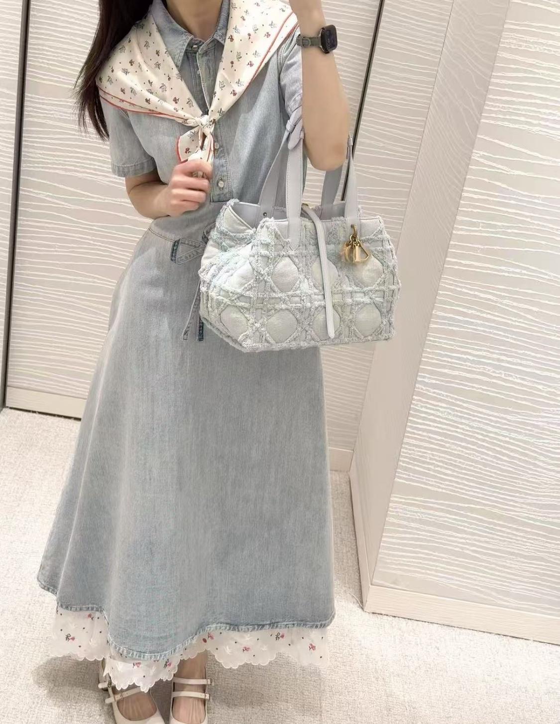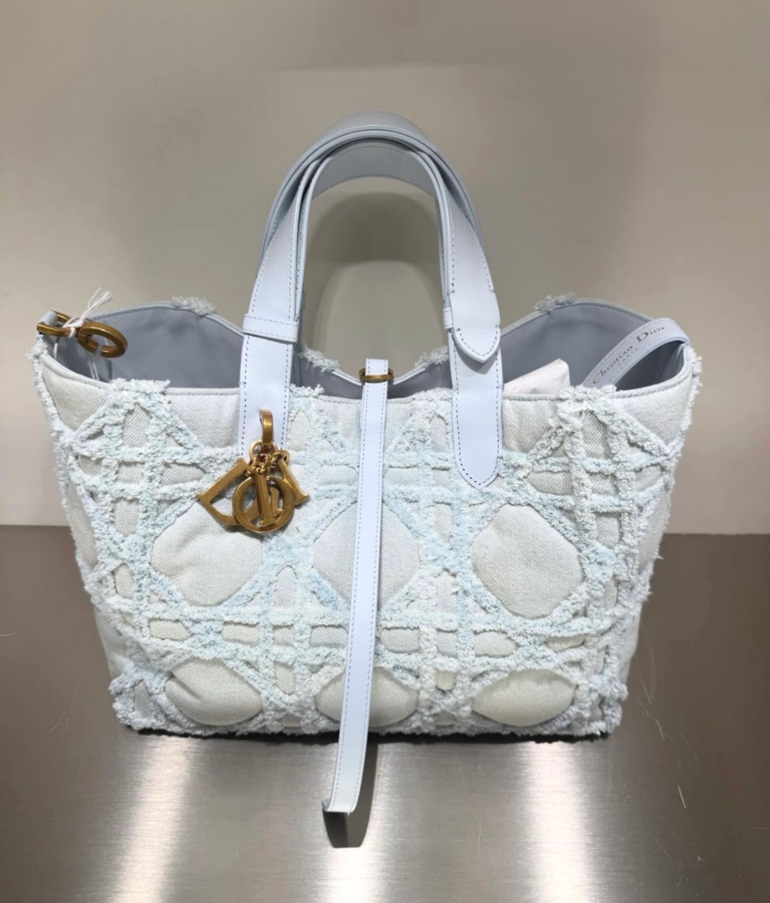 DIOR Toujours three-check rattan embroidery design handbag, medium-sized for women in blue
