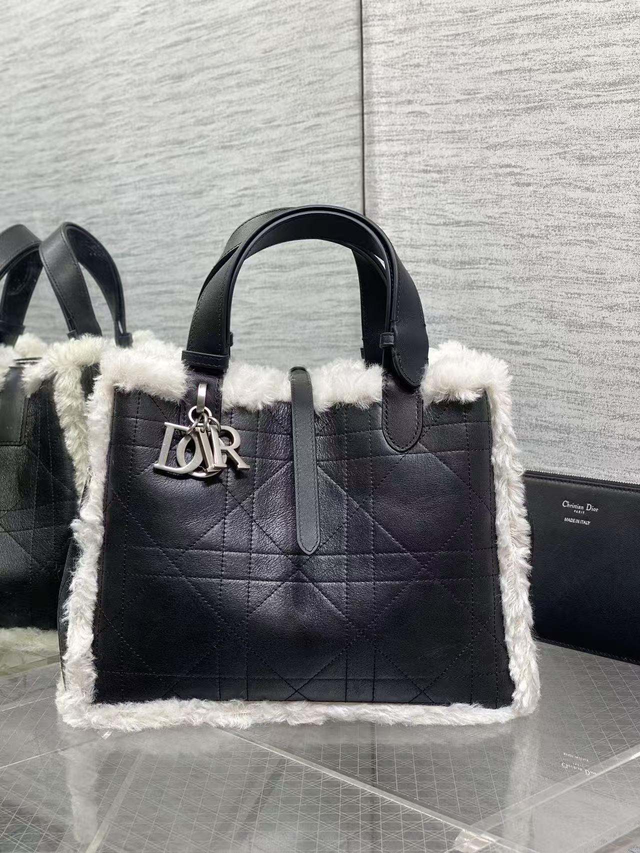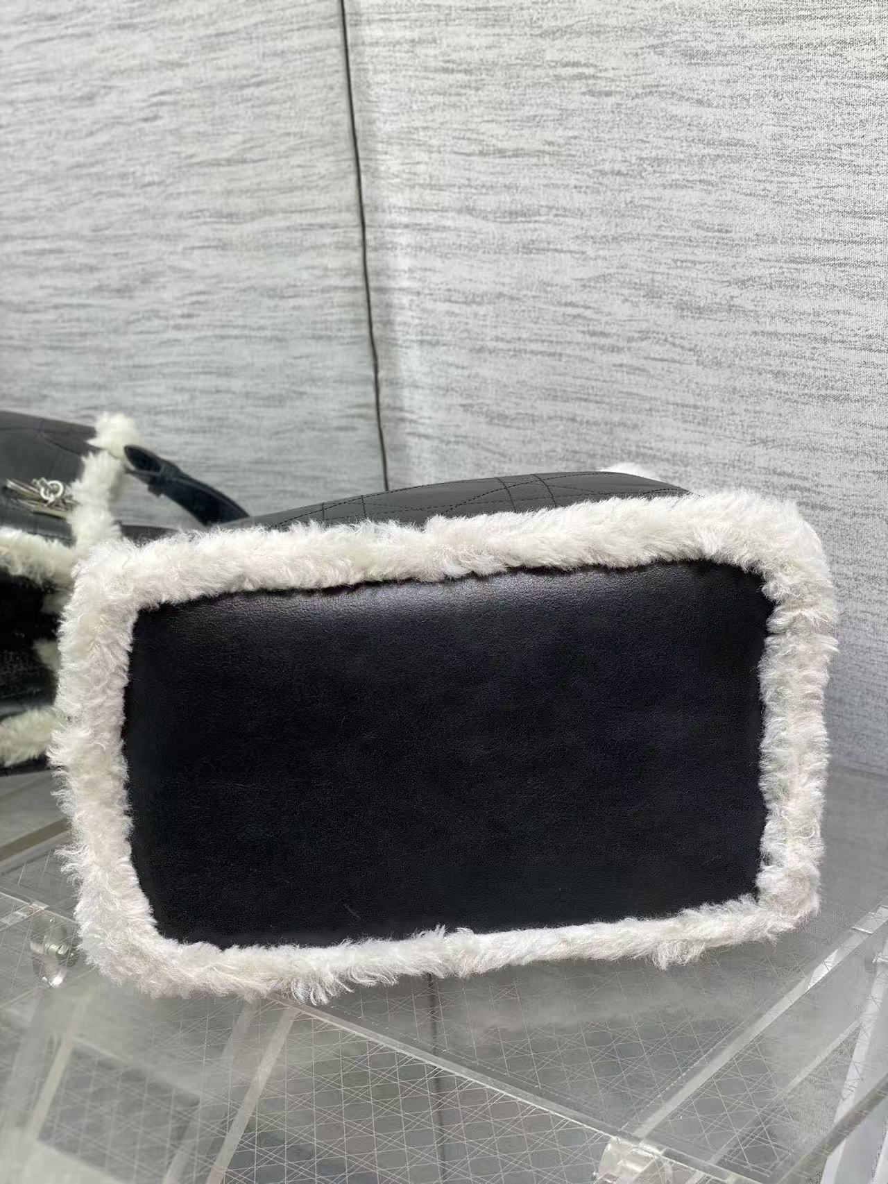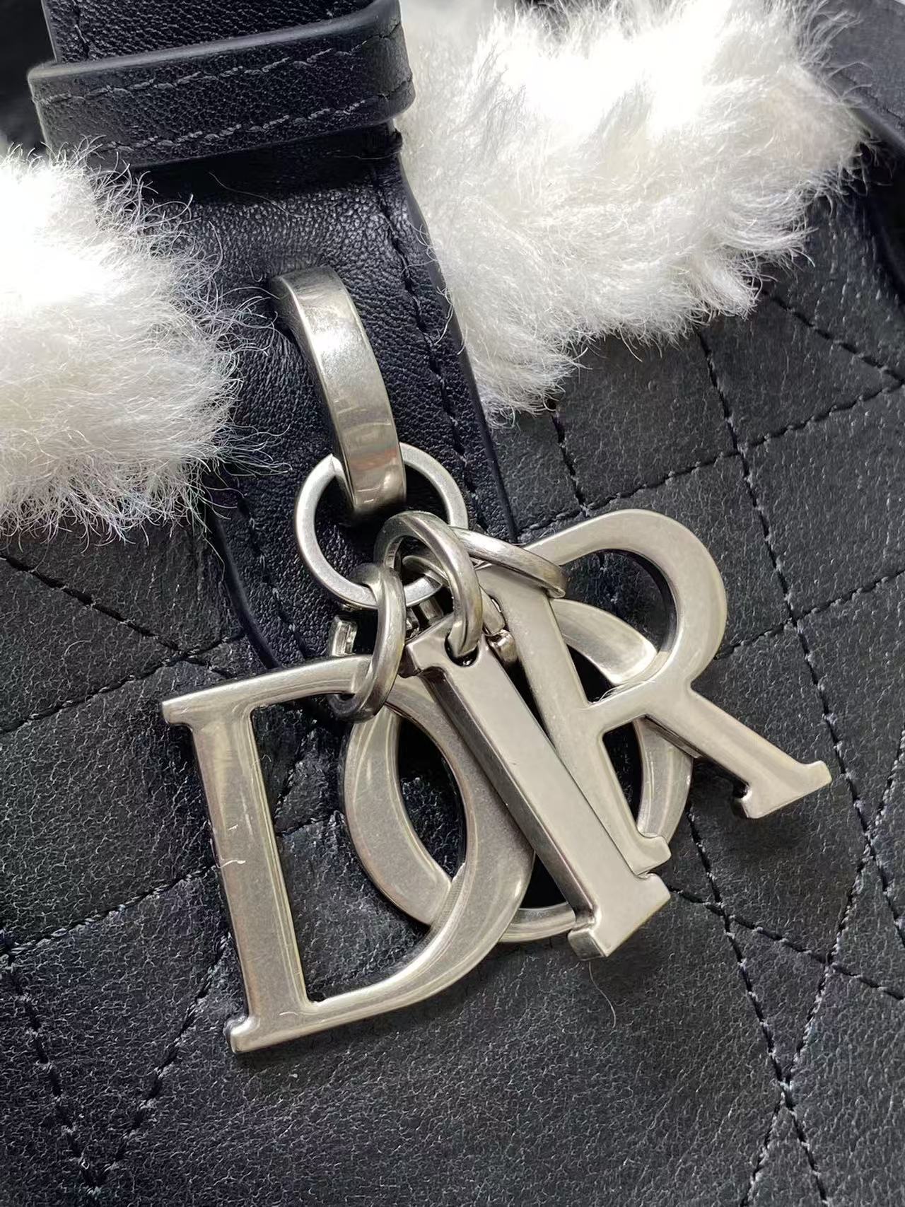 DIOR ToujoursDioralps Macrocannage stitched metal pendant single-shoulder handbag, medium size for women, anthracite grey