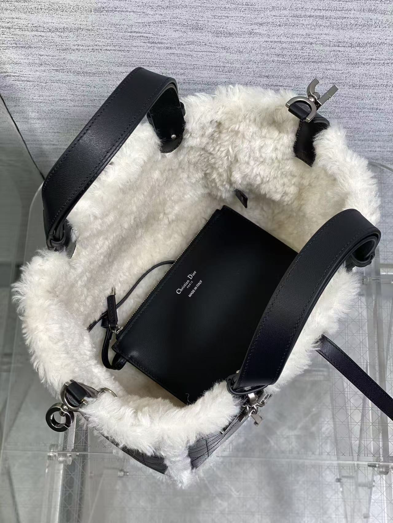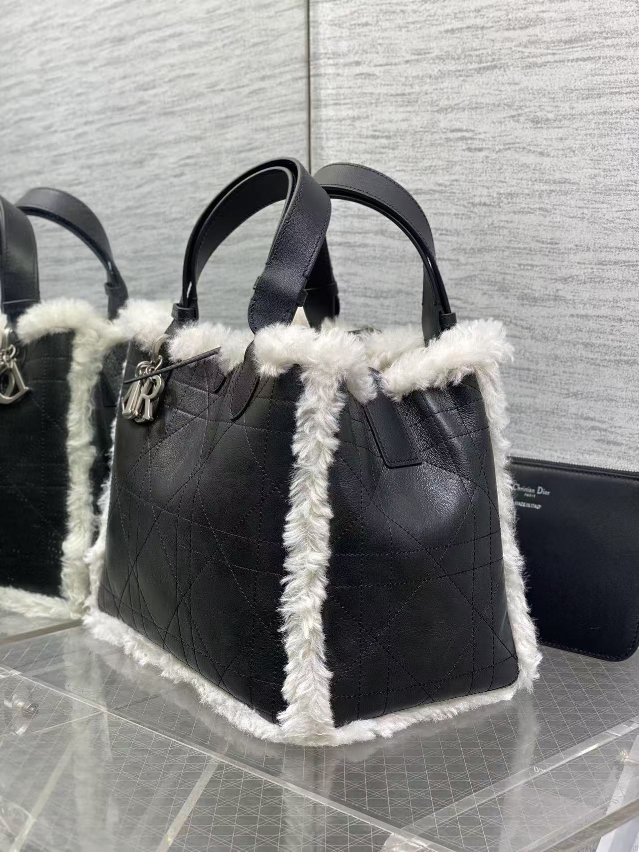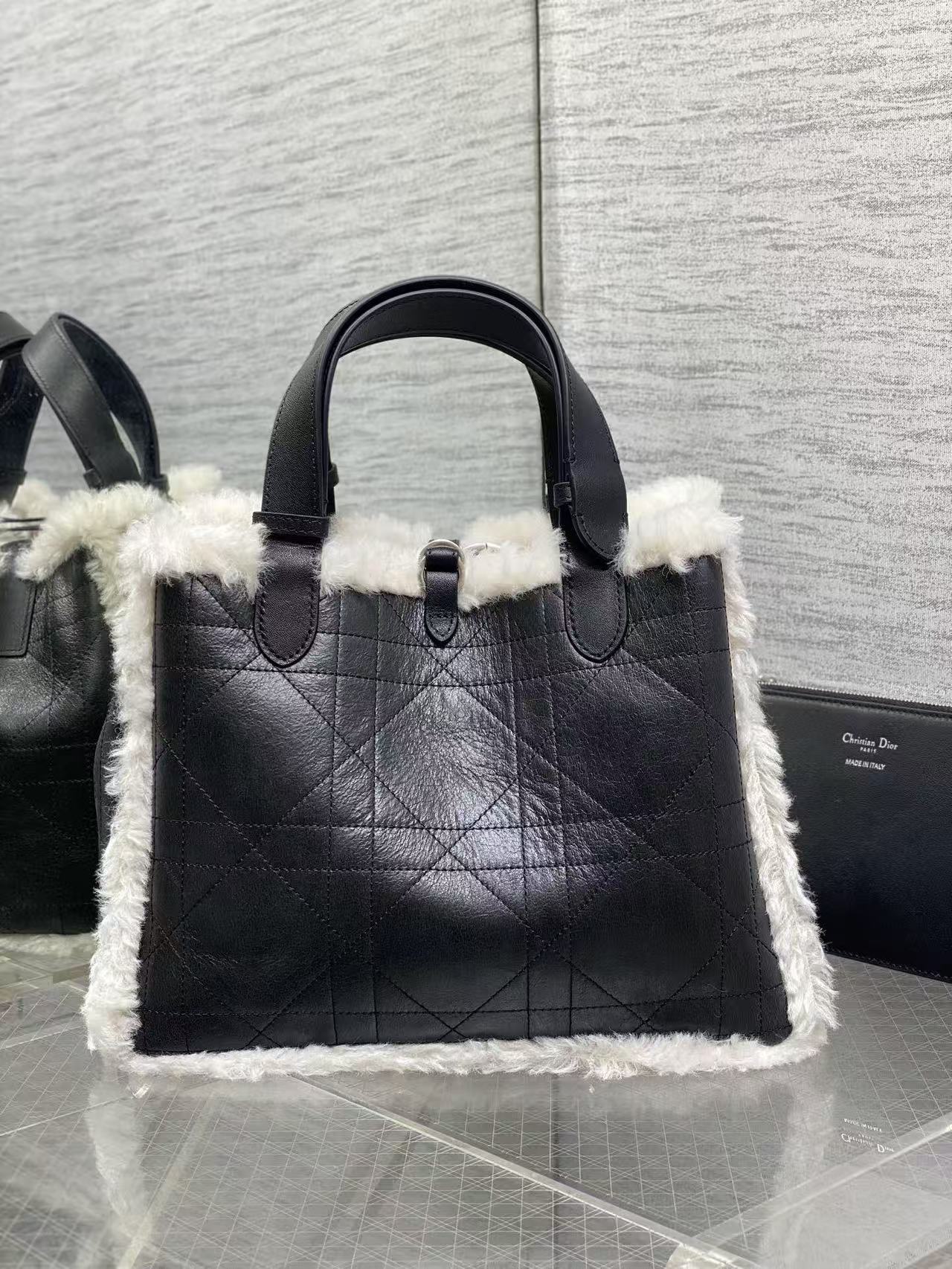 DIOR ToujoursDioralps Macrocannage stitched metal pendant single-shoulder handbag, medium size for women, anthracite grey