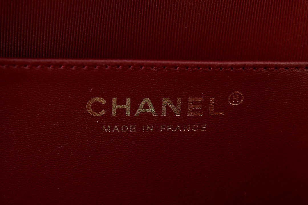 CHANEL Classic Flap CF chain leather interlocking diamond grainy calfskin crossbody shoulder bag medium size apricot color