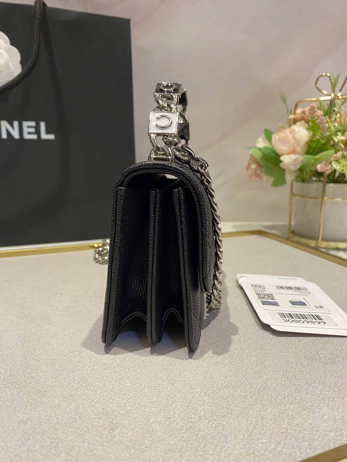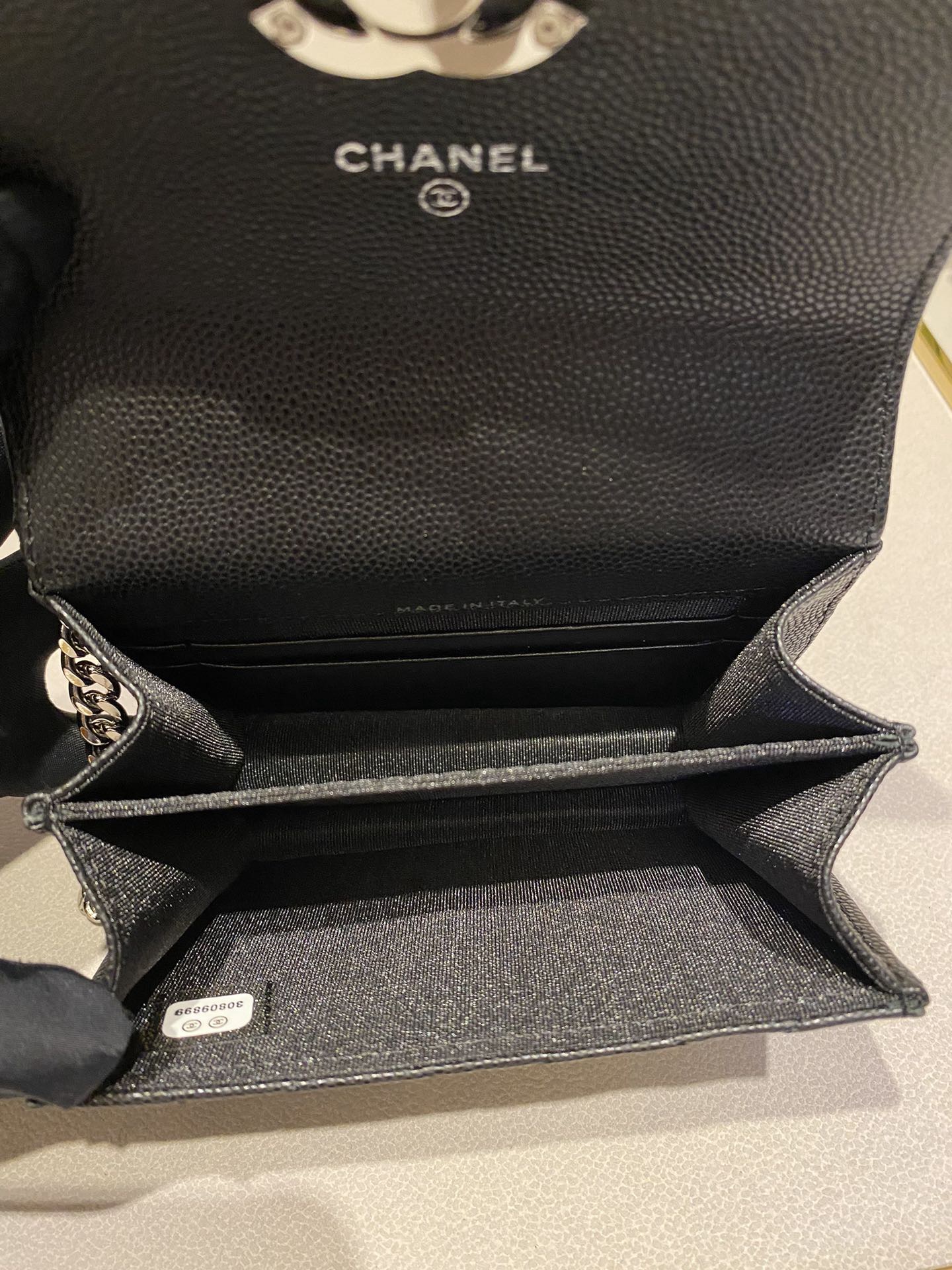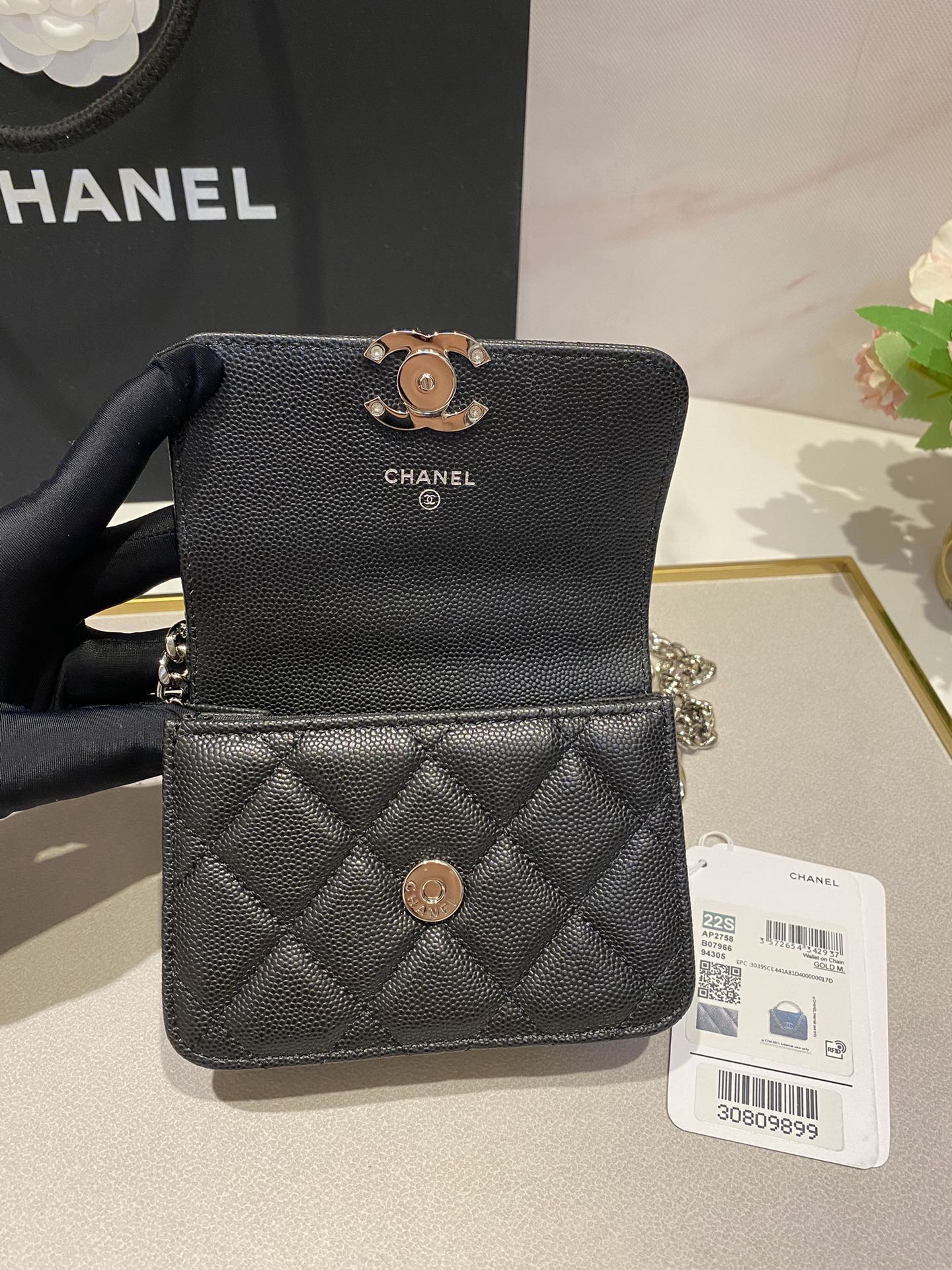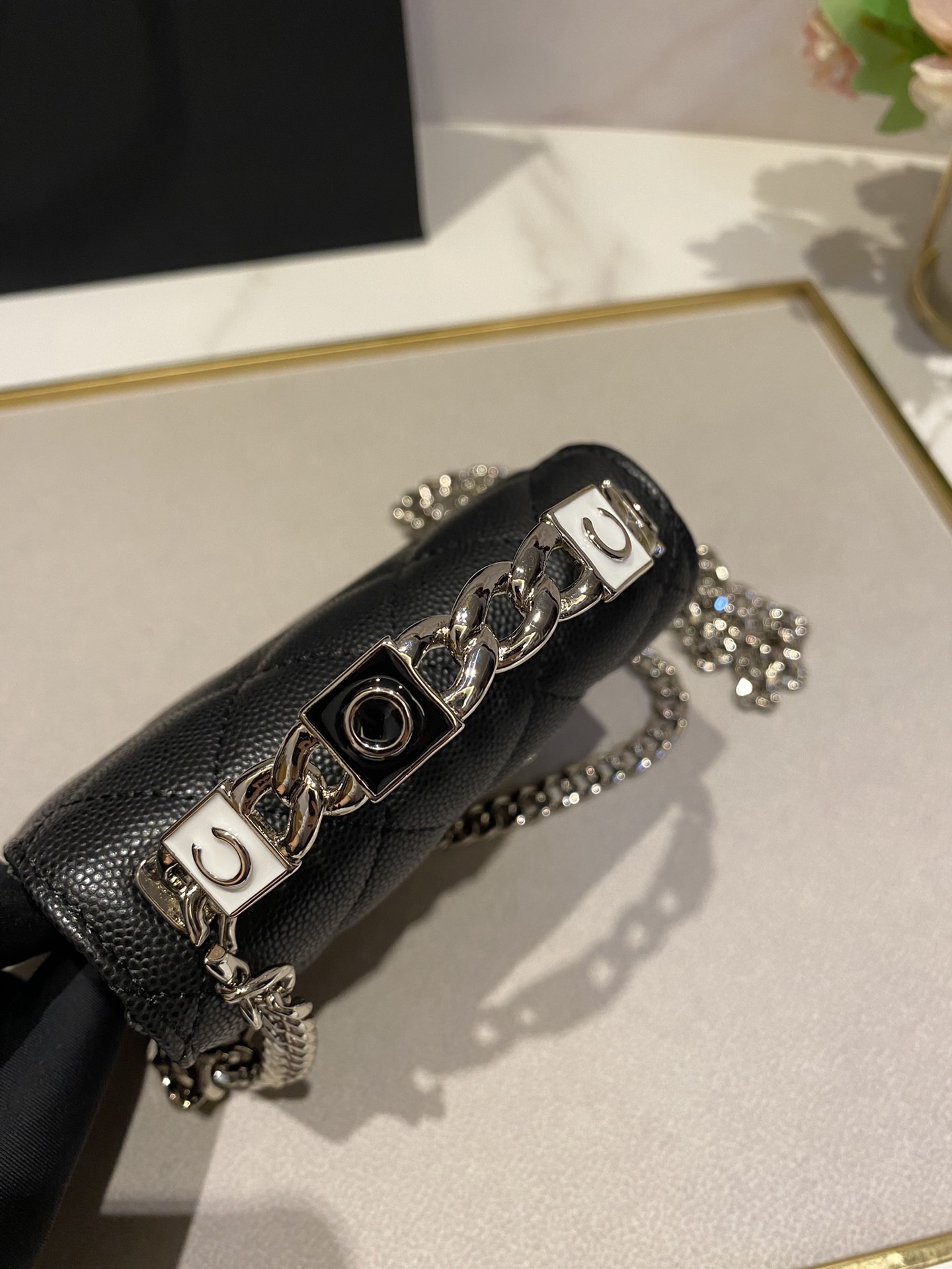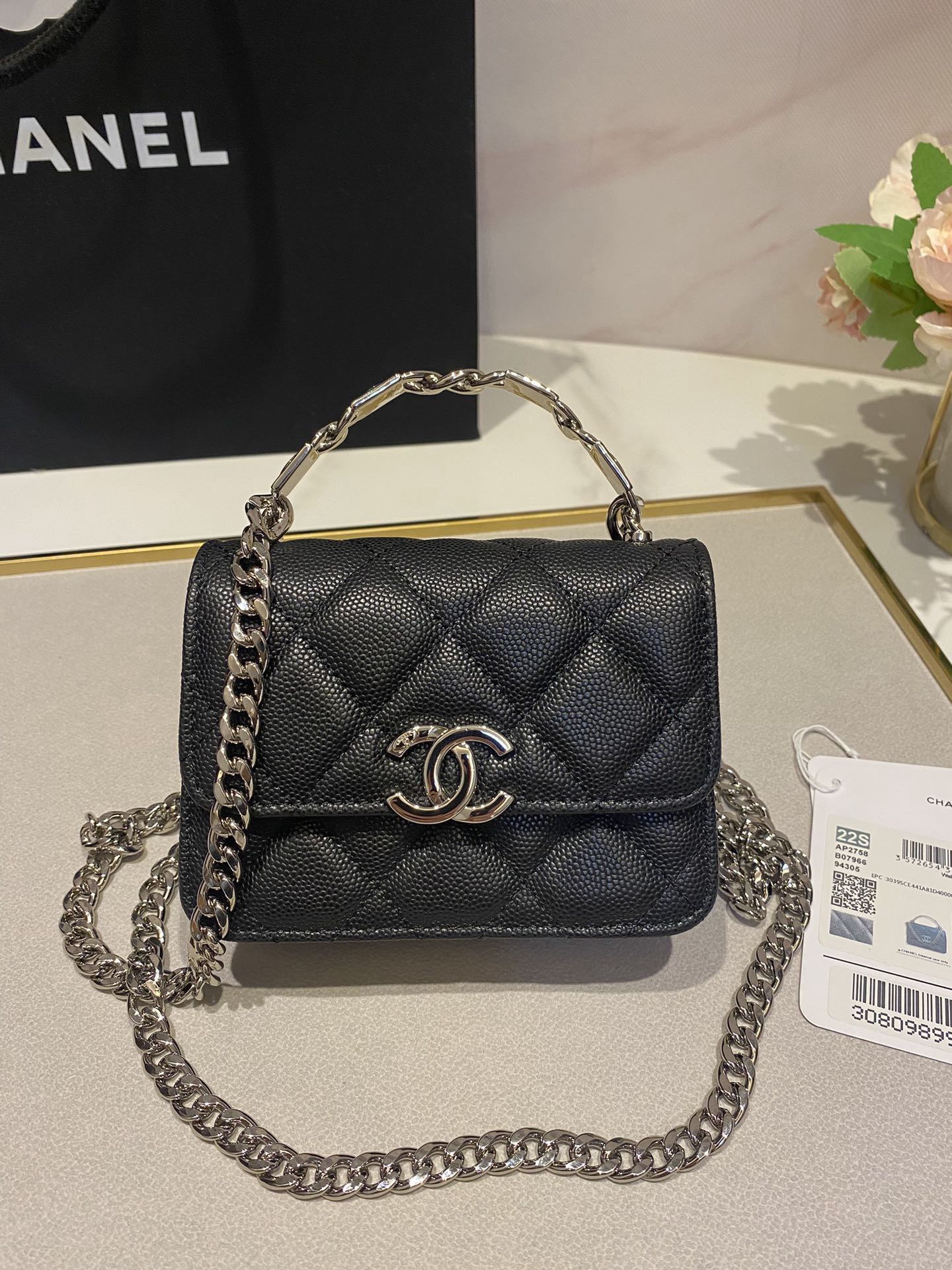 CHANEL 22SS Spring/Summer collection Enamel handle flip cover silver buckle diamond-shaped single-shoulder crossbody handbag mini black