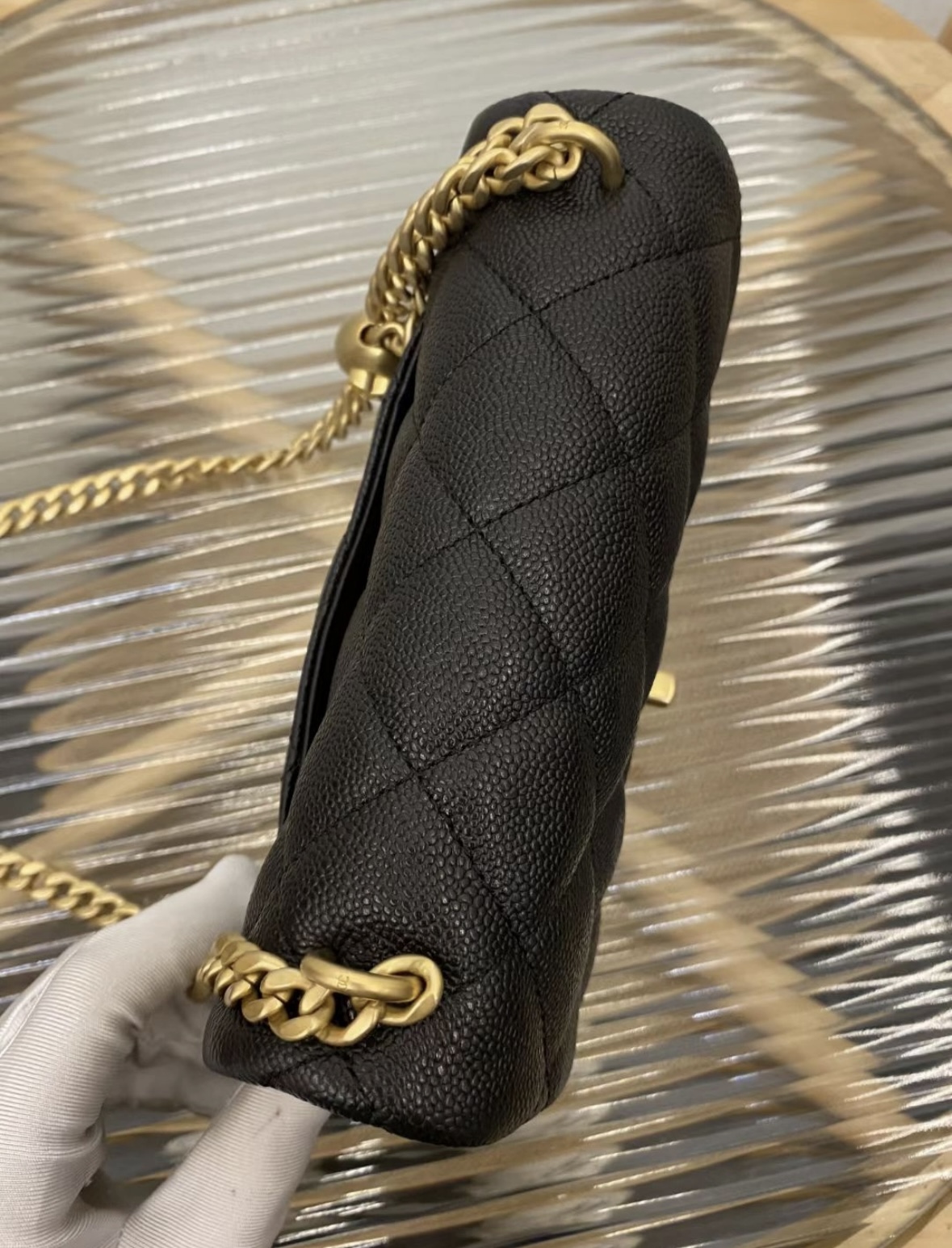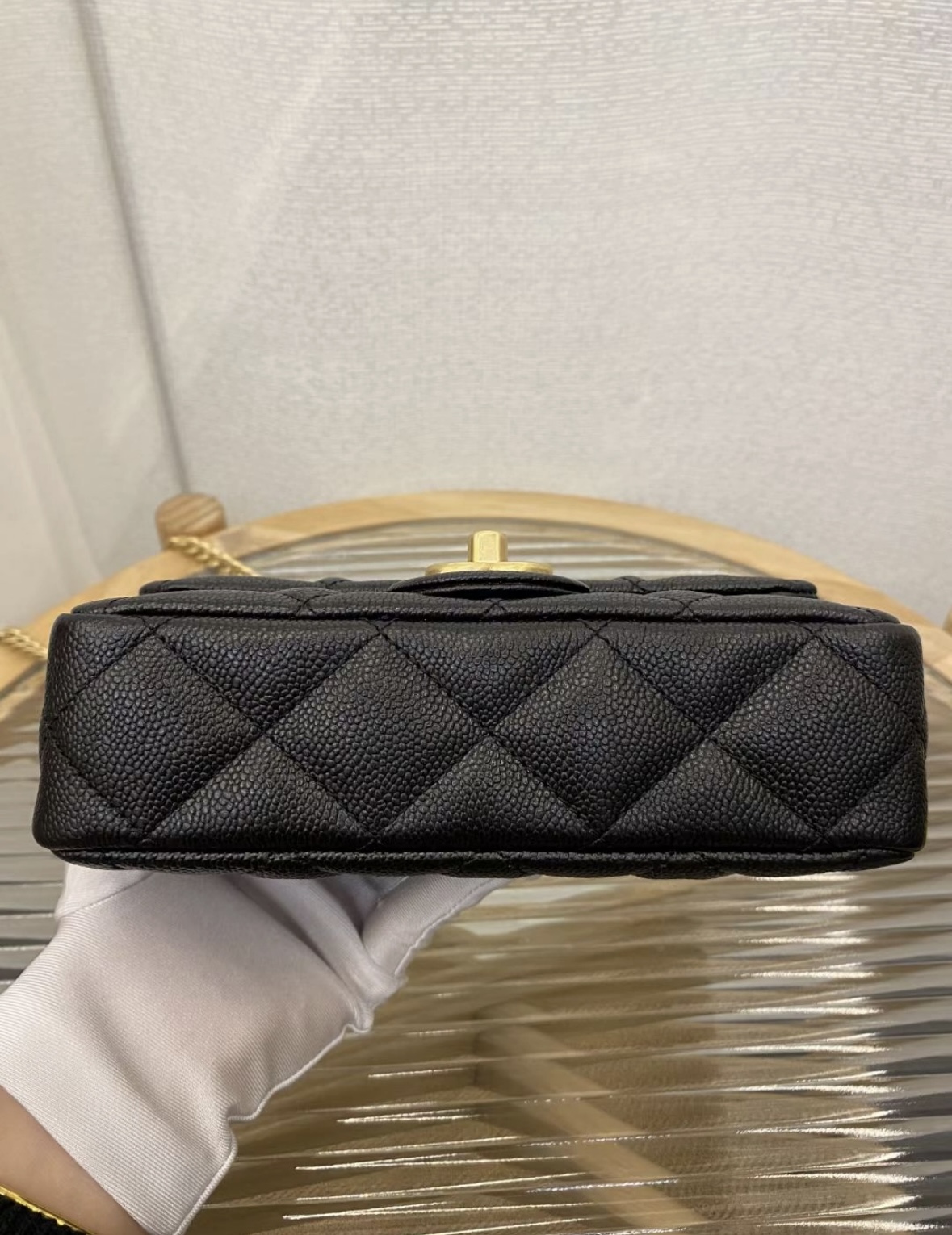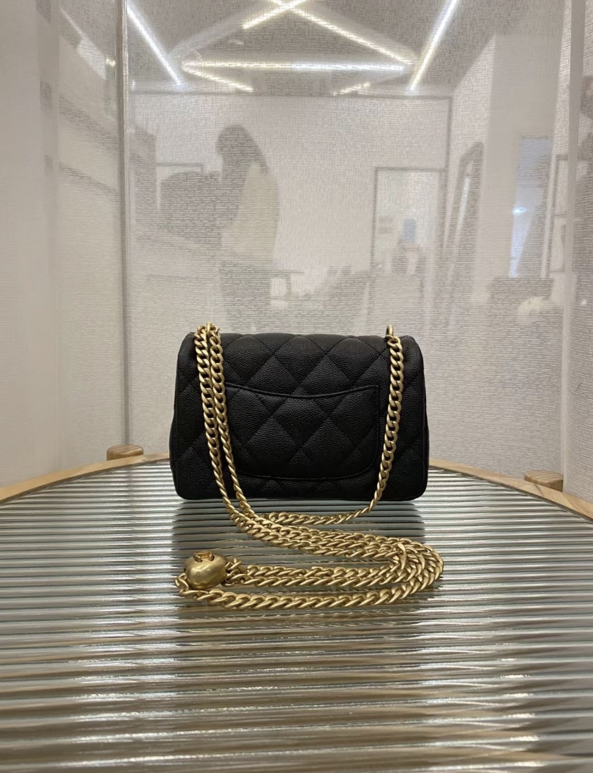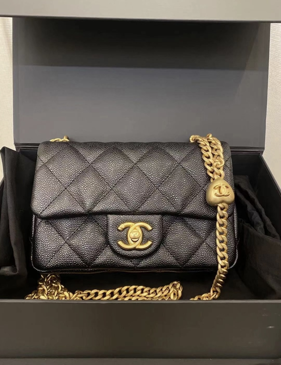 CHANEL 23P Spring/Summer heart-shaped gold ball, gold chain, gold buckle, diamond-patterned grain, embossed cowhide, flap bag, single-shoulder crossbody bag, small size for women, black