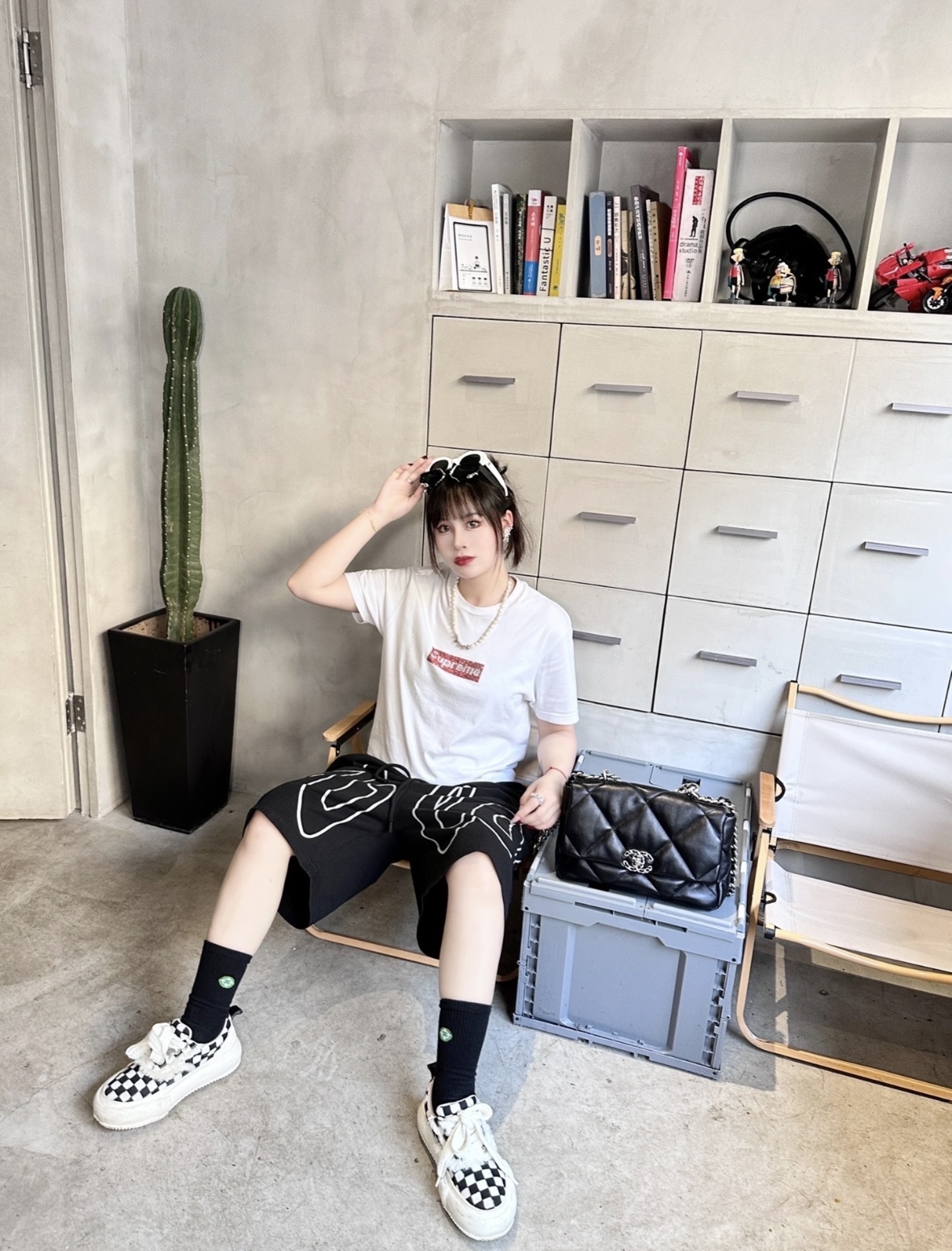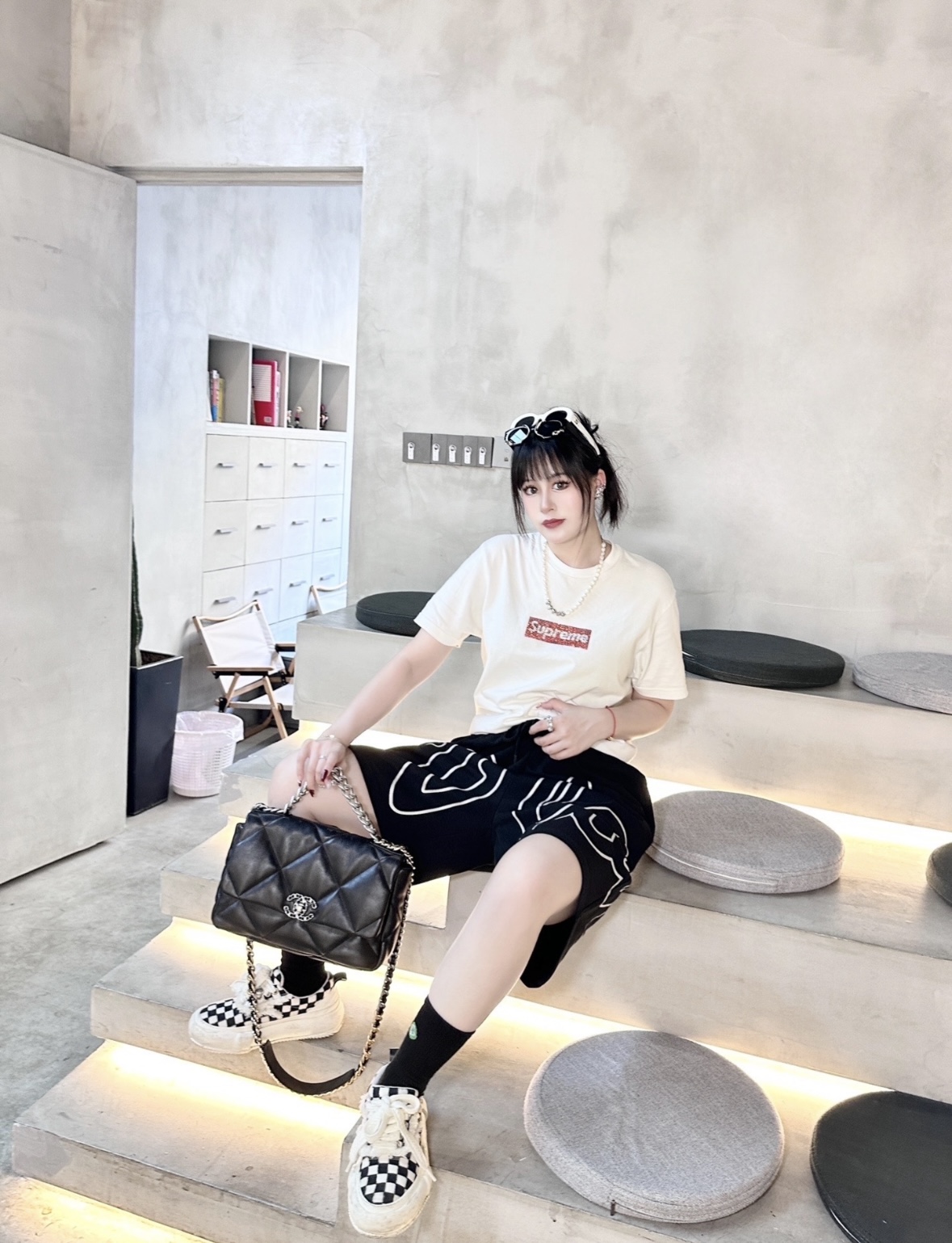 CHANEL 22K Autumn/Winter 19Bag, brand logo chain leather interlocking diamond-patterned calfskin handbag, single-shoulder crossbody bag, medium size for women, black