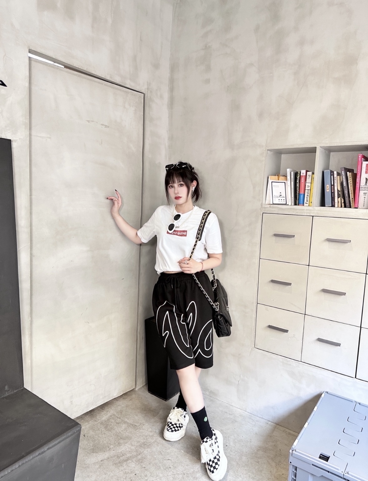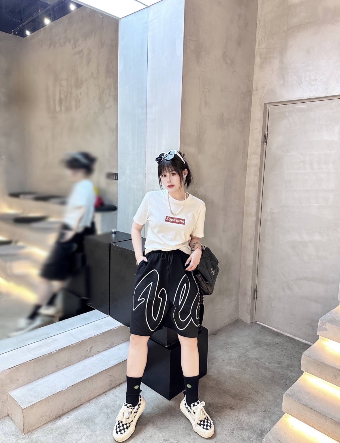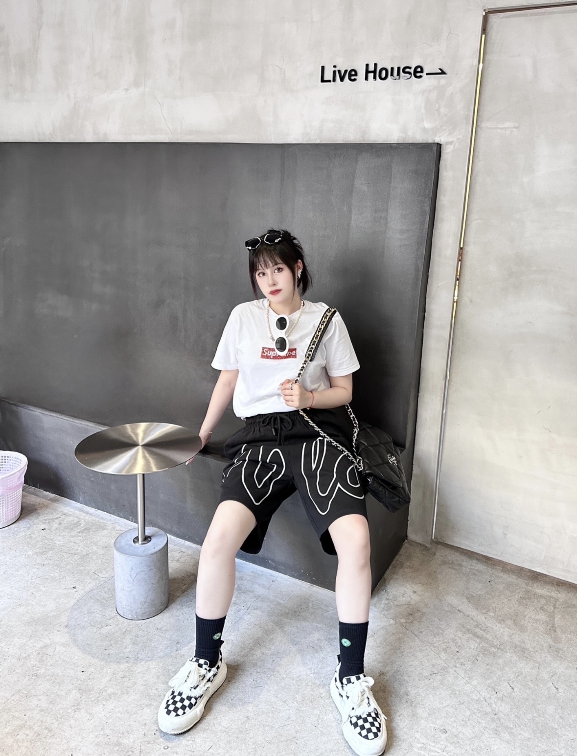 CHANEL Classic Flap CF chain leather interlocking diamond grainy calfskin crossbody shoulder bag medium size apricot color