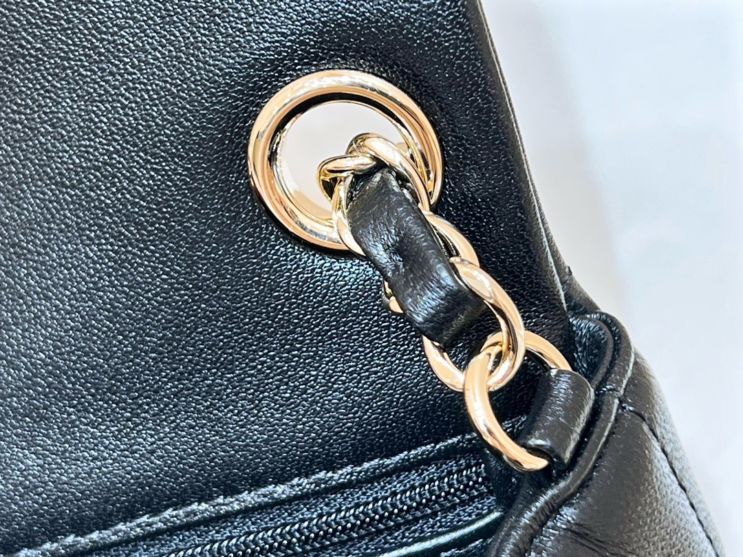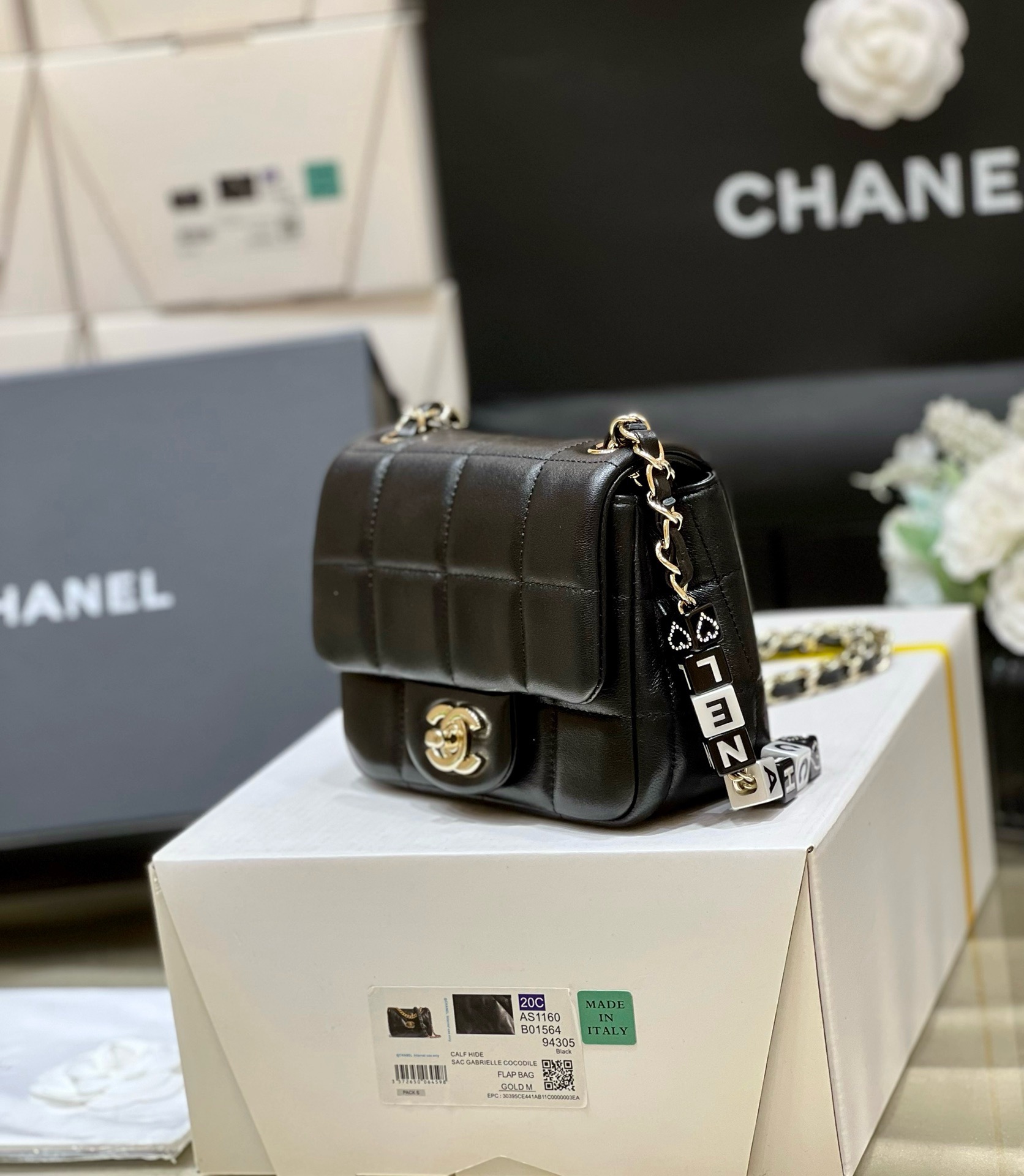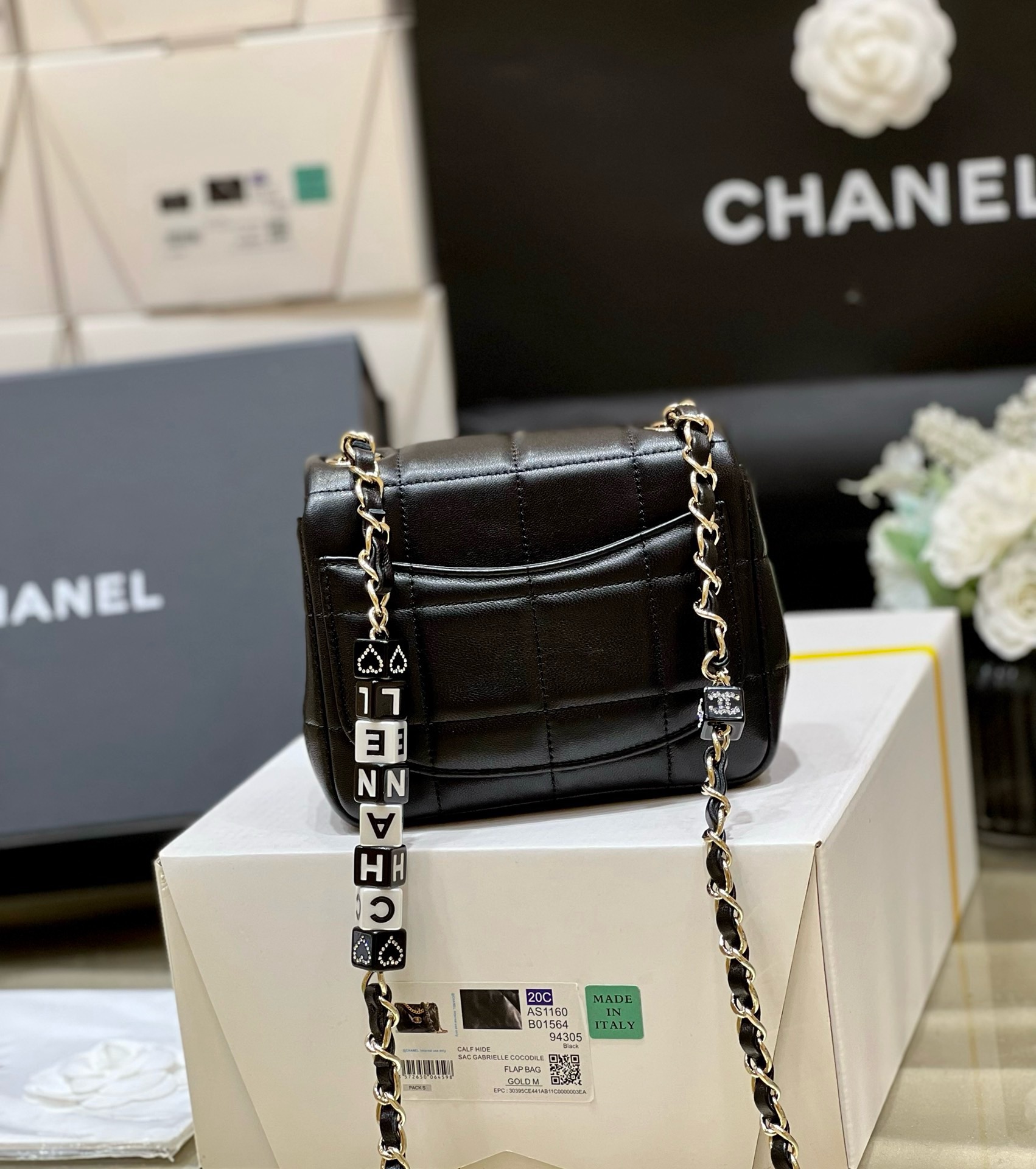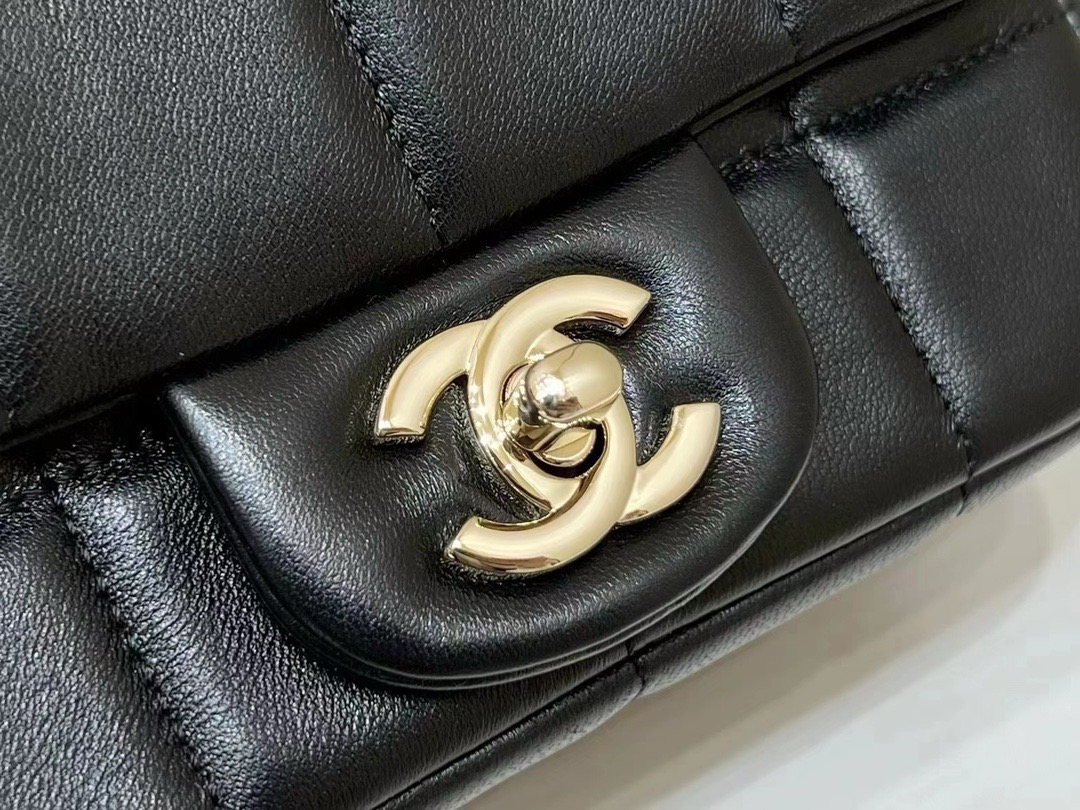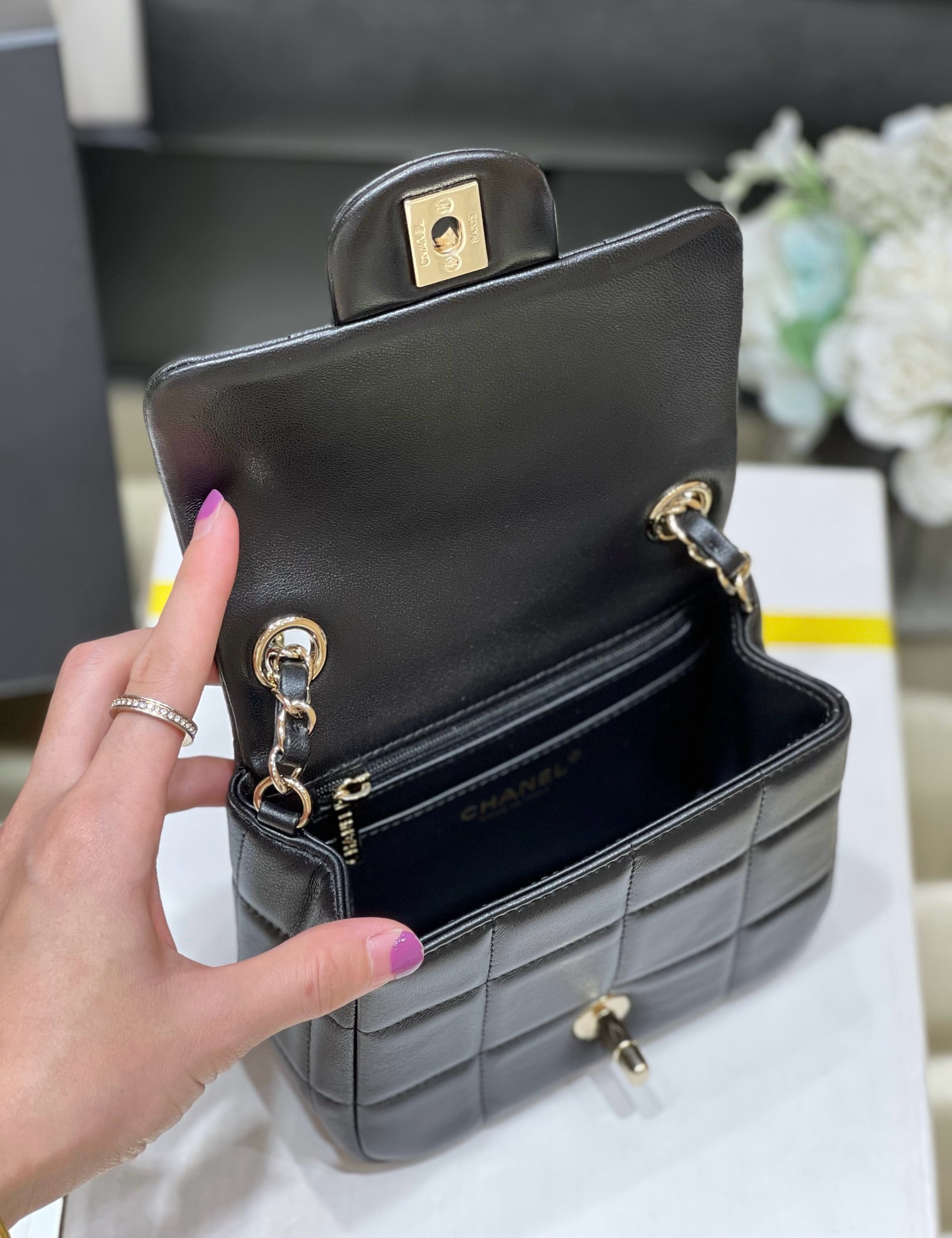 CHANEL 23C Early Spring Gold buckle resin black and white square chain shoulder strap leather chain-through lambskin lid bag crossbody single-shoulder bag mini women\'s black style