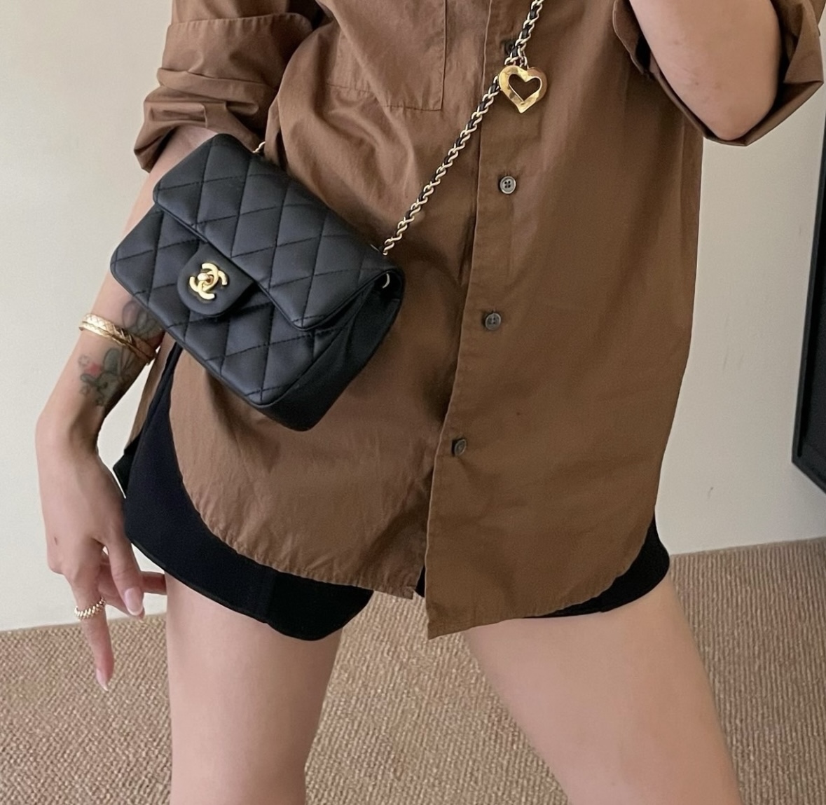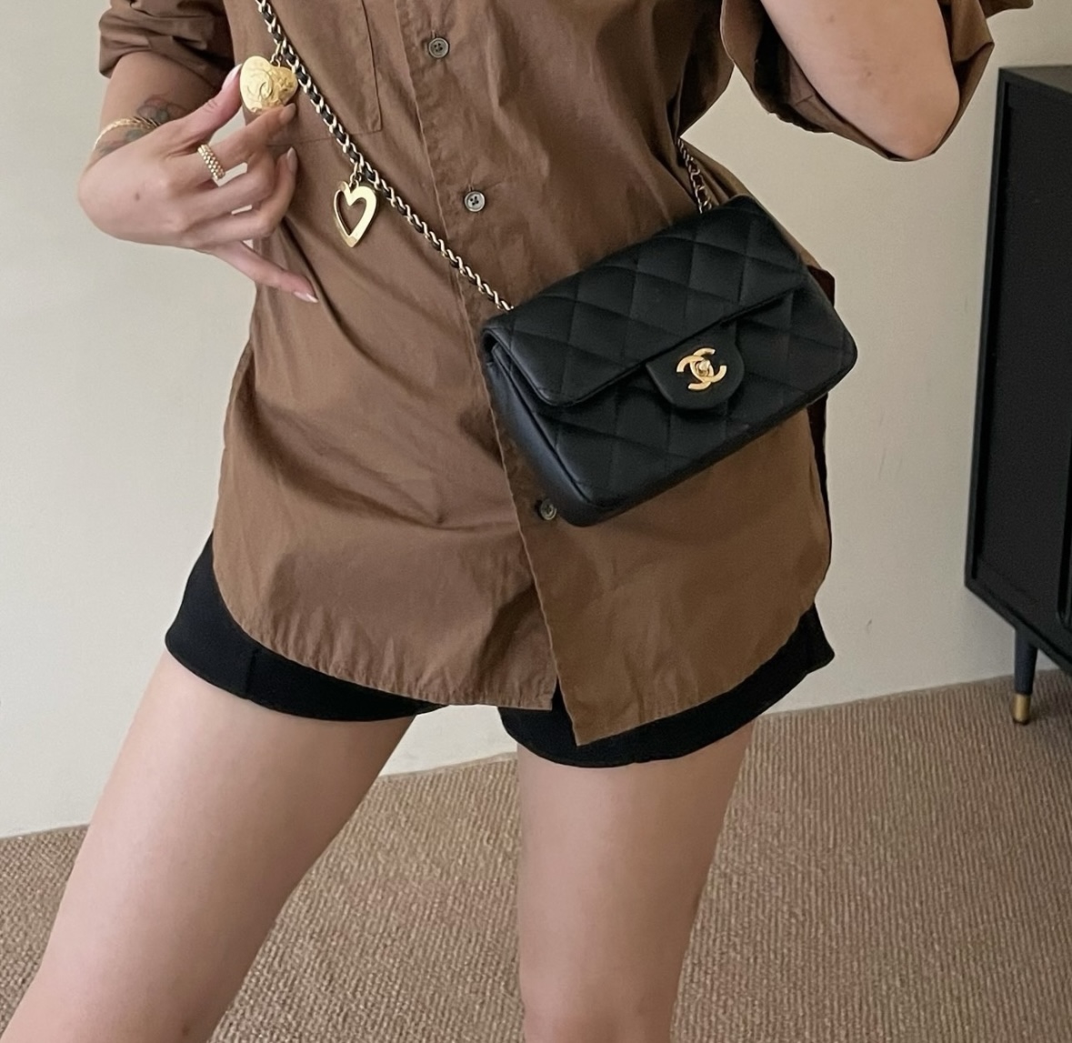 CHANEL Classic Flap CF 22B Heart-shaped pendant chain shoulder strap flap Open Leather Chain diamond-shaped sheepskin crossbody bag mini for women, black