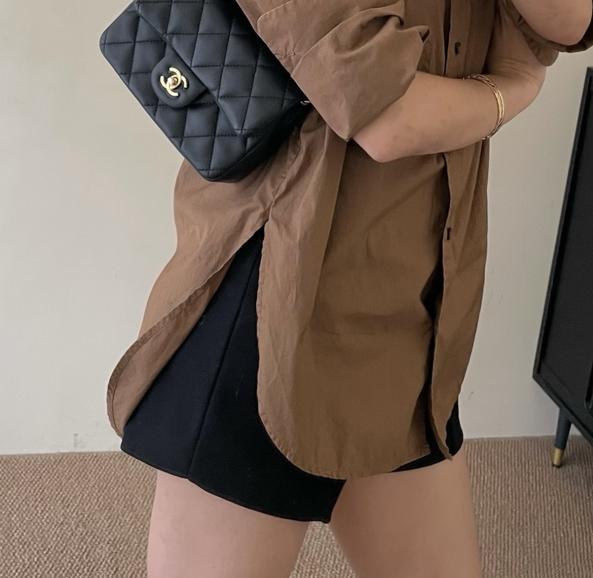 CHANEL Classic Flap CF chain leather interlocking diamond grainy calfskin crossbody shoulder bag medium size apricot color