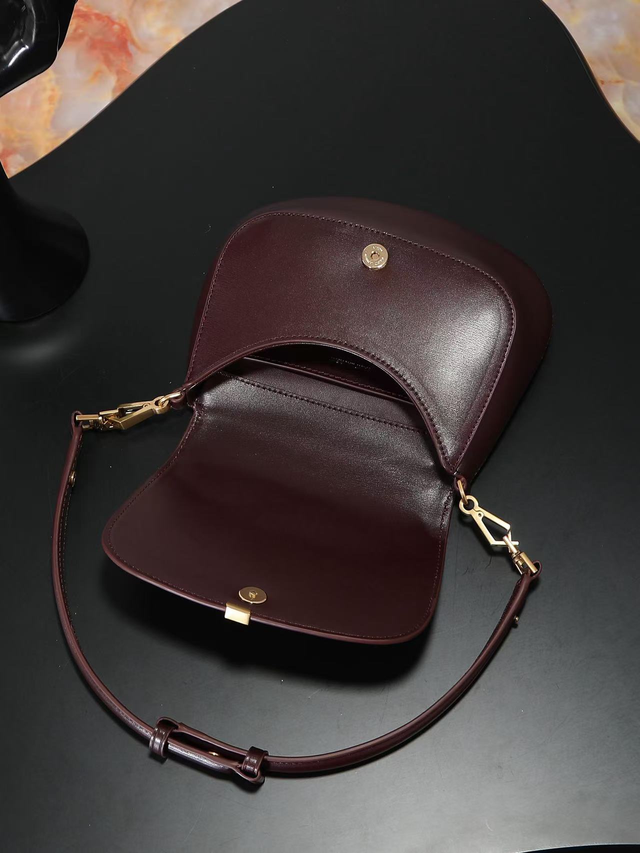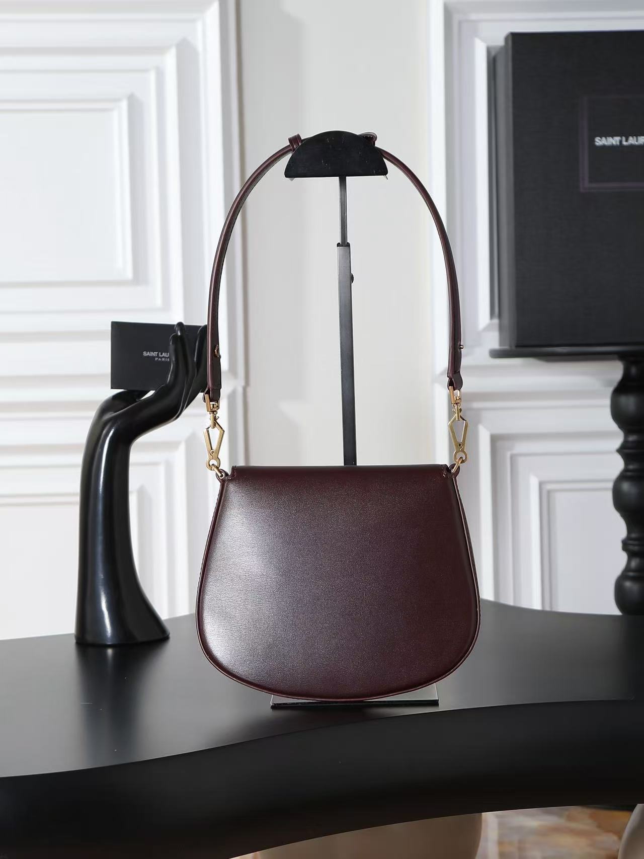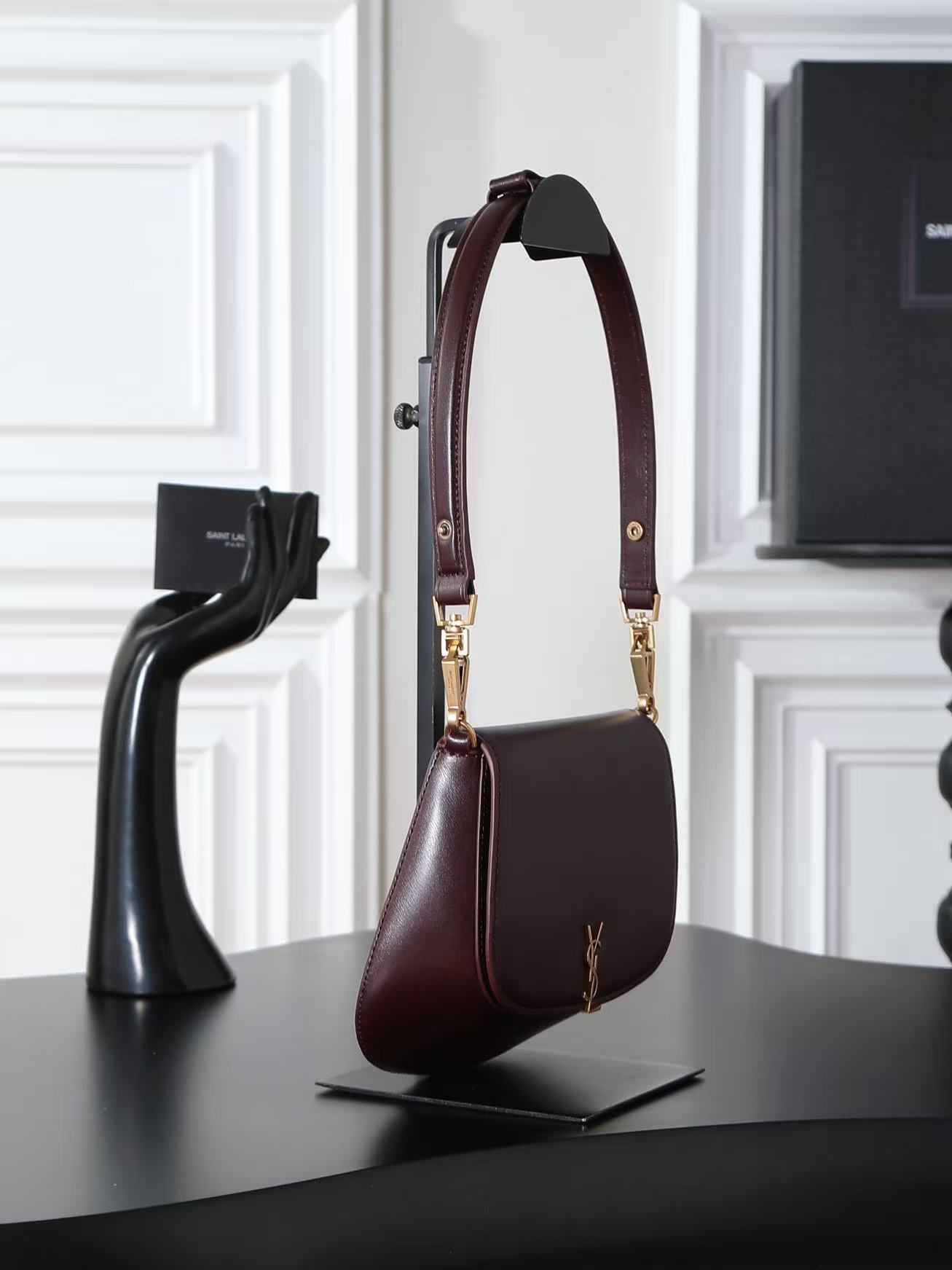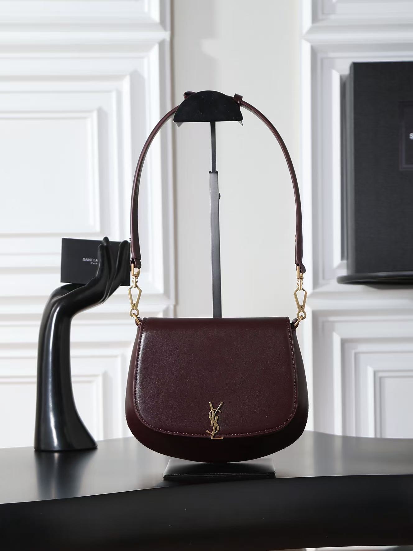 SAINT LAURENT VOLTAIRE BOX brand vintage classic logo single-shoulder handbag for women in Cabernet Sauvignon red