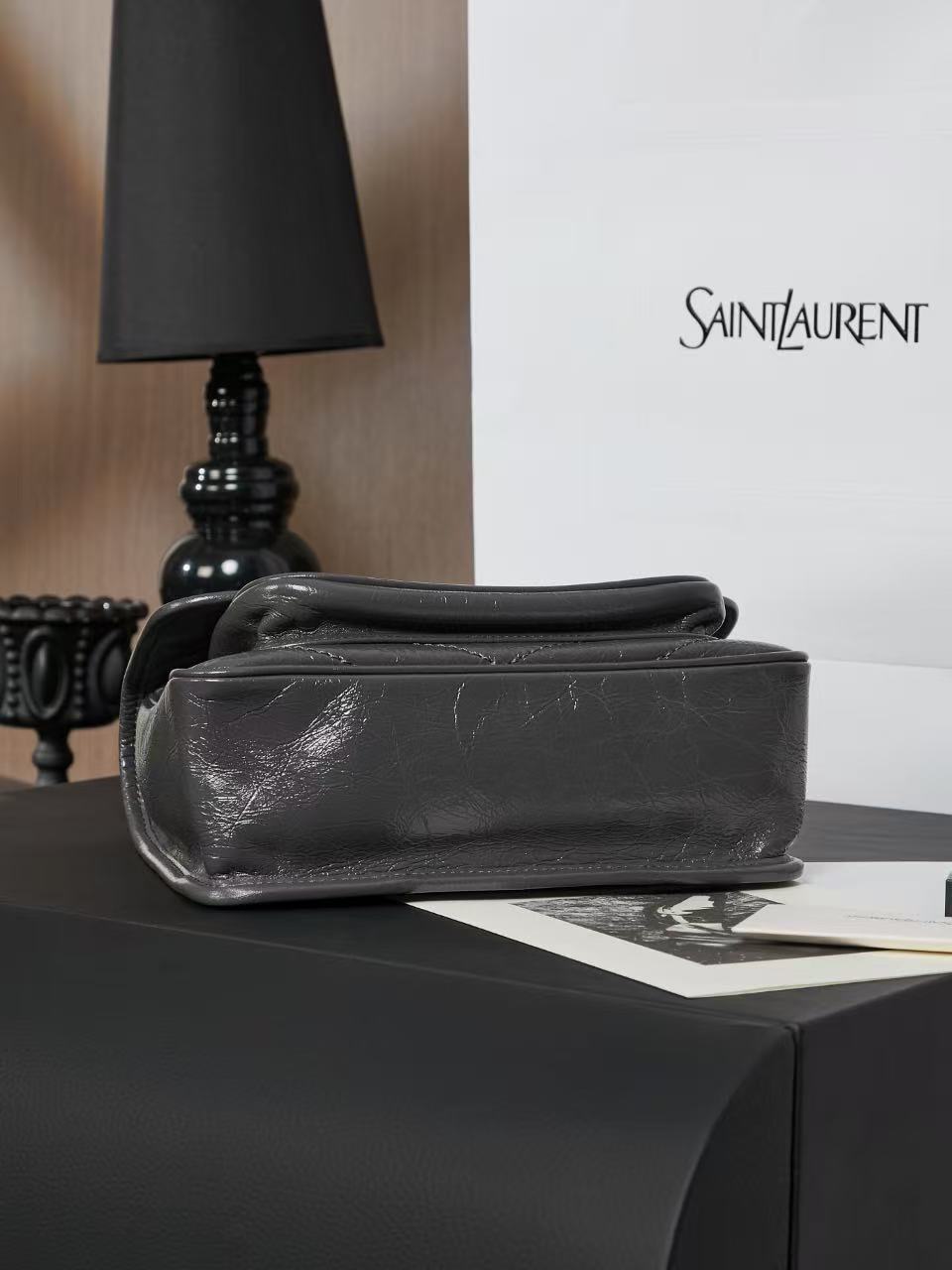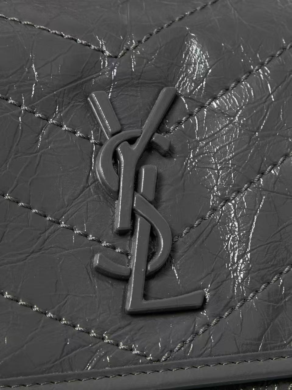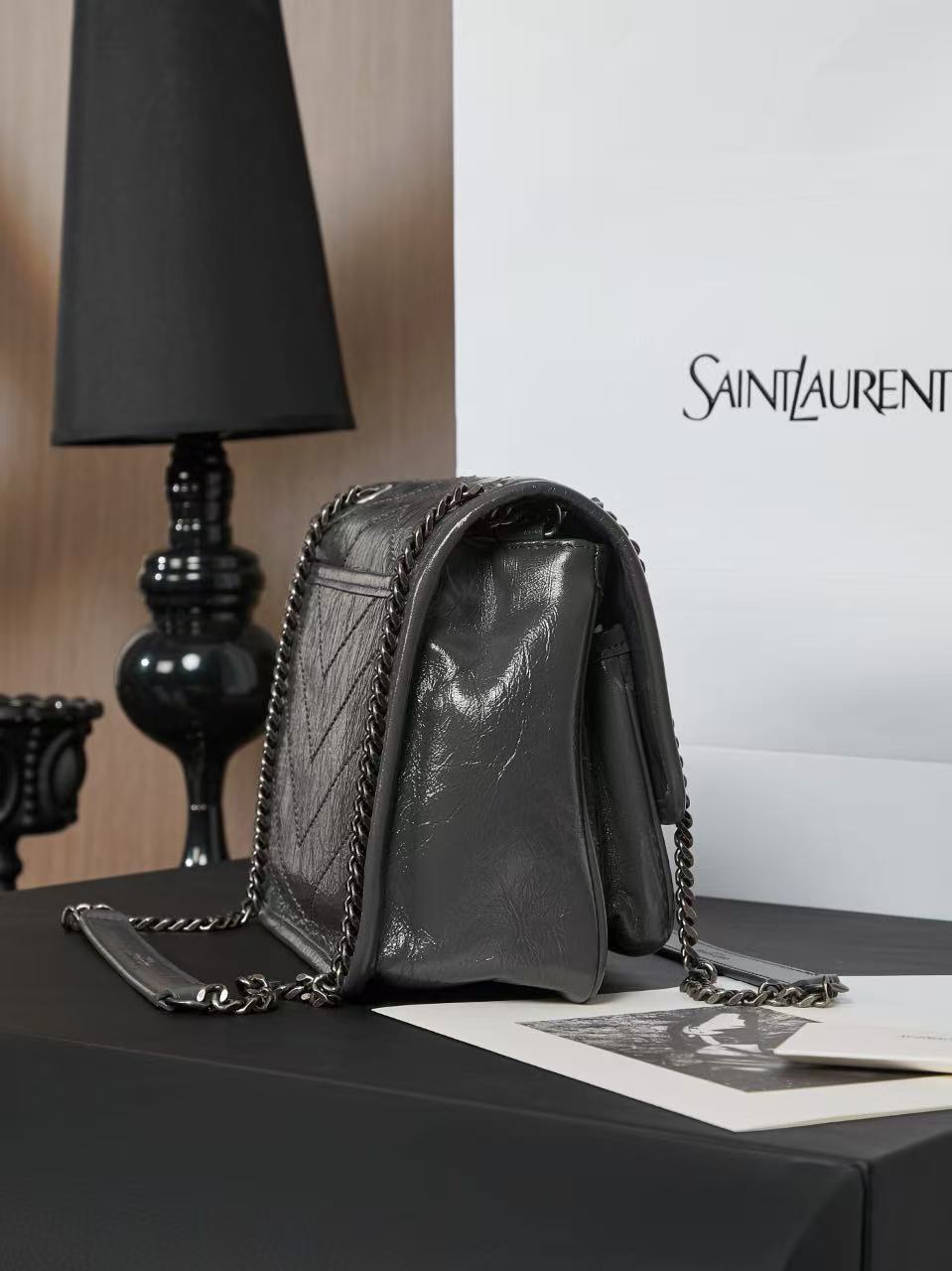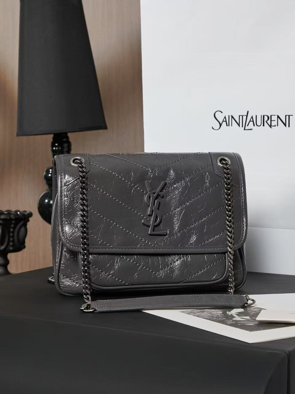 SAINT LAURENT YSL Niki Logo chain retro pleated wandering bag crossbody single-shoulder bag medium-sized women\'s grey