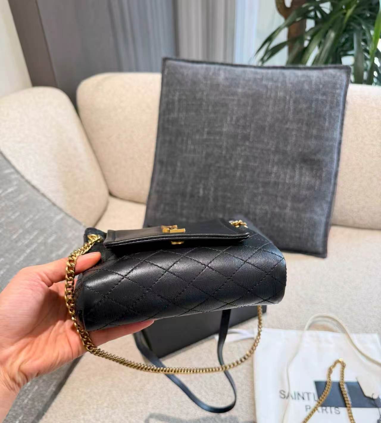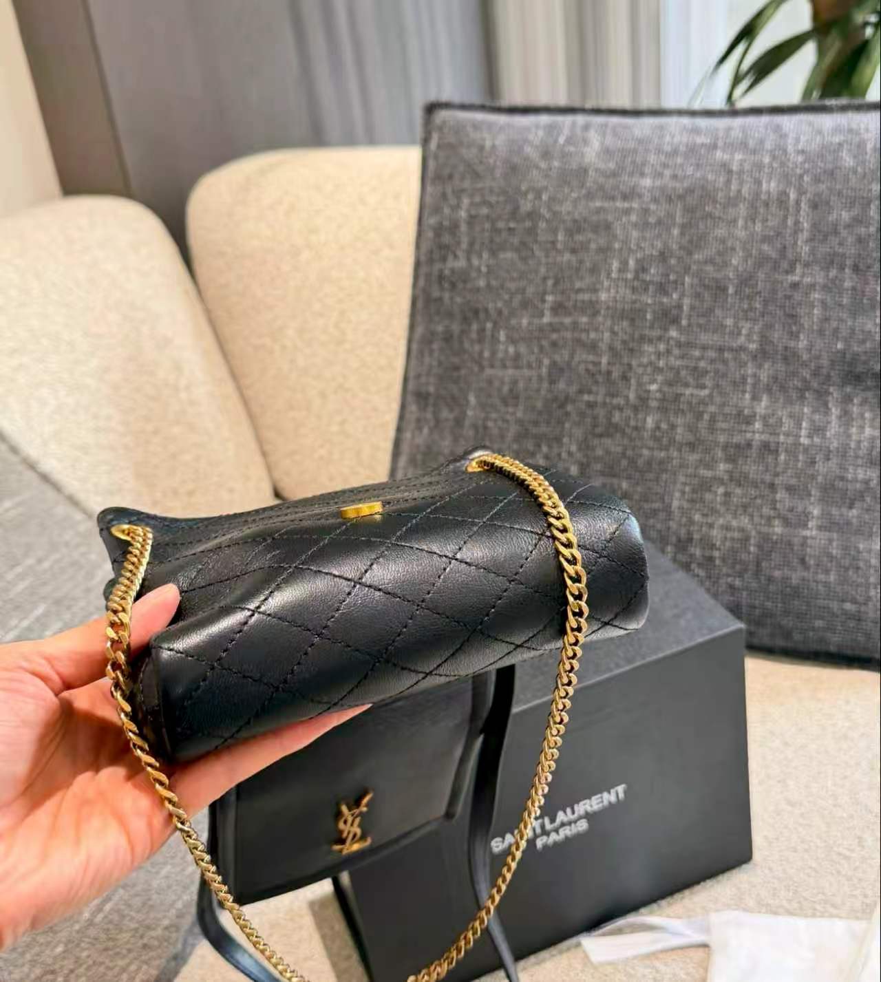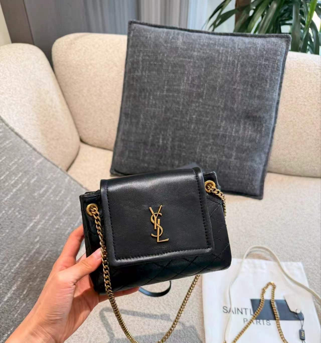SAINT LAURENT YSL nolita Gold Logo diamond-patterned chain crossbody bag, single shoulder bag, mini for women, black
