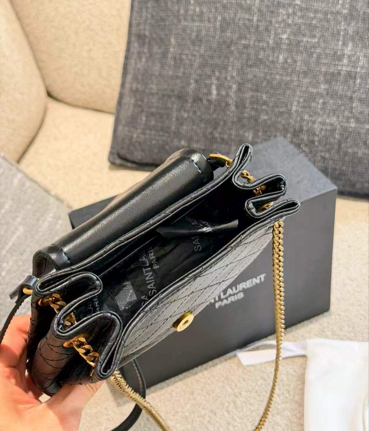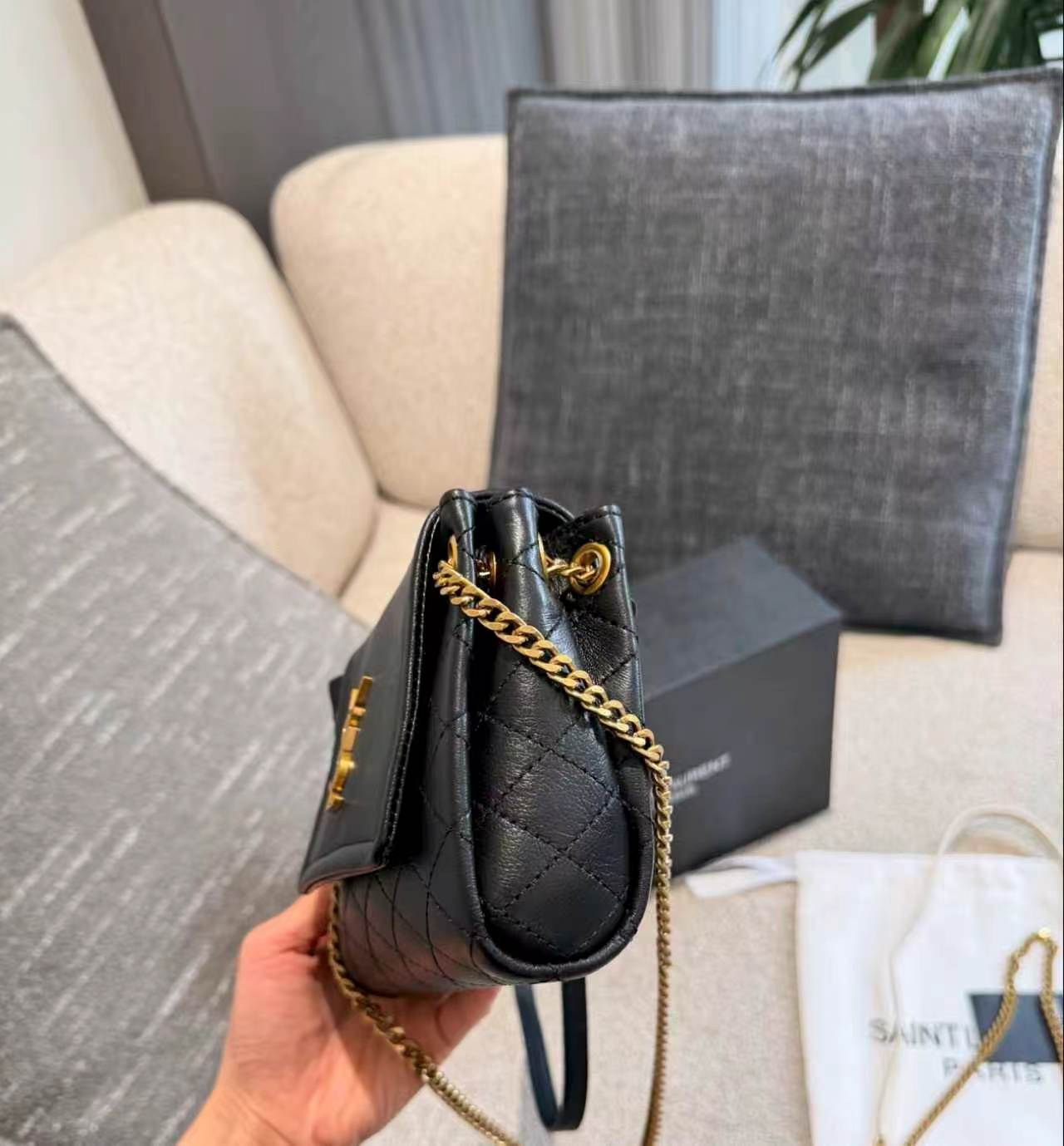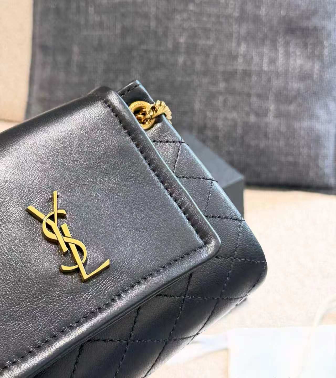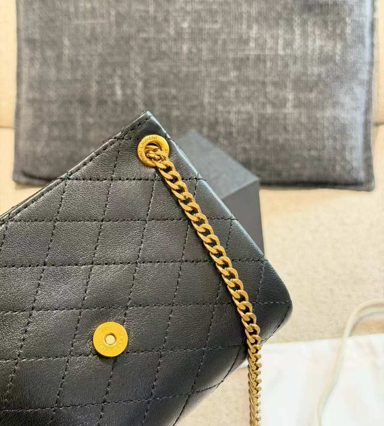 SAINT LAURENT YSL nolita Gold Logo diamond-patterned chain crossbody bag, single shoulder bag, mini for women, black
