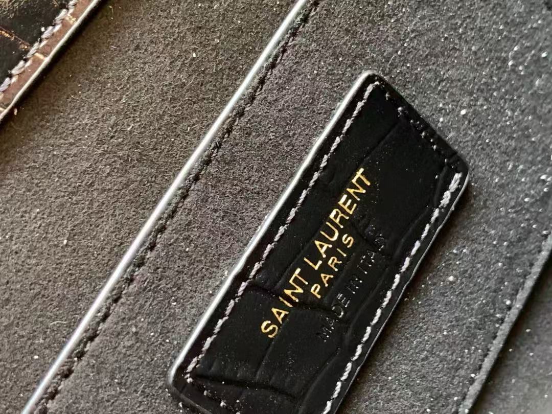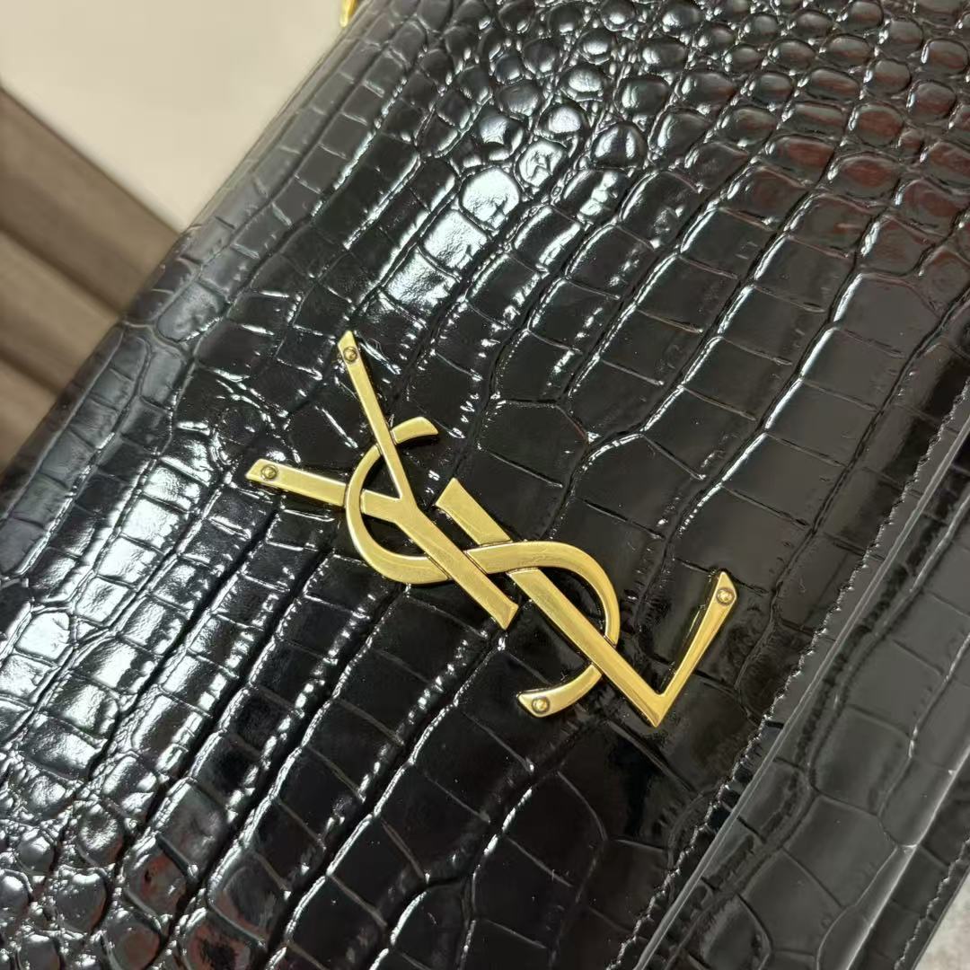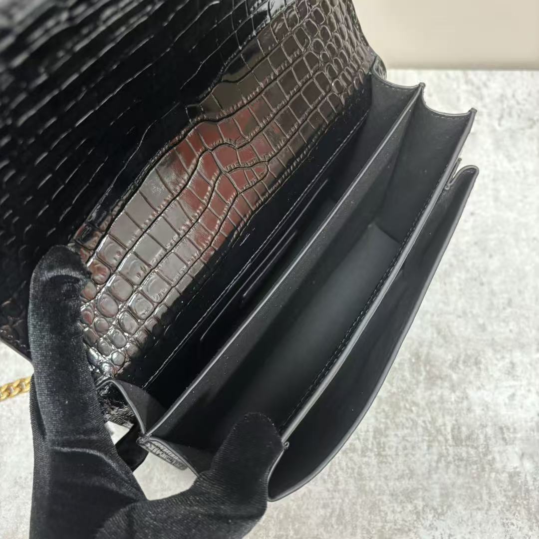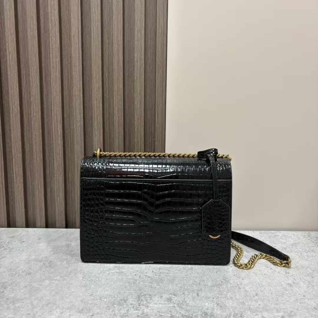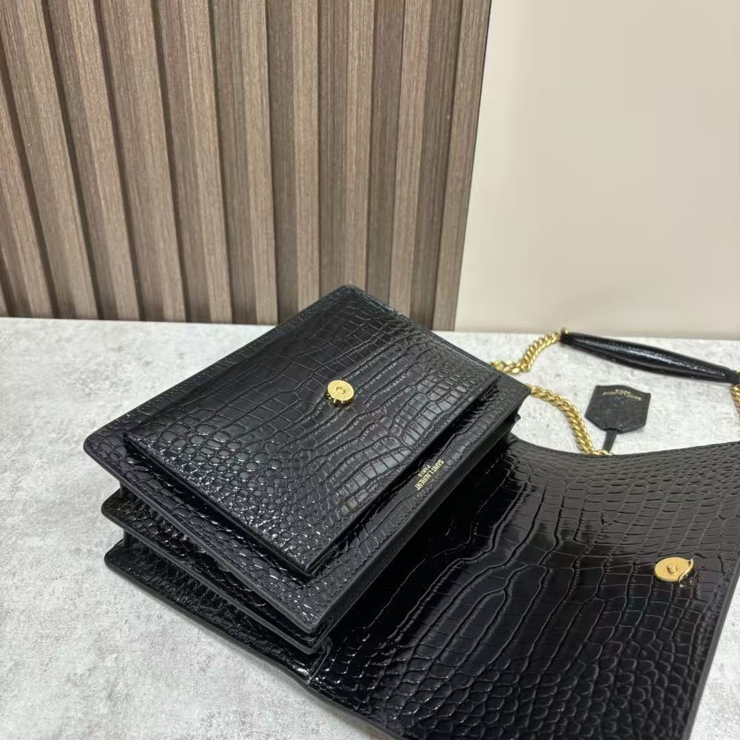 SAINT LAURENT YSL SUNSET bag, distressed gold Logo chain crossbody single-shoulder bag, medium size for women, black
