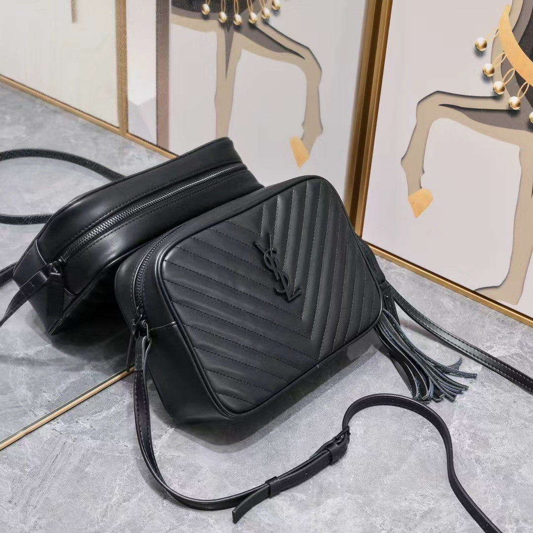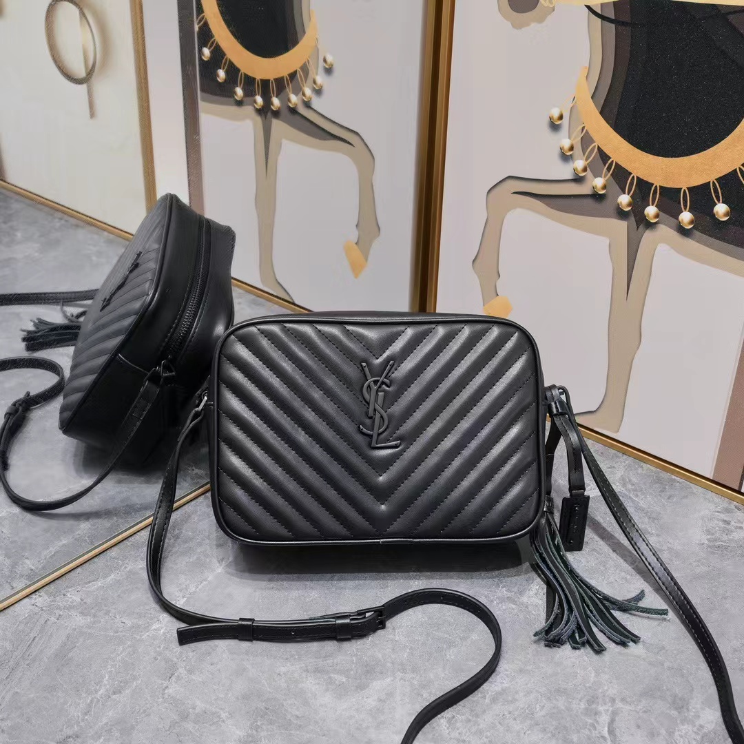 SAINT LAURENT YSL LOU quilted Camera Bag, single-shoulder crossbody bag for women, black
