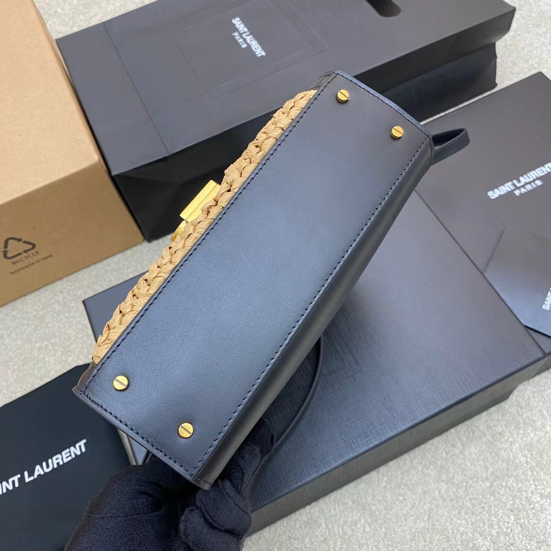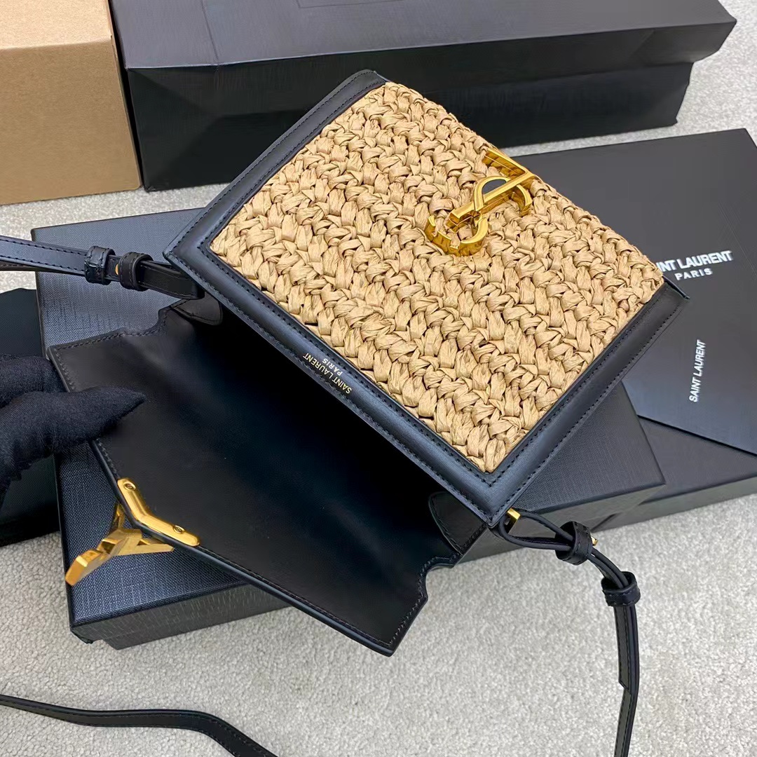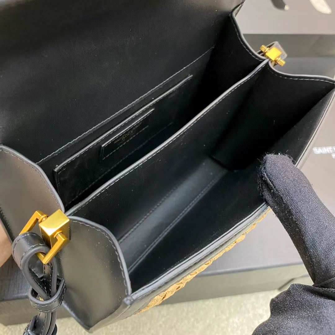 SAINT LAURENT YSL Cassandra gold Logo bag lid opening and closing unique, non-identical single-shoulder crossbody handbag mini women\'s style, beige and black