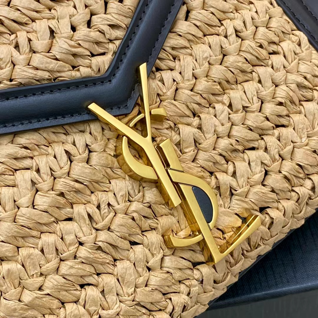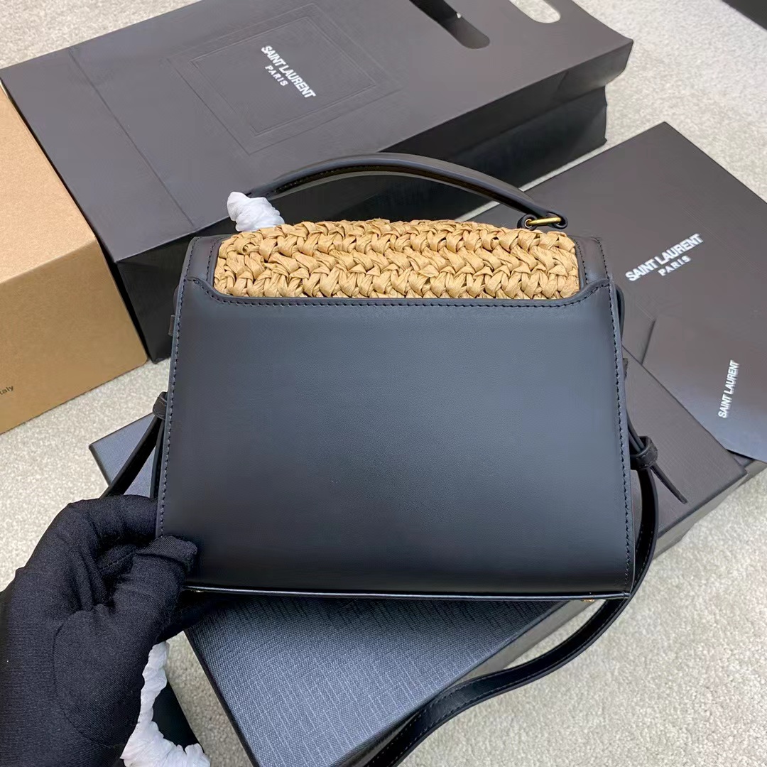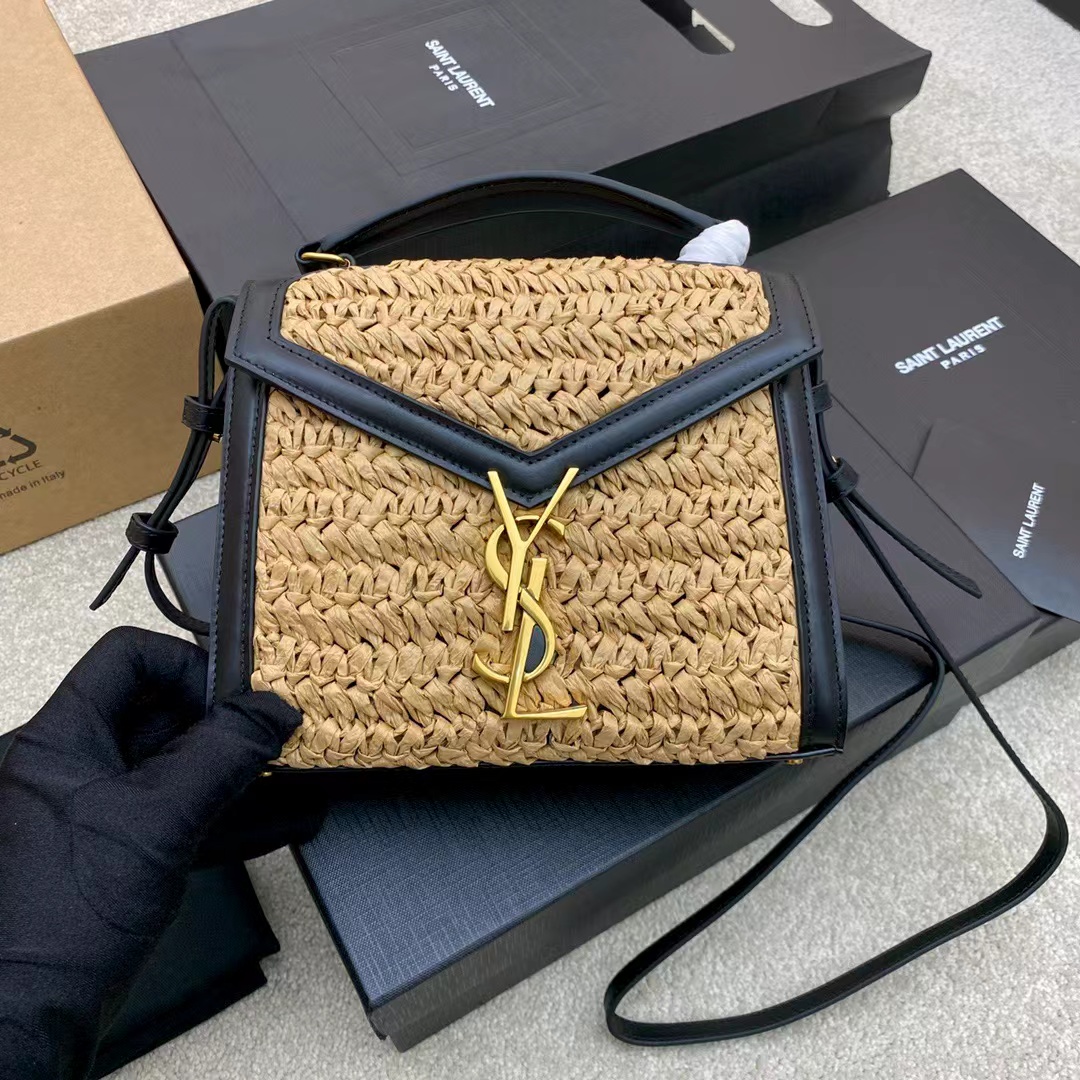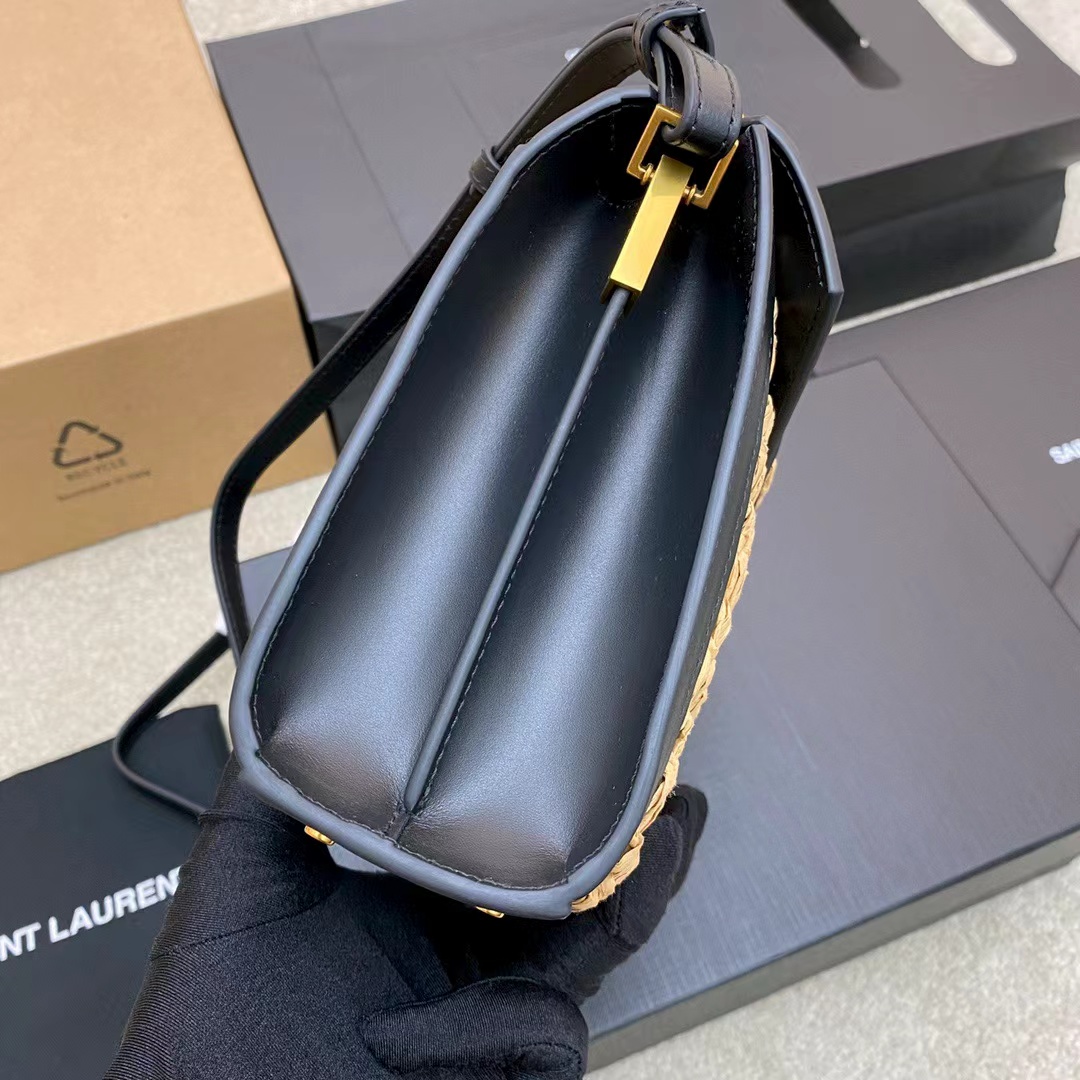 SAINT LAURENT YSL Cassandra gold Logo bag lid opening and closing unique, non-identical single-shoulder crossbody handbag mini women\'s style, beige and black
