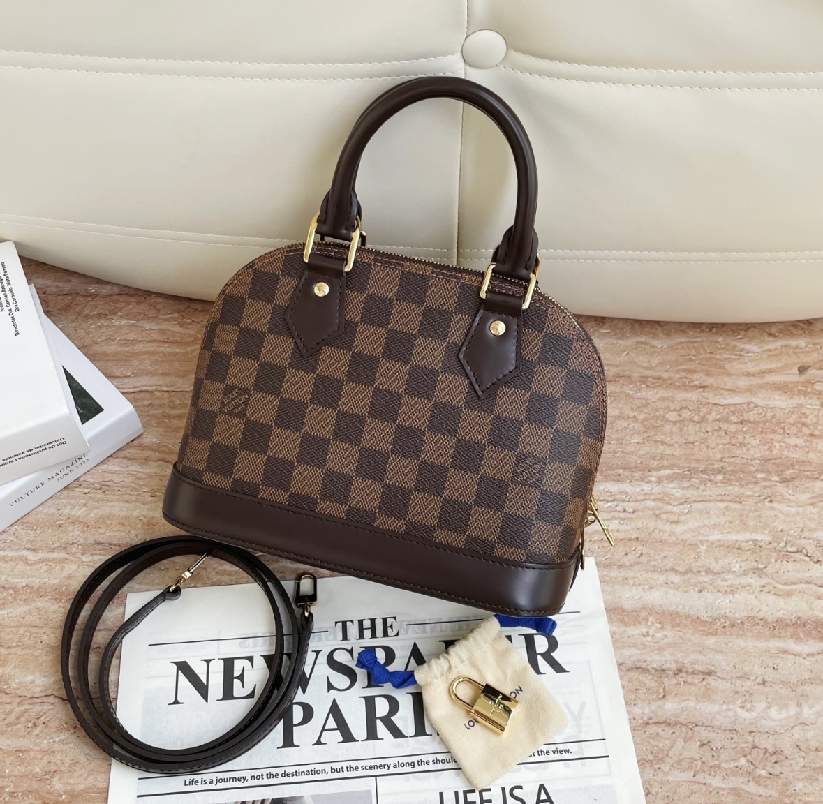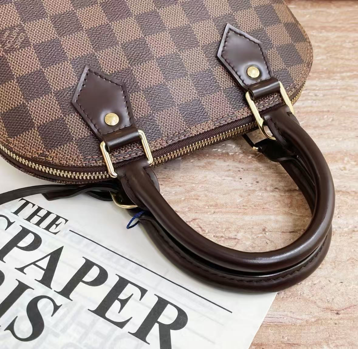 LOUIS VUITTON Alma BB Gold hardware double zipper opening Damier Ebene shell bag Canvas bag single-shoulder crossbody handbag brown