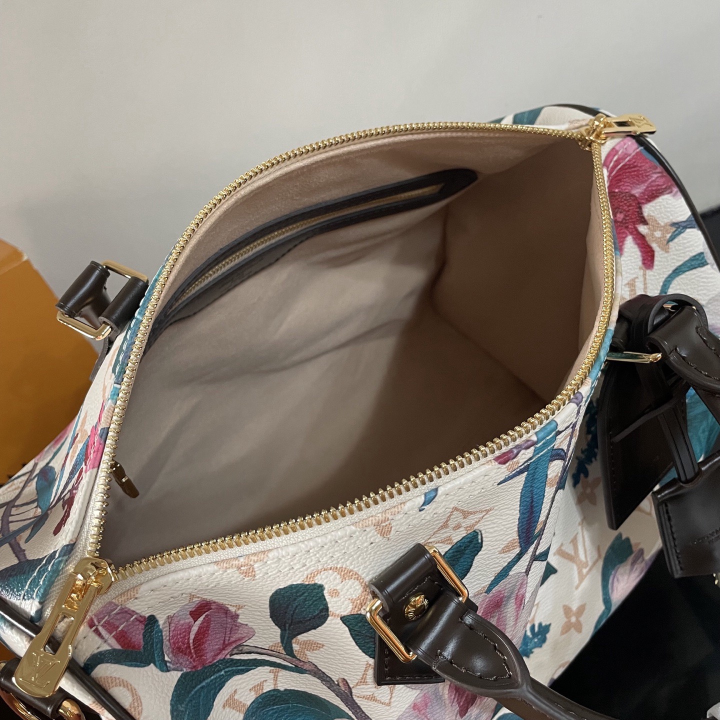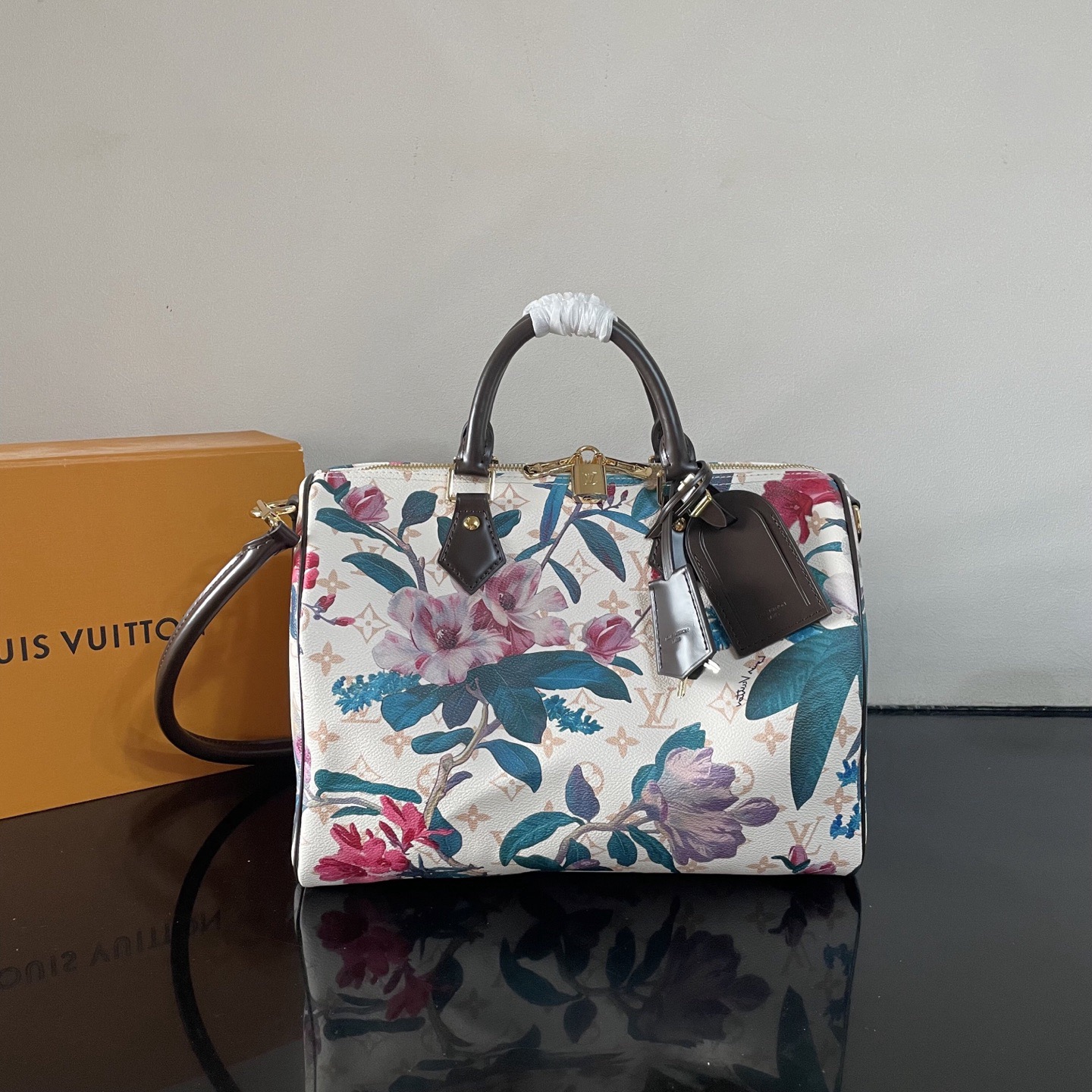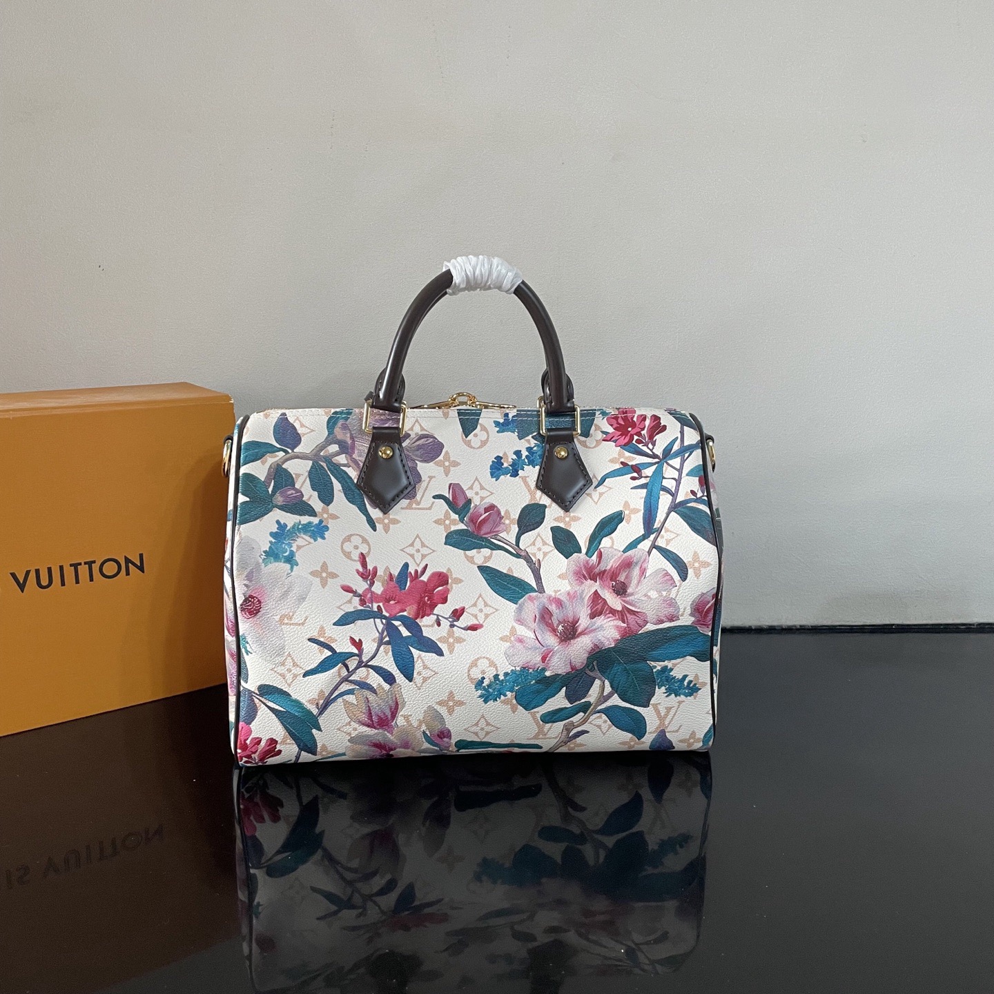 LOUIS VUITTON SPEEDY SOFT 30 Floral pattern Double zipper Closure Detachable shoulder strap Crossbody handbag in white and green