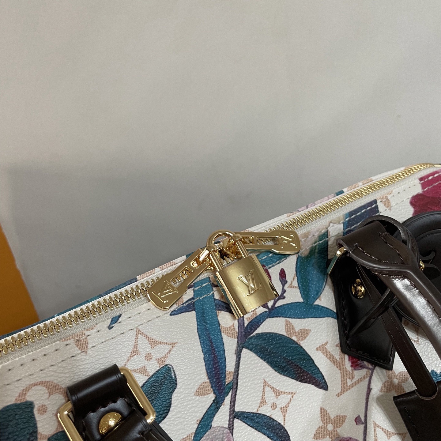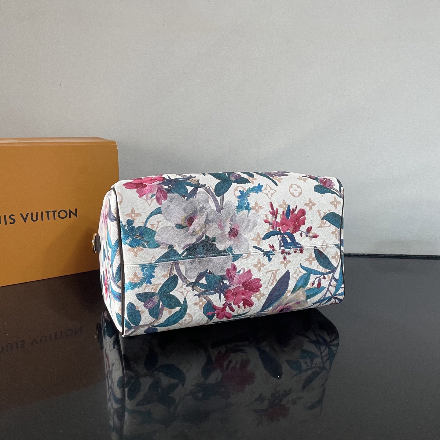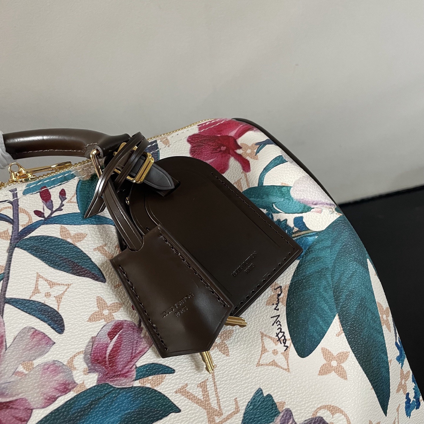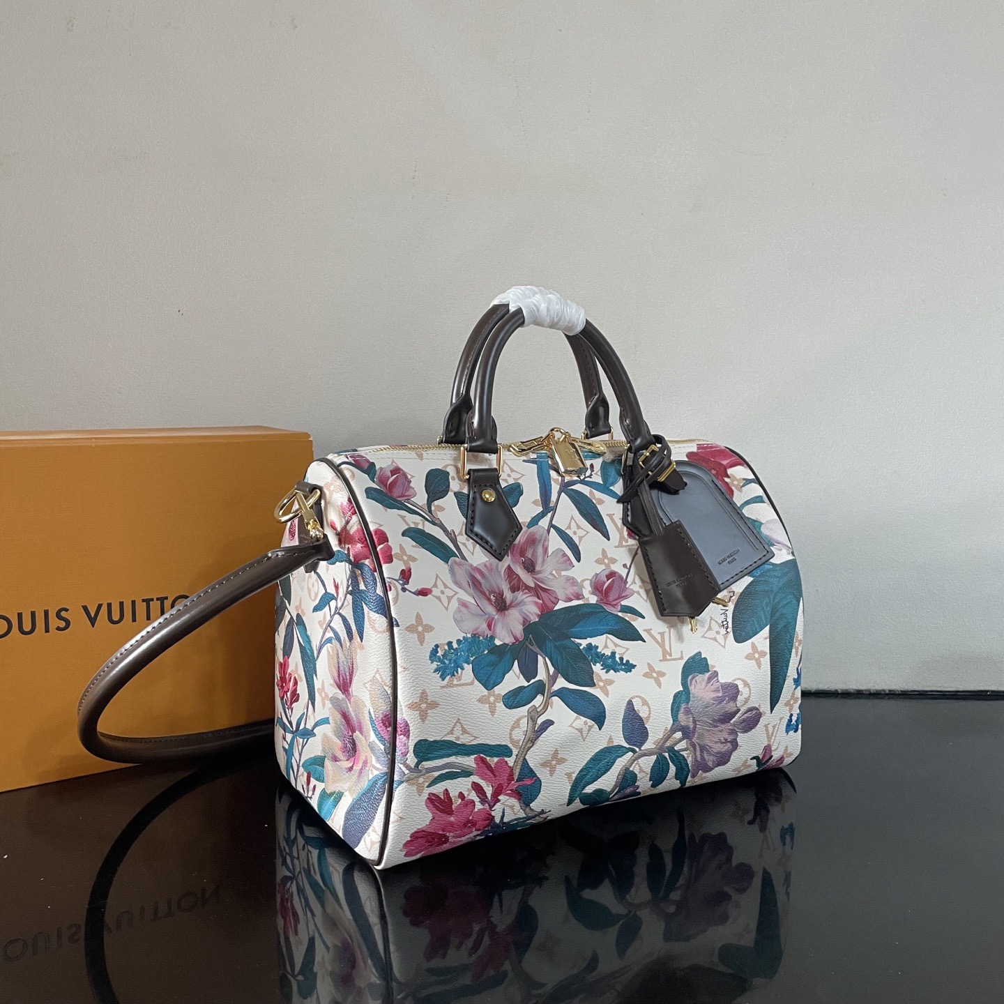 LOUIS VUITTON SPEEDY SOFT 30 Floral pattern Double zipper Closure Detachable shoulder strap Crossbody handbag in white and green