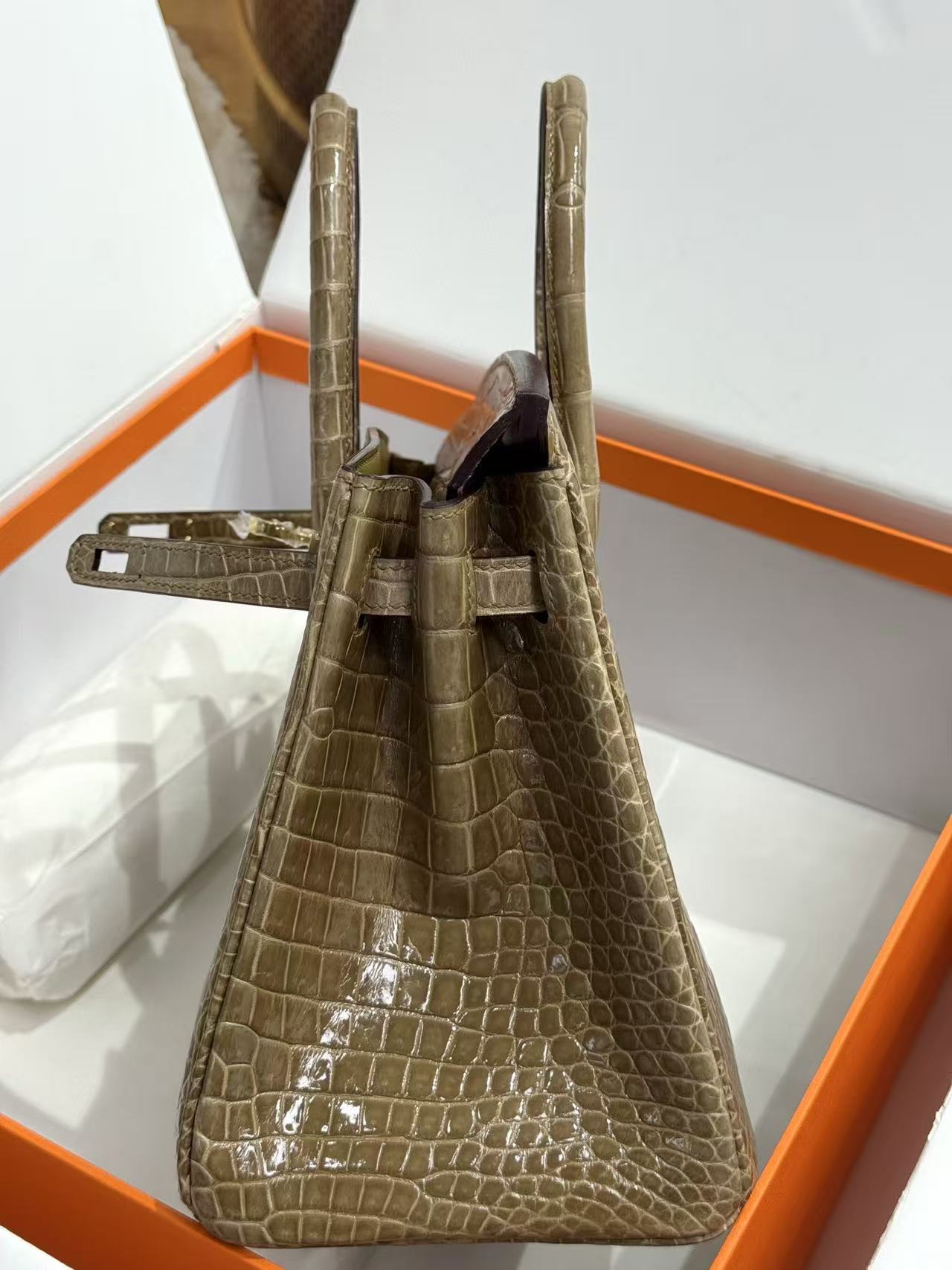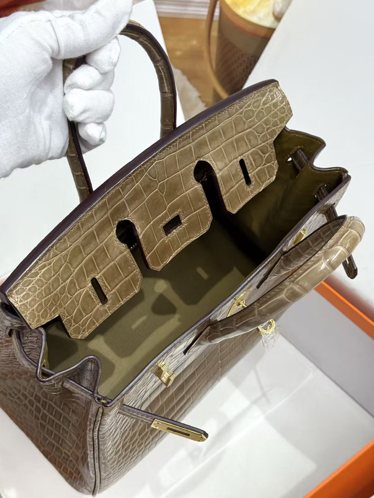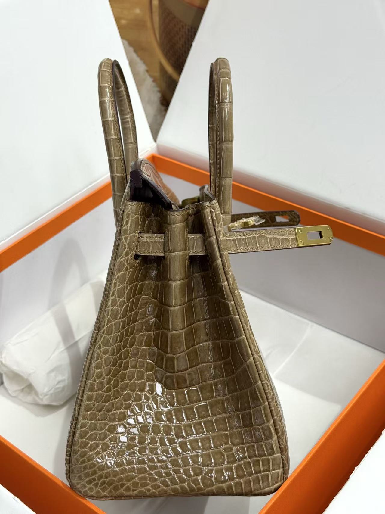 HERMES Birkin 25 women\'s Edition in nude sand color with amber yellow on the side