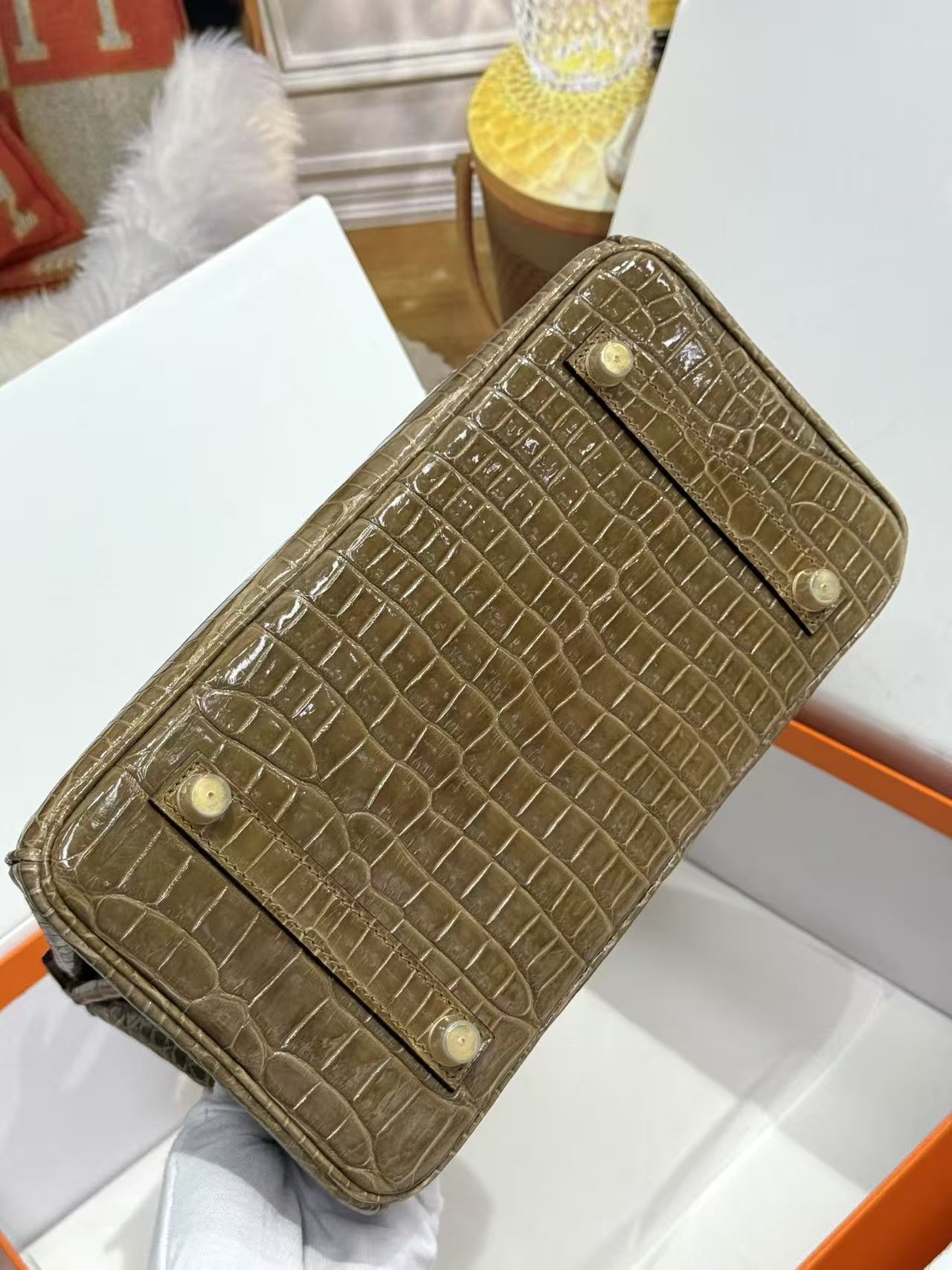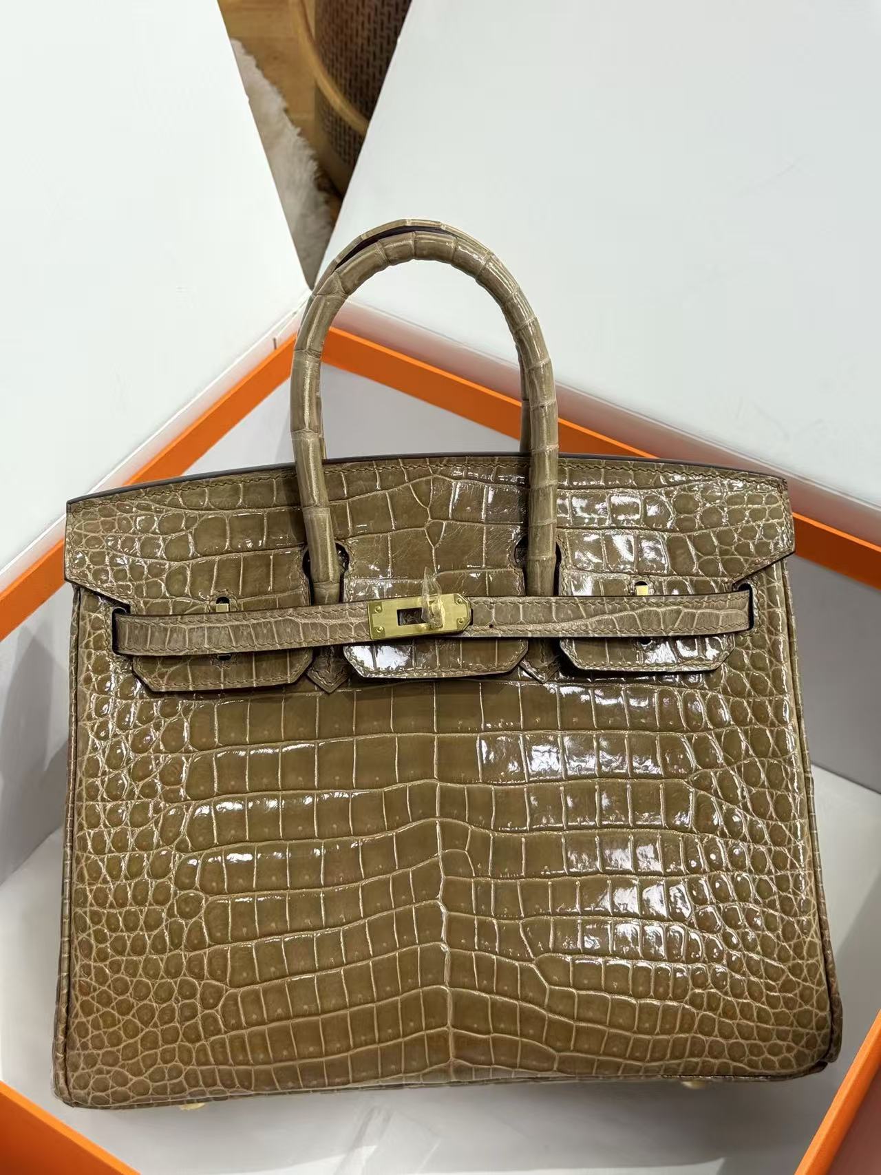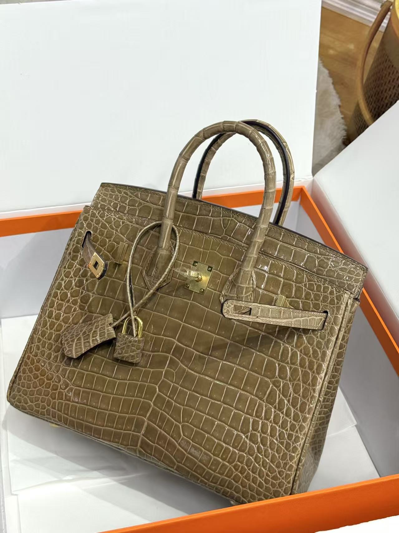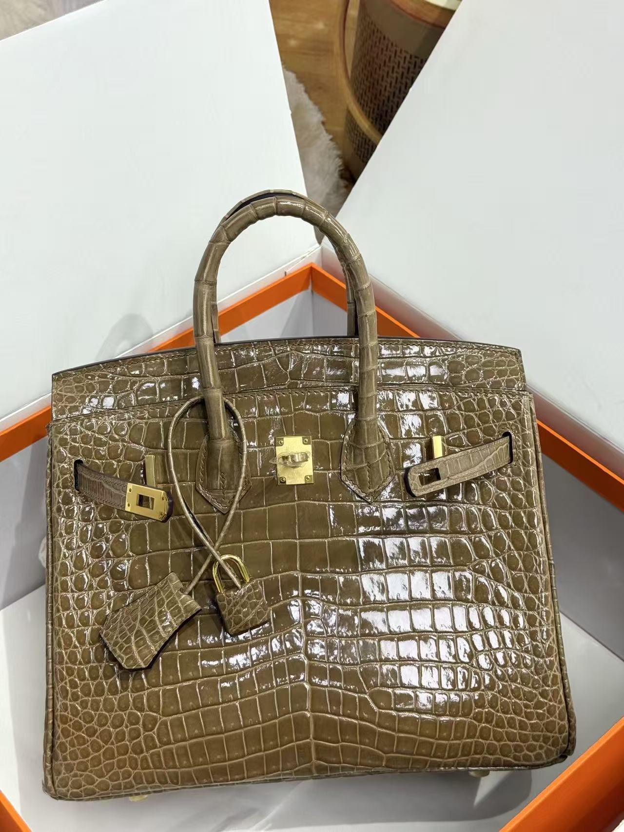 HERMES Birkin 25 women\'s Edition in nude sand color with amber yellow on the side