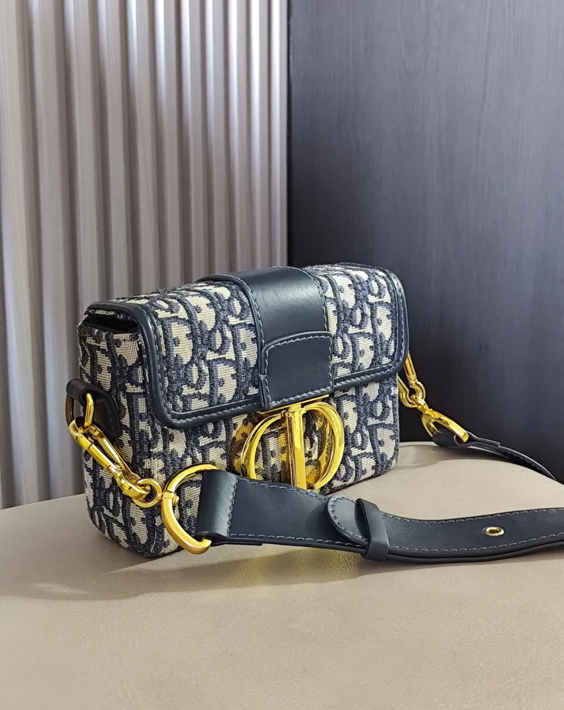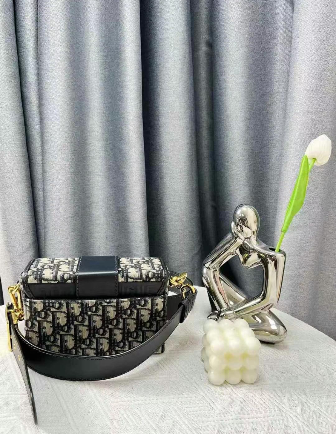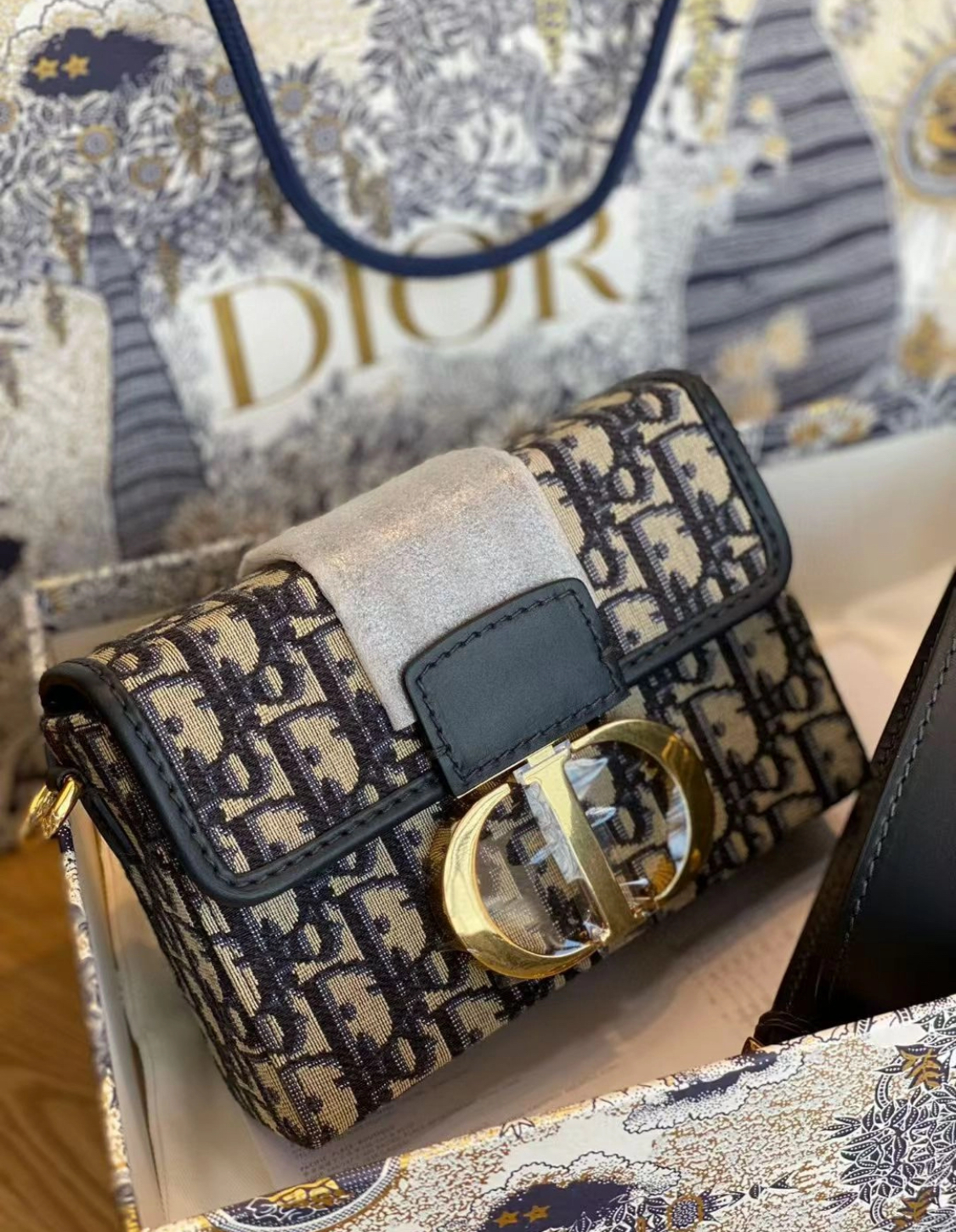 DIOR 30 Montaigne Montaigne collection Oblique embroidery Monogram Full Print wide shoulder strap Bag, women\'s denim blue