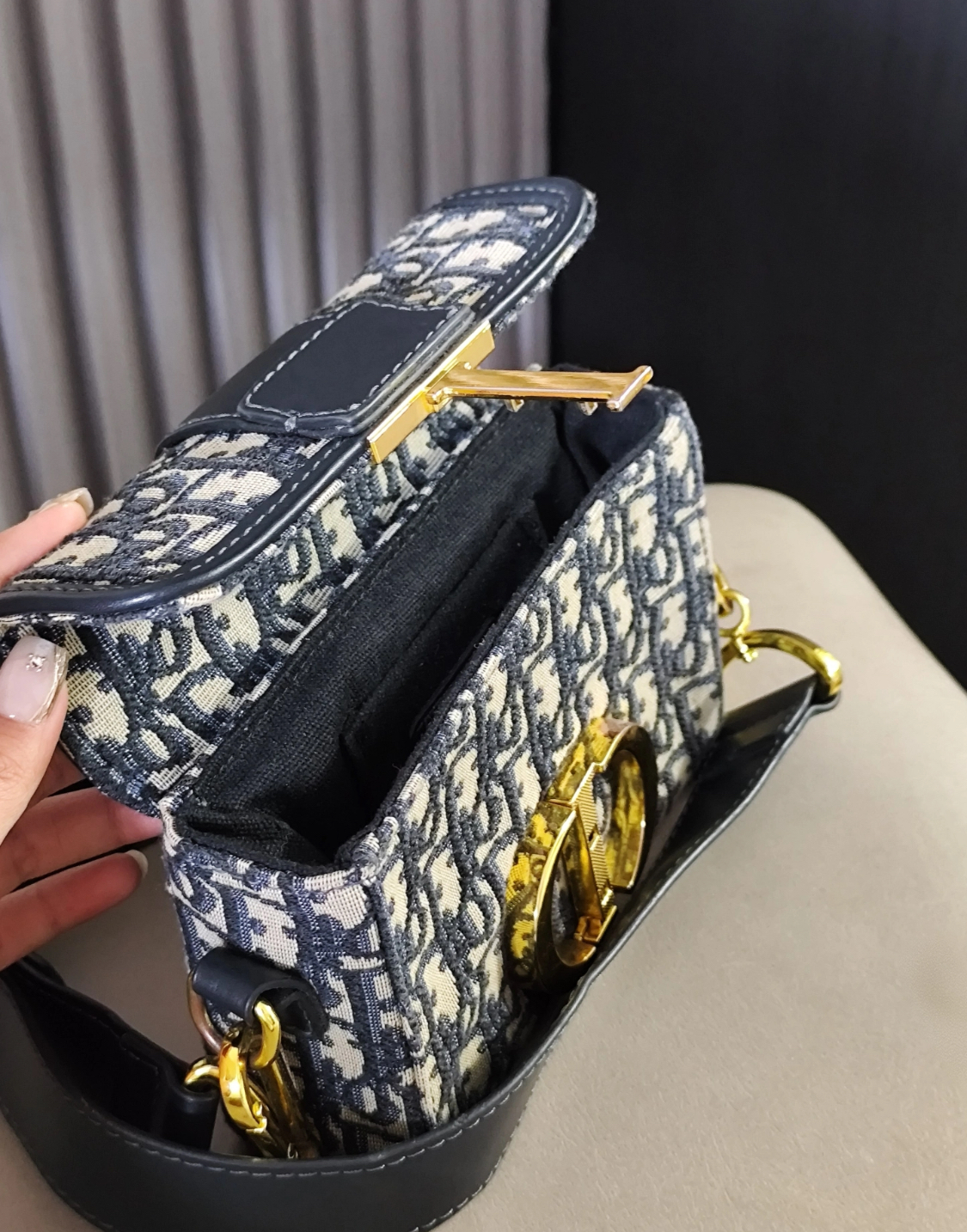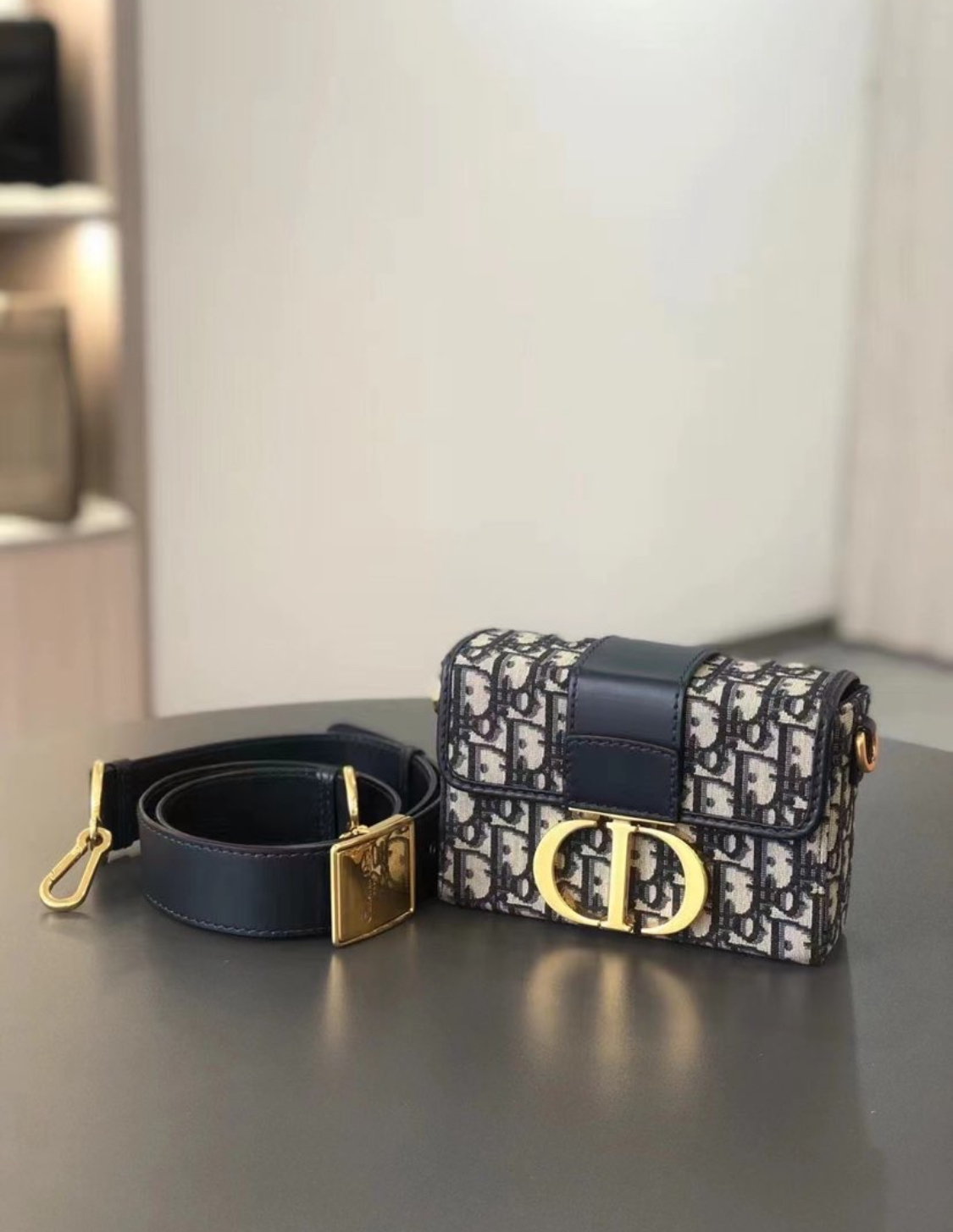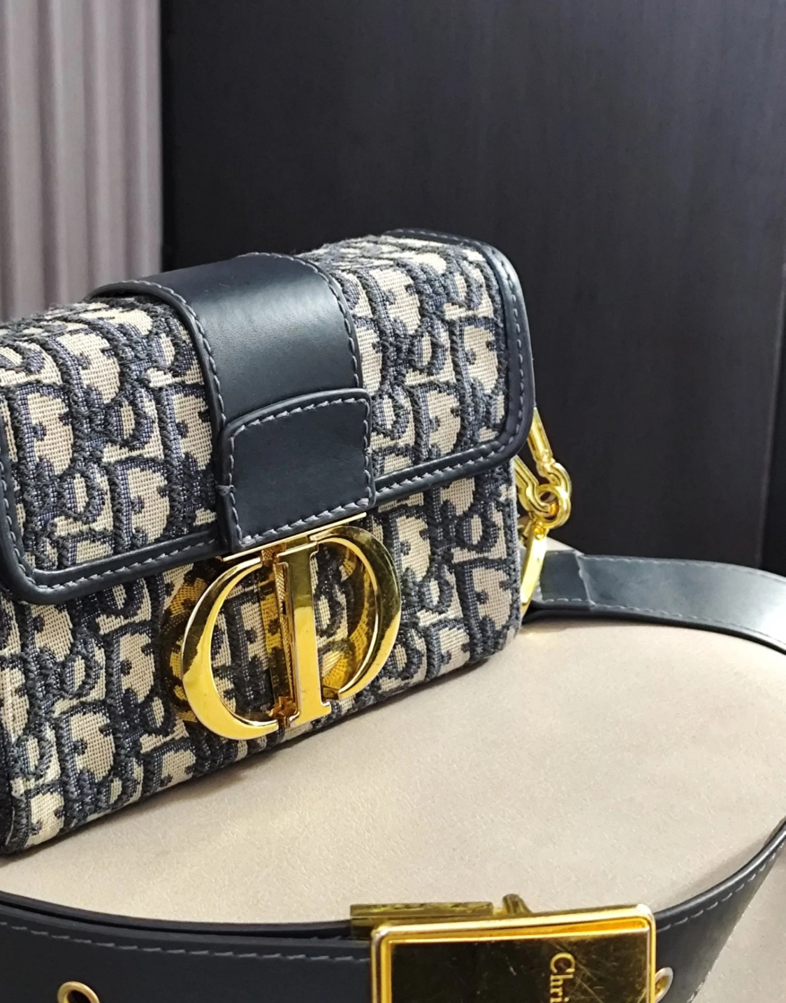 DIOR 30 Montaigne Montaigne collection Oblique embroidery Monogram Full Print wide shoulder strap Bag, women\'s denim blue